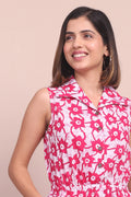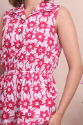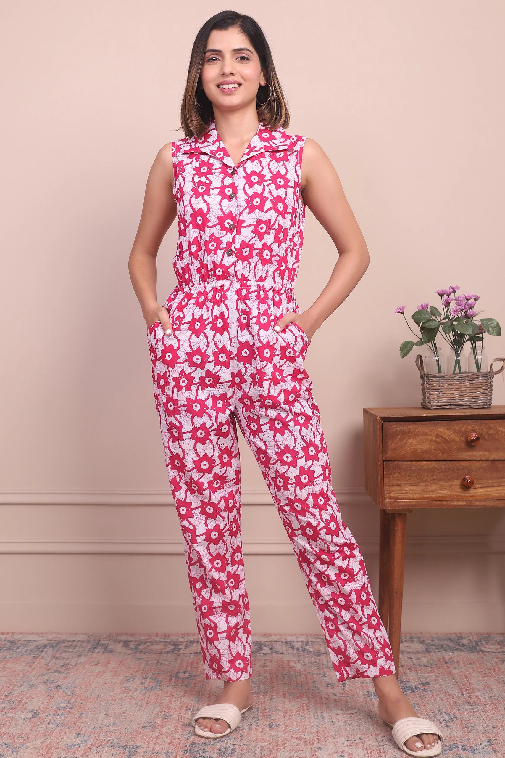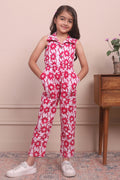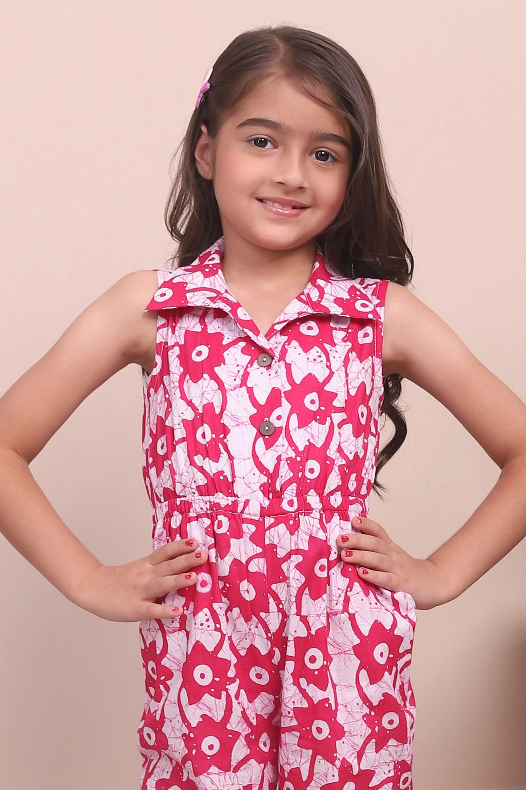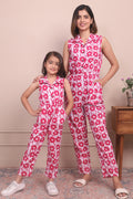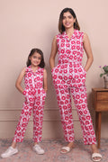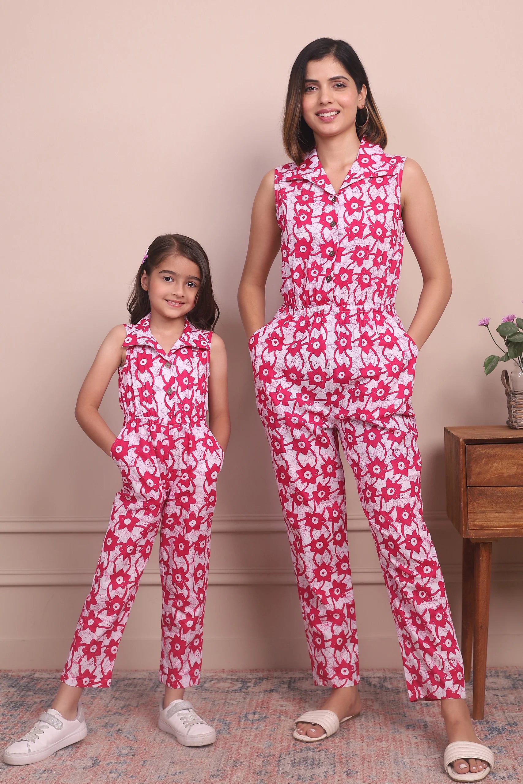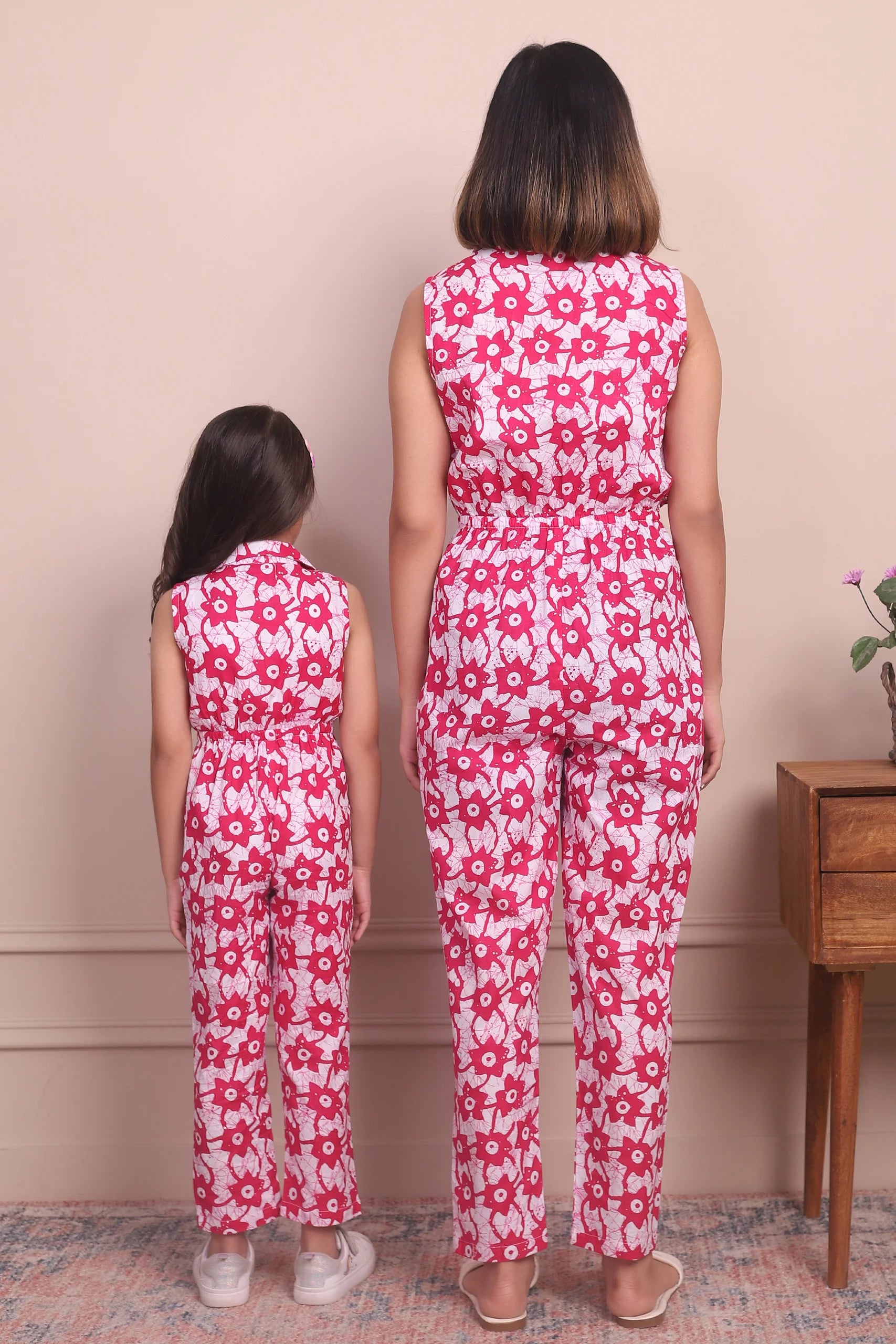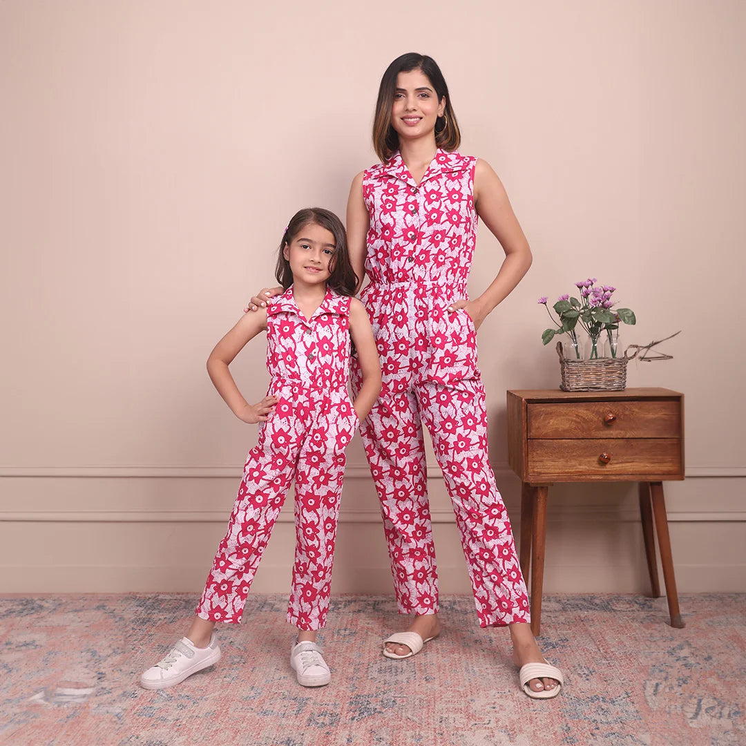 Fashionably Fuchsia: Sleeveless Collared Cotton Jumpsuit Mom and Daughter Twinning Set