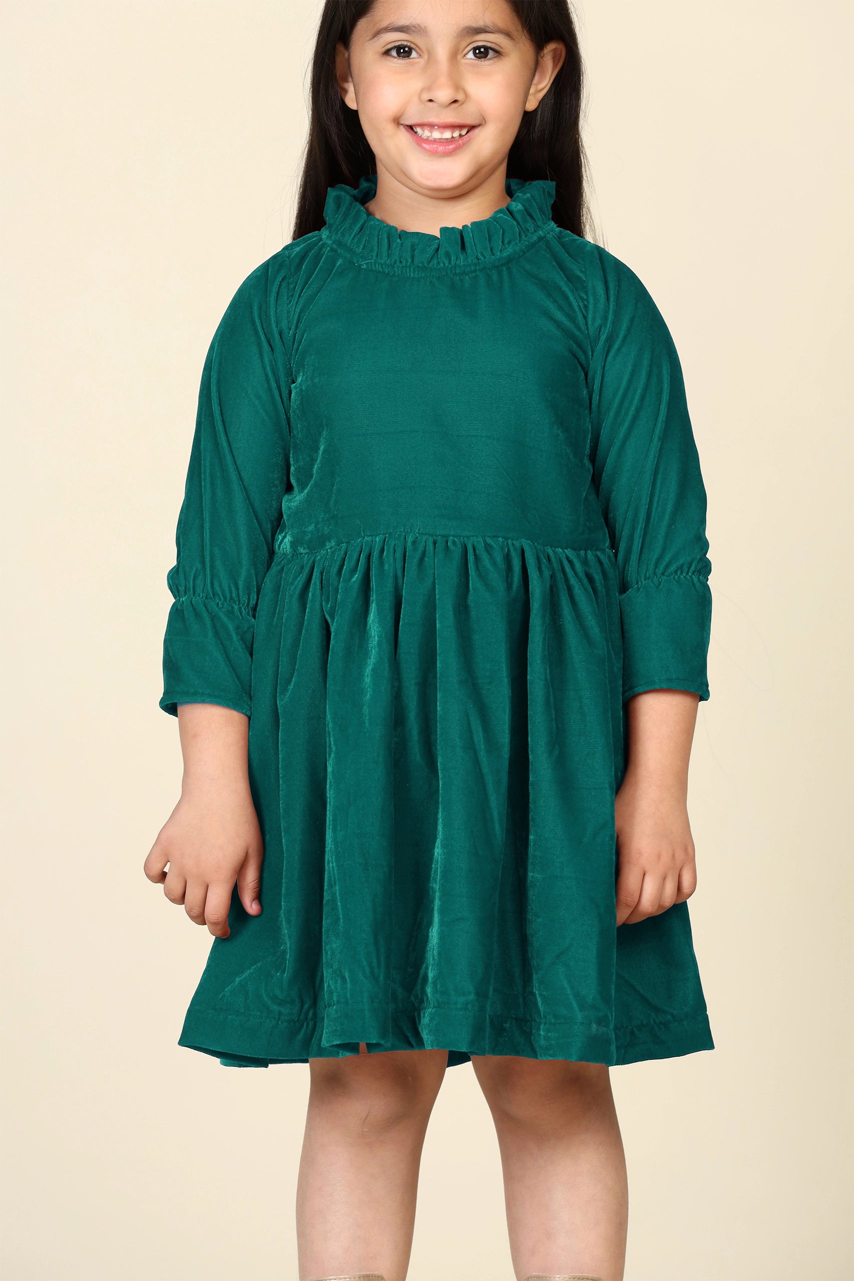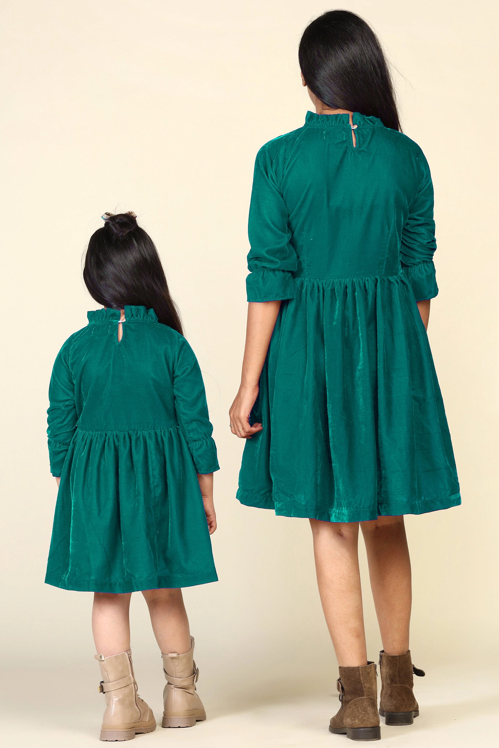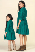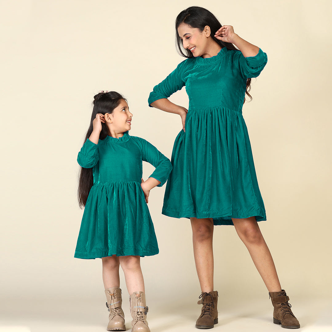 Green Samaira Velvet Dresses for Mom & Daughter