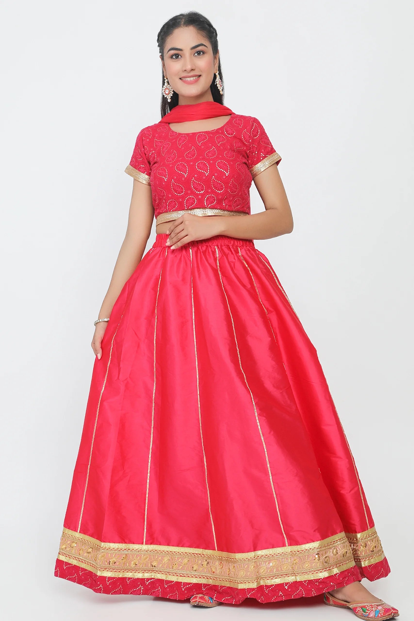 - Closure : Back Button (Choli), Elasticated waistband (Lehenga)
