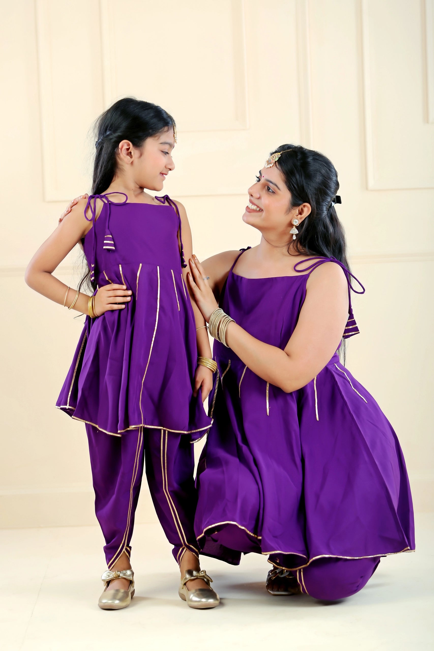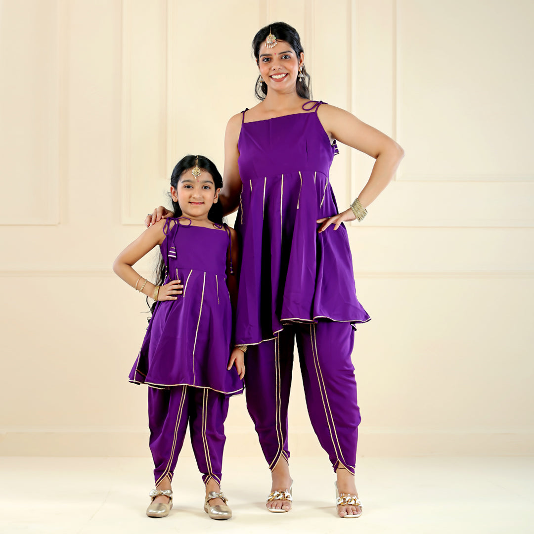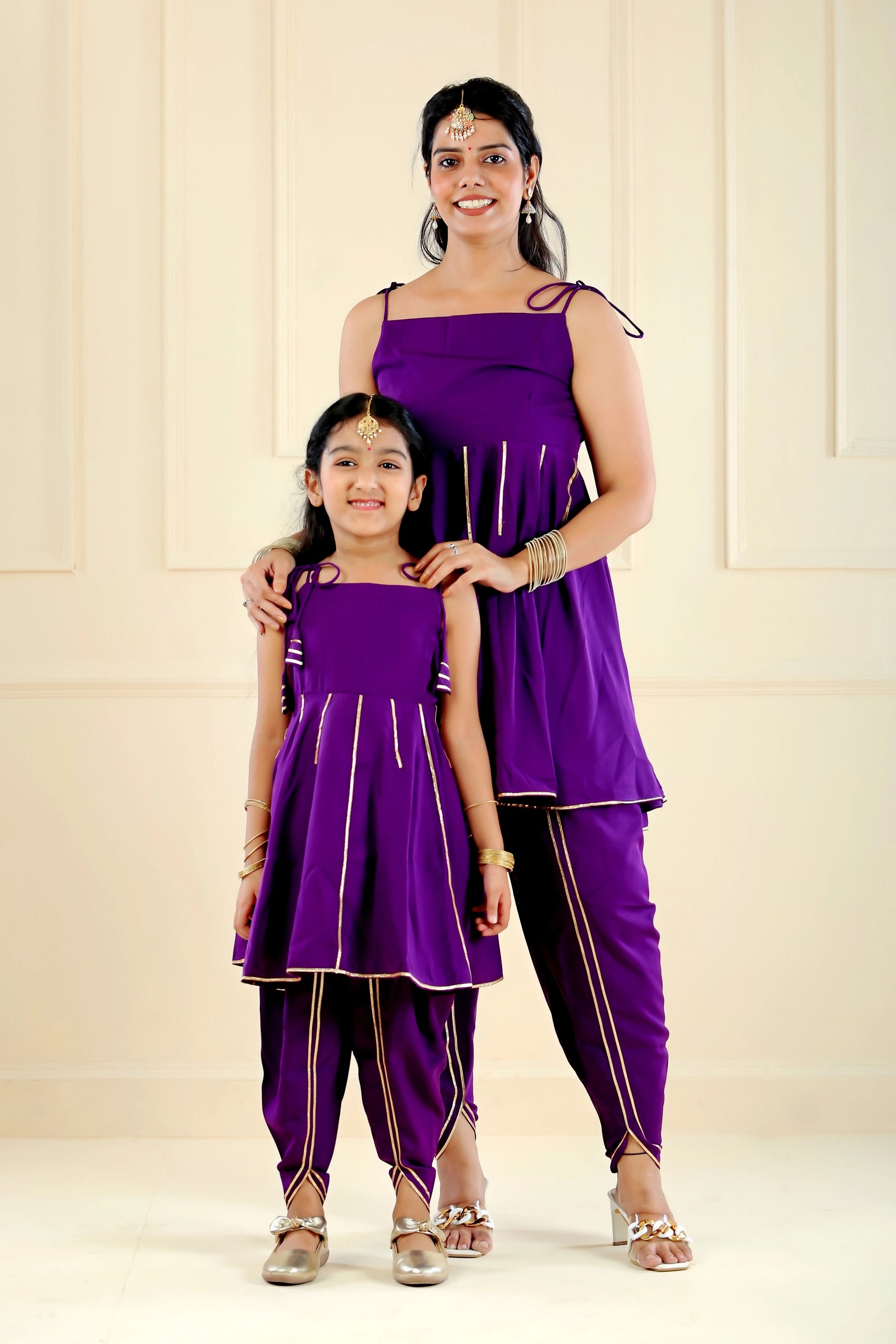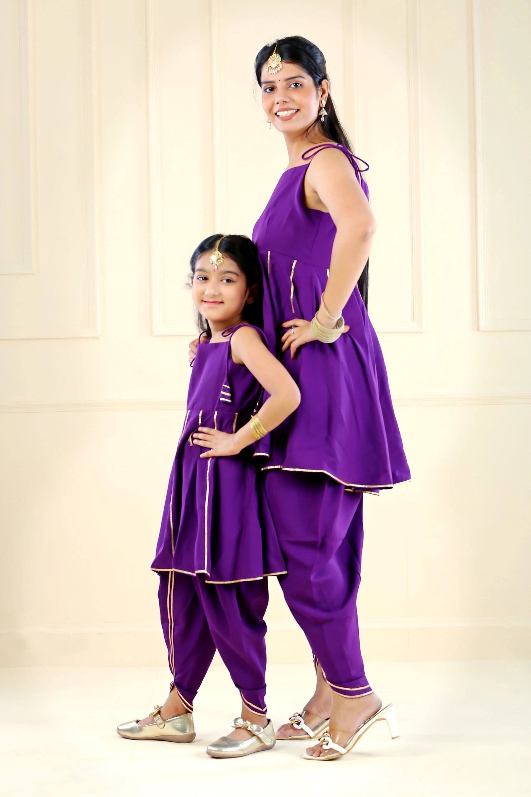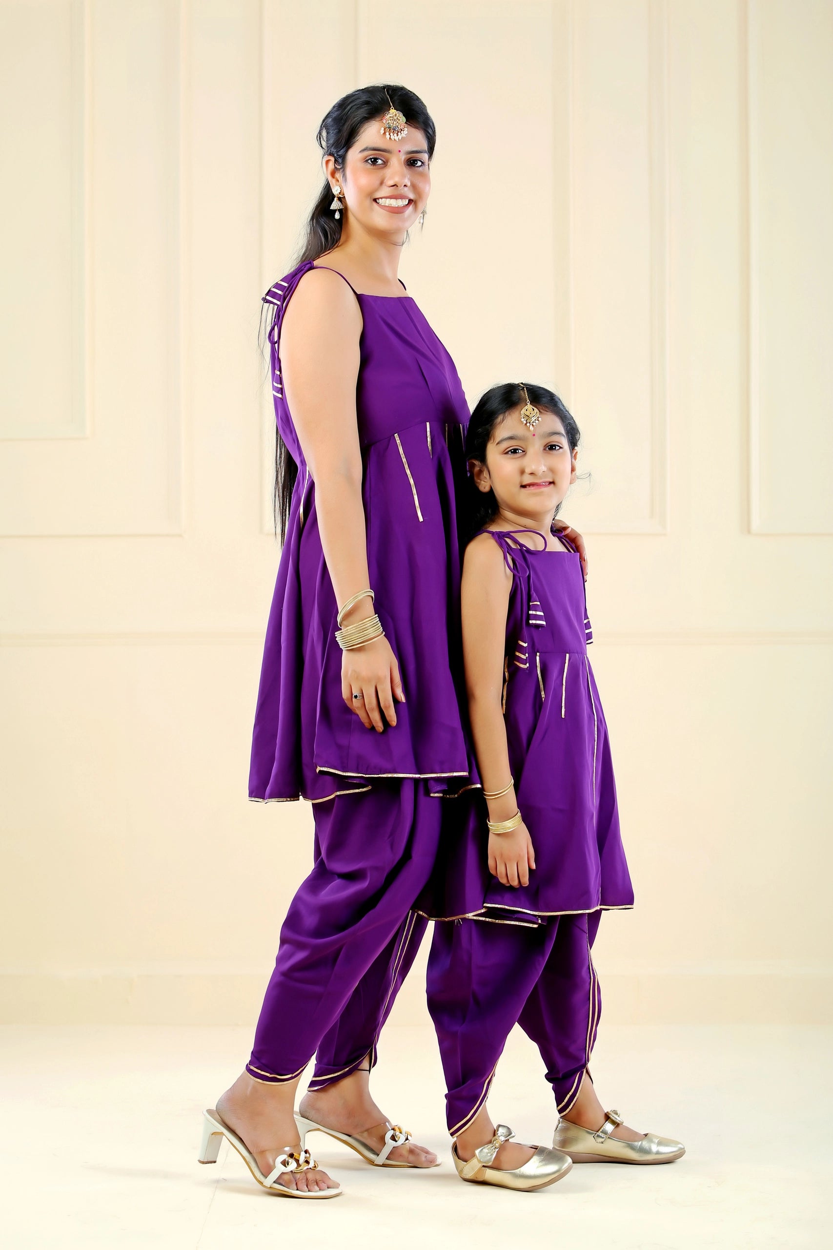 Purple Noor Dhoti Mom and Daughter Twin Set