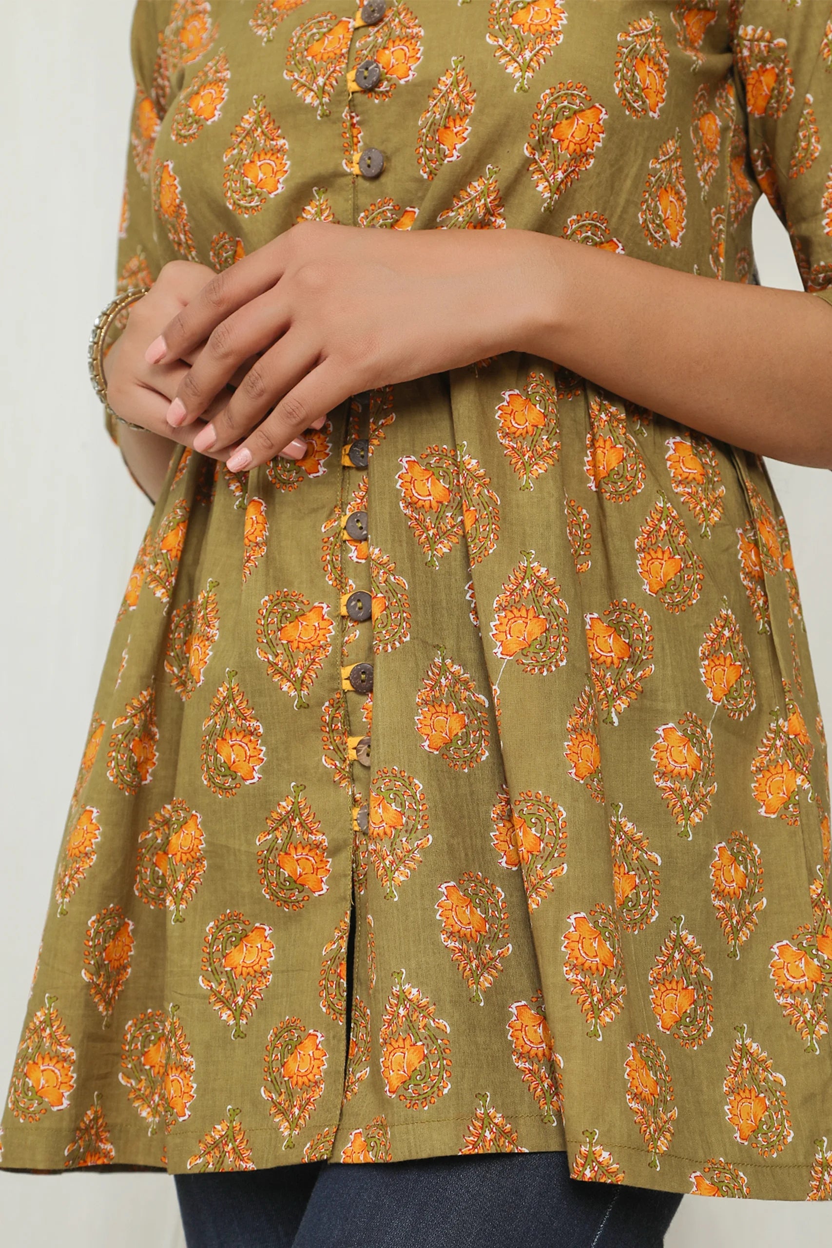 - Neckline: Band Collar