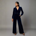Navy Blue Luxe Velvet One-Piece Set For Women