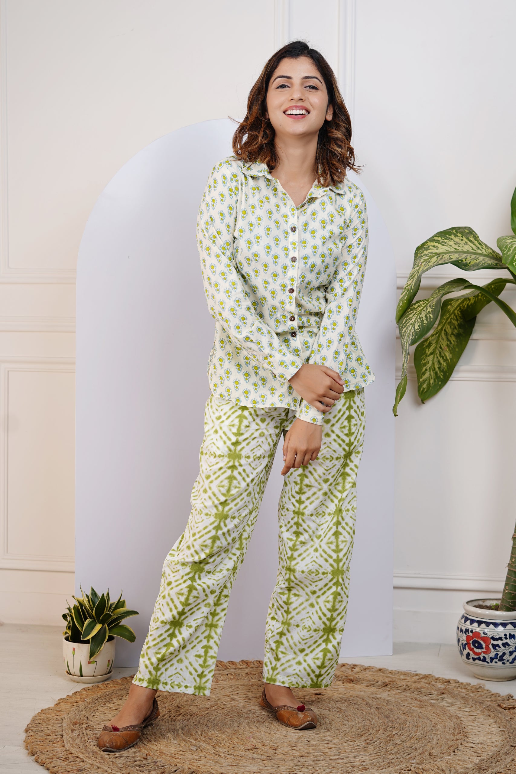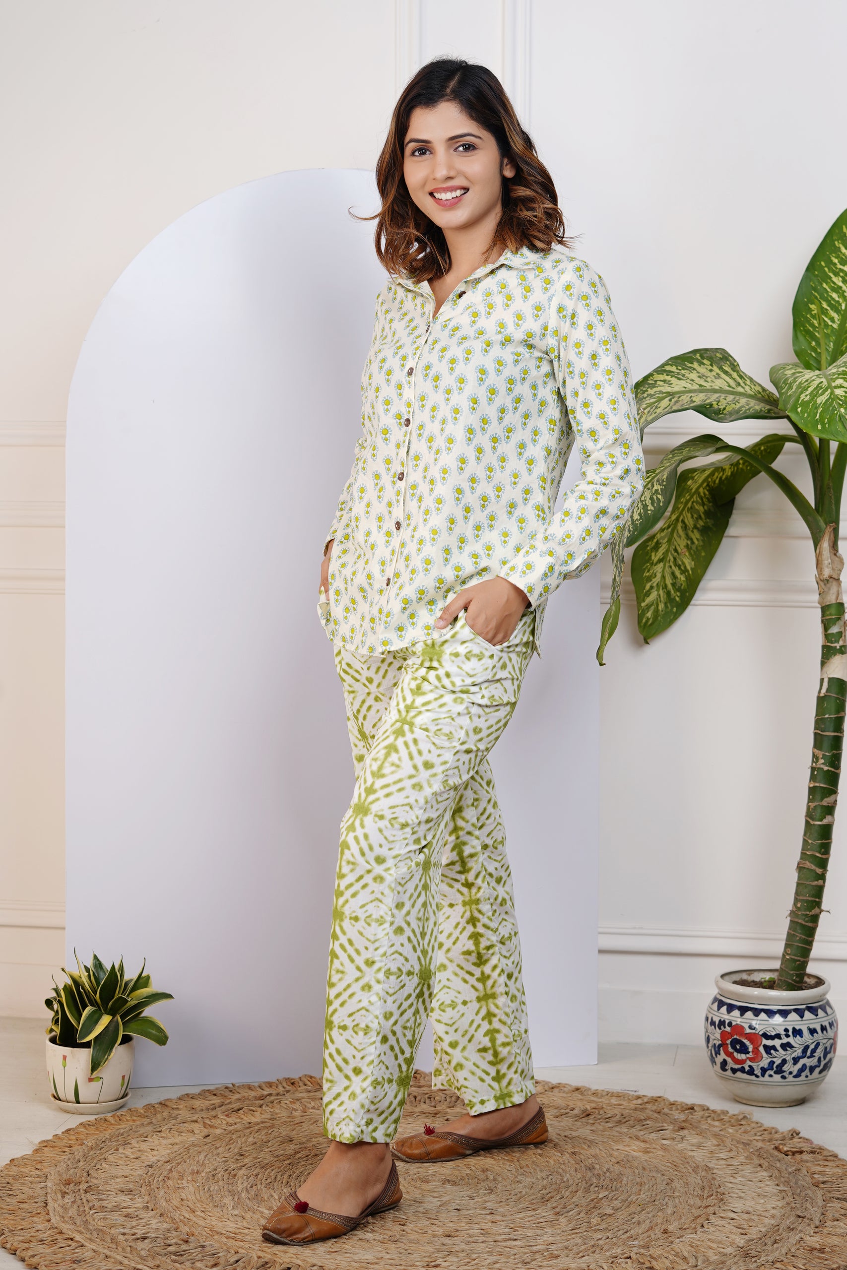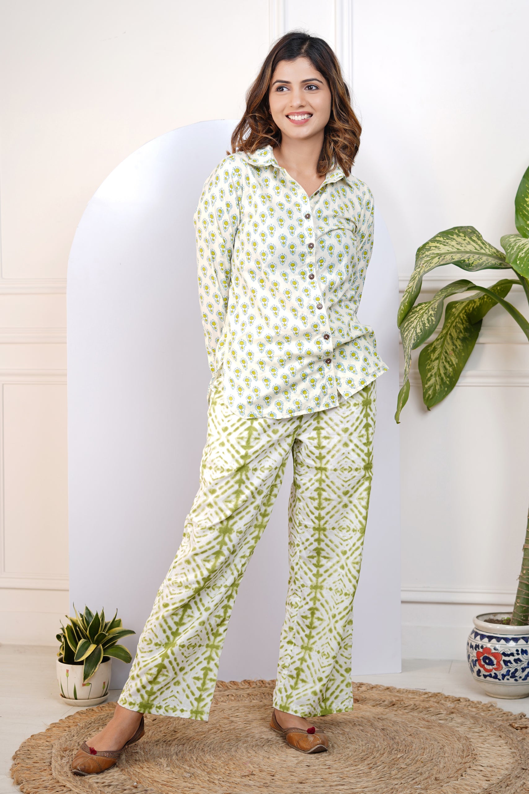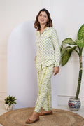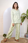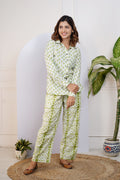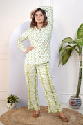Elevate your everyday wardrobe with our Green Printed Shirt With Pants for Mom, crafted from 100% cotton and featuring full sleeves, a collared neckline, and a playful print. This comfortable and easy-to-wear set allows for effortless movement and style. Upgrade your wardrobe now!!