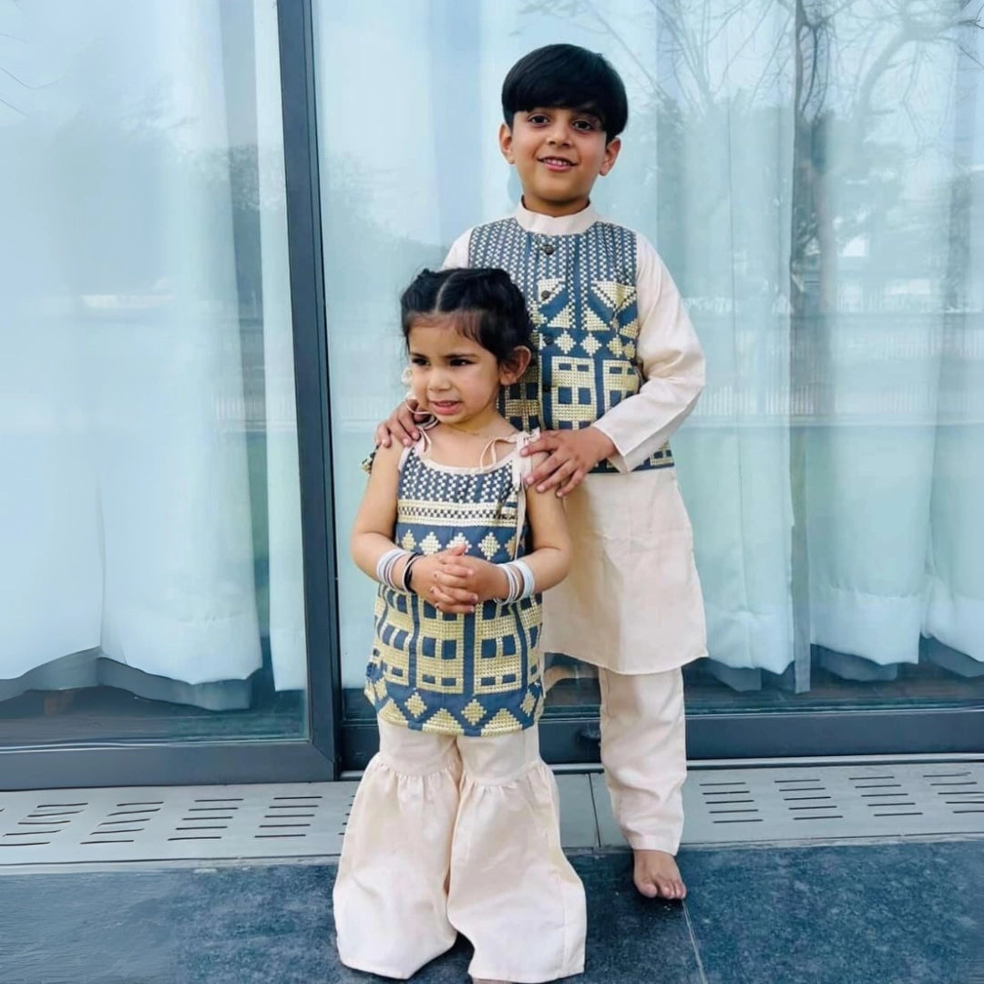 Grey Sequins Noor Sharara Set For Brother And Sister