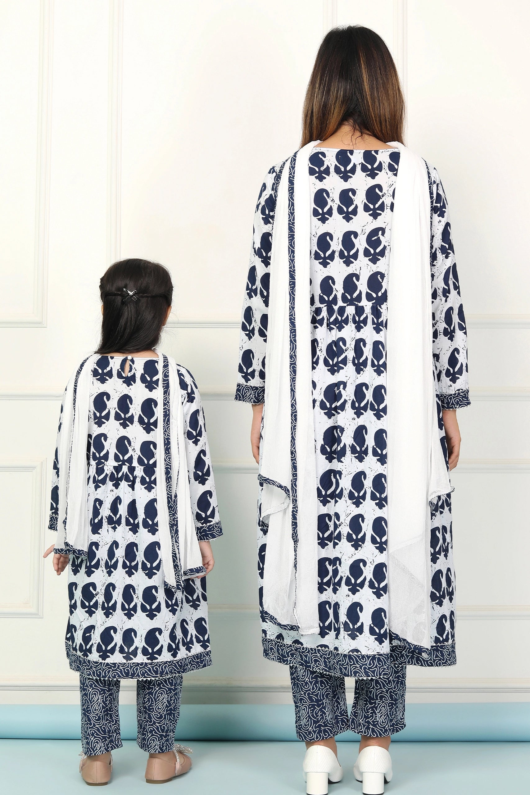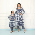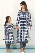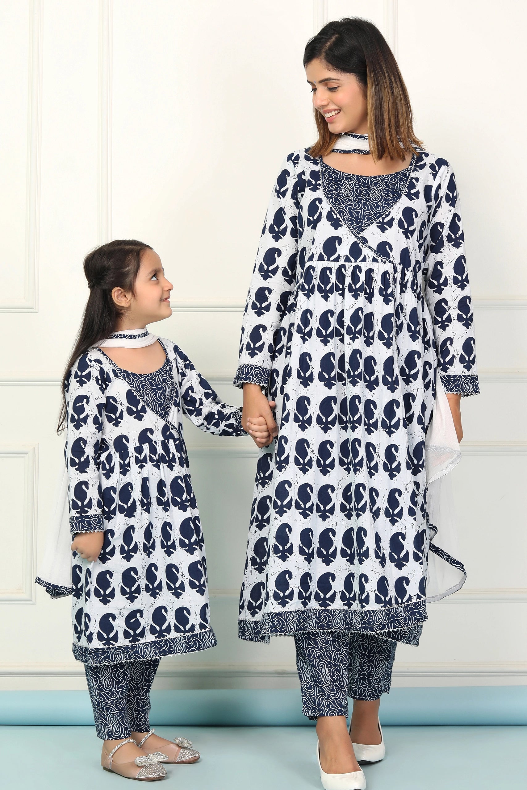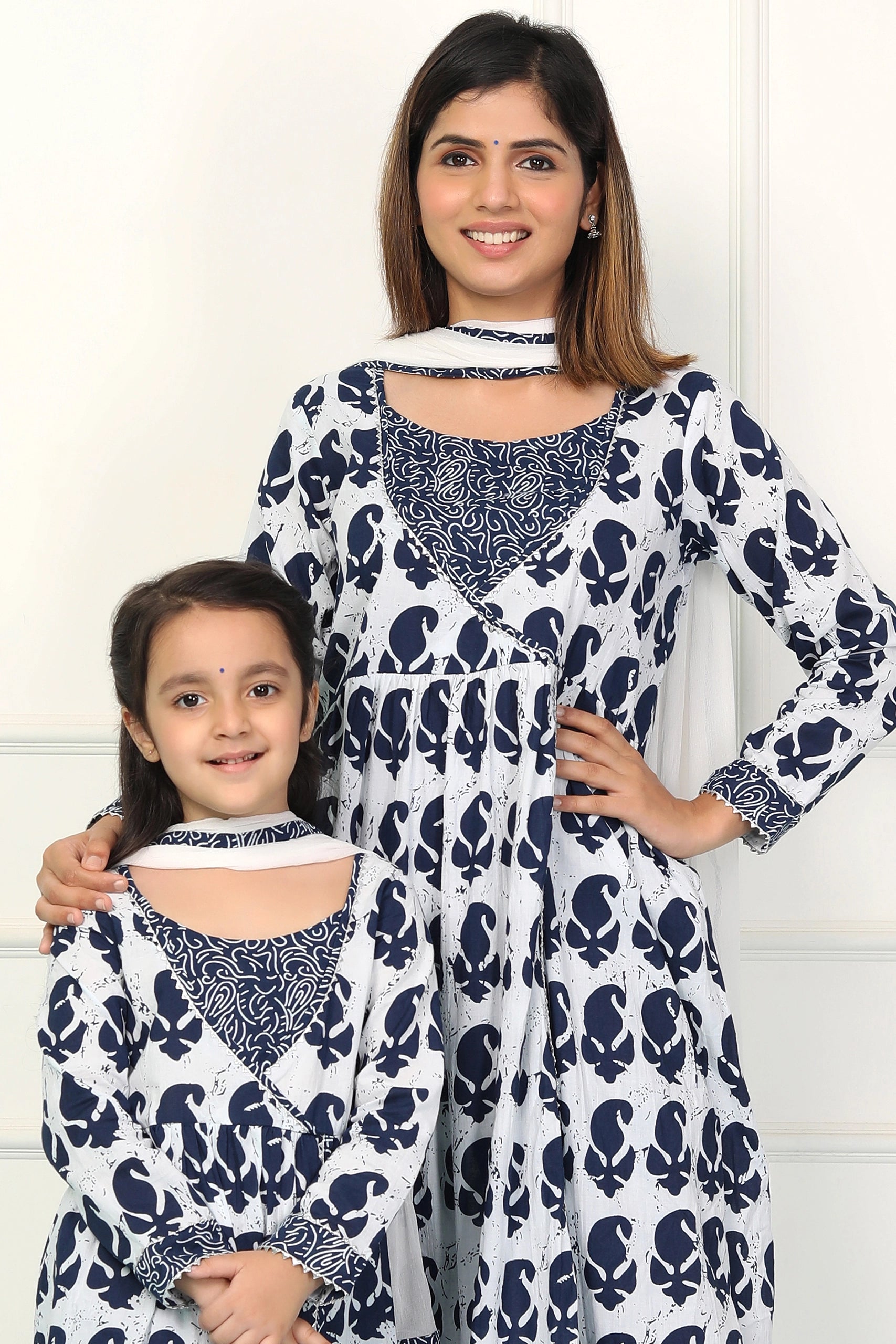 Navy and White Indigo Printed Matching Set for Mother and Daughter