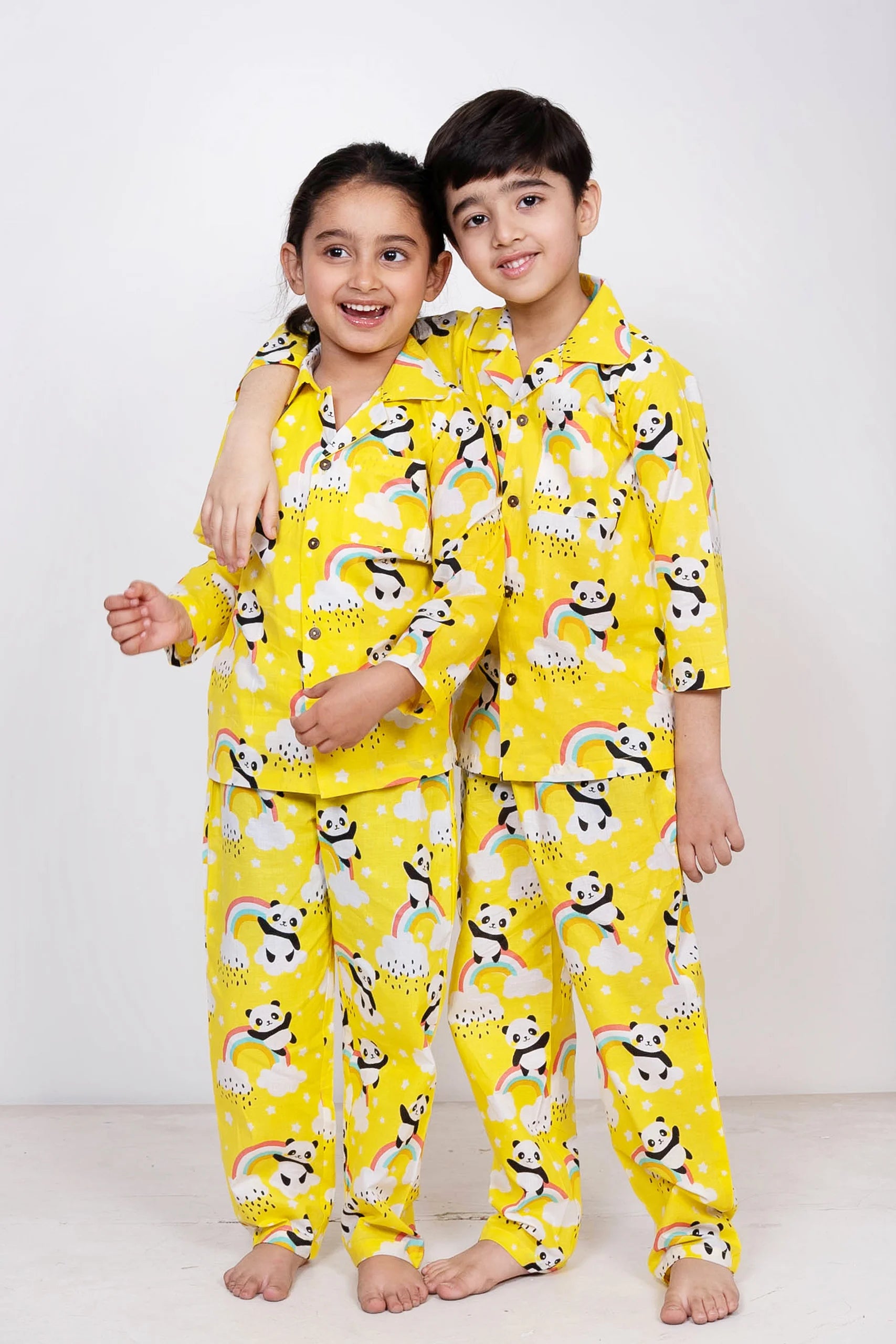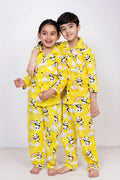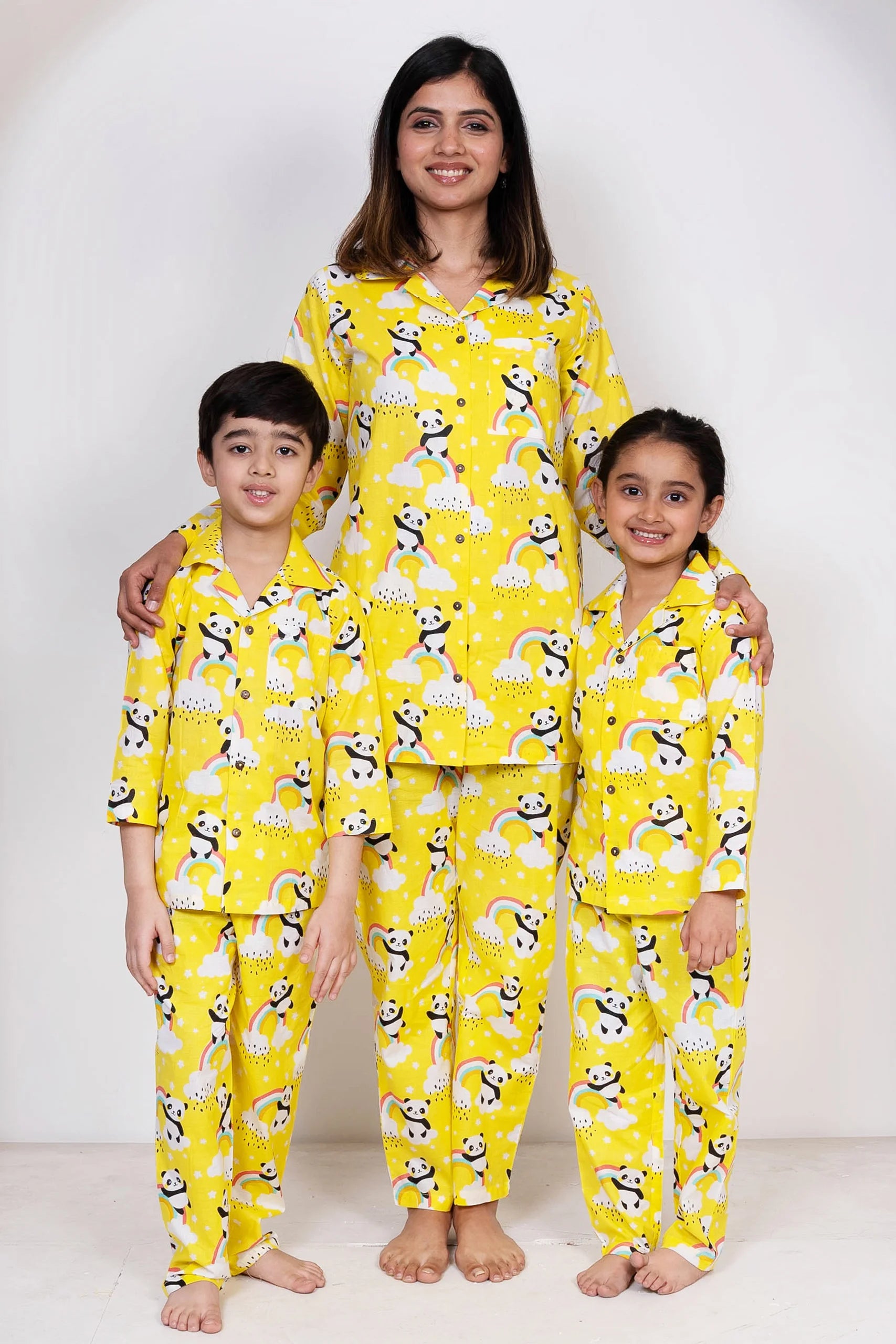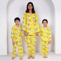 Lemony Yellow and White Floral Printed Night Suit Set For Mom Son & Daughter