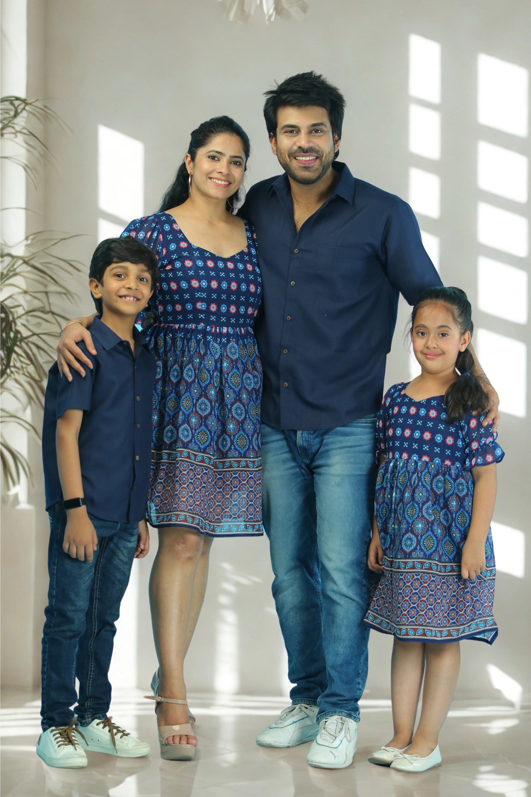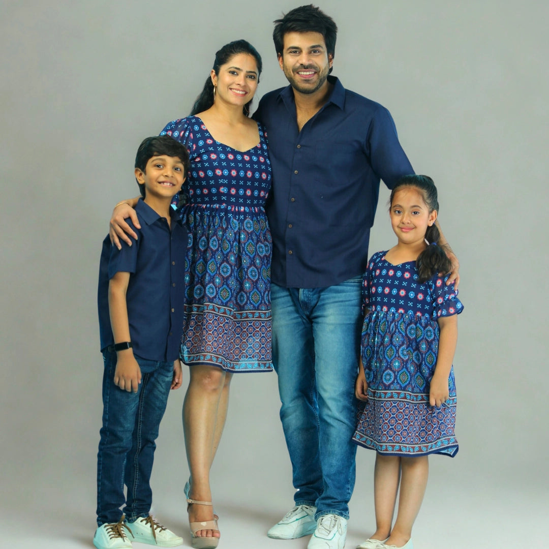 Navy And Blue Rhea Family Set With Matching Dress & Shirt