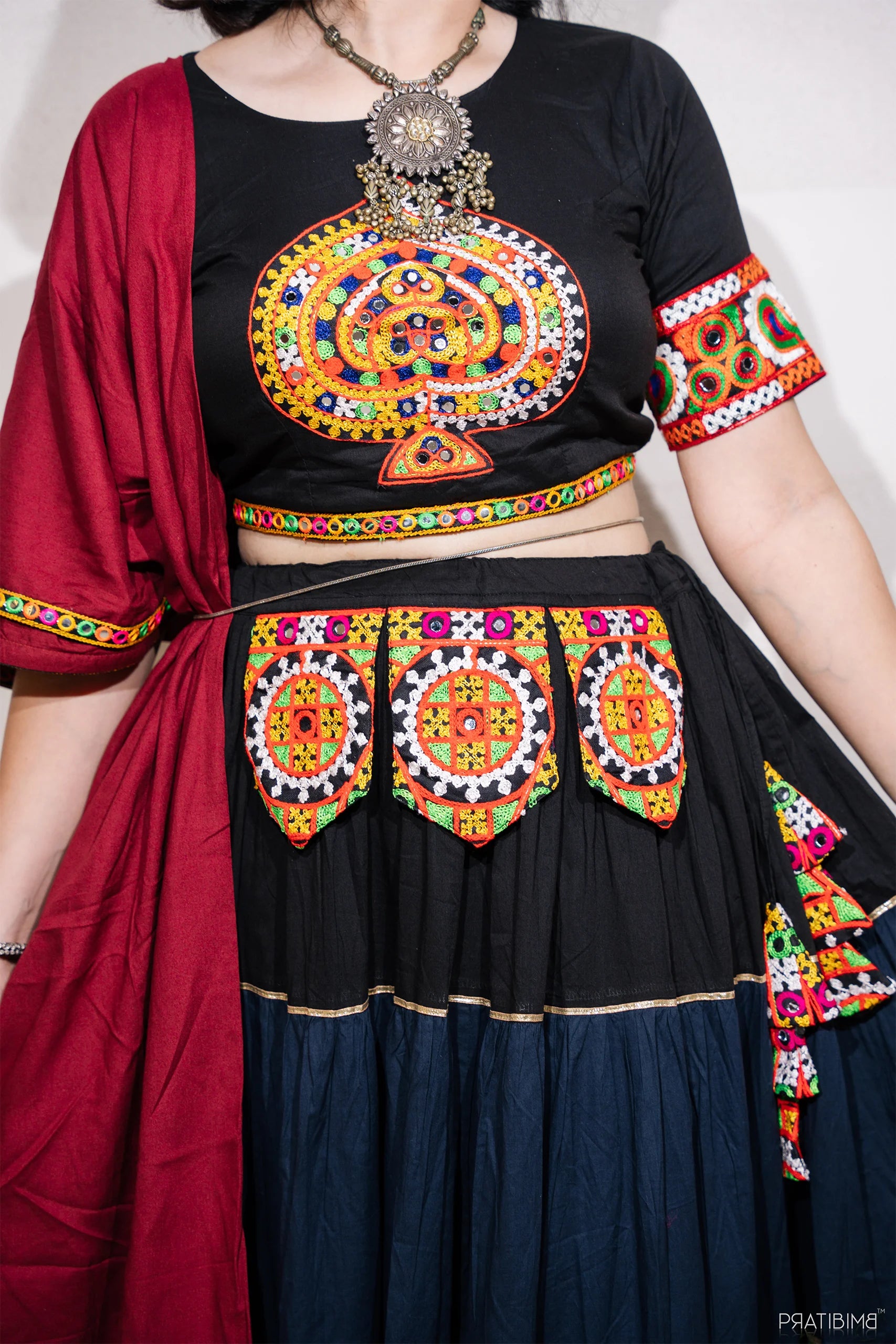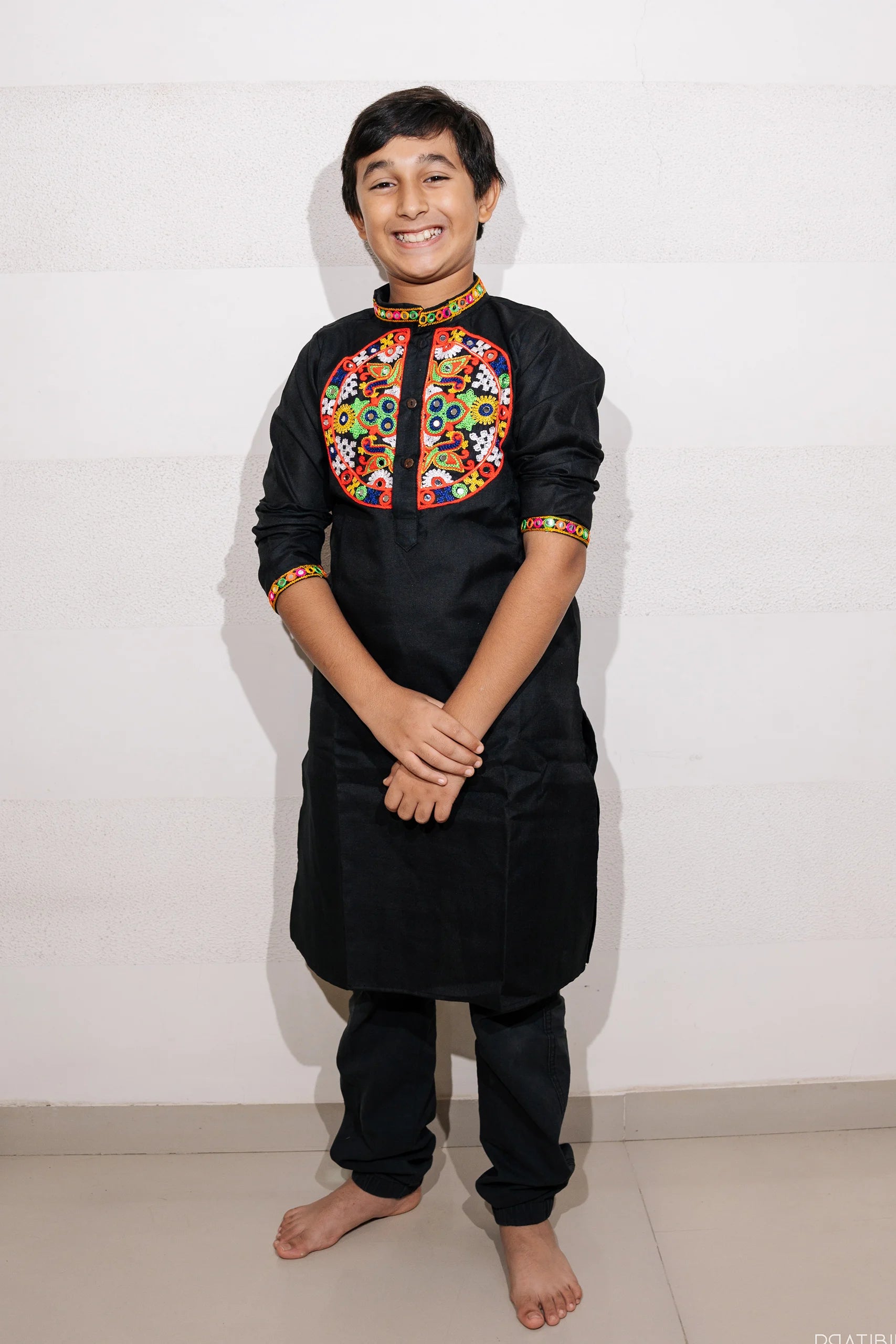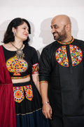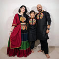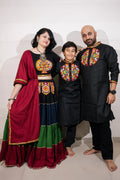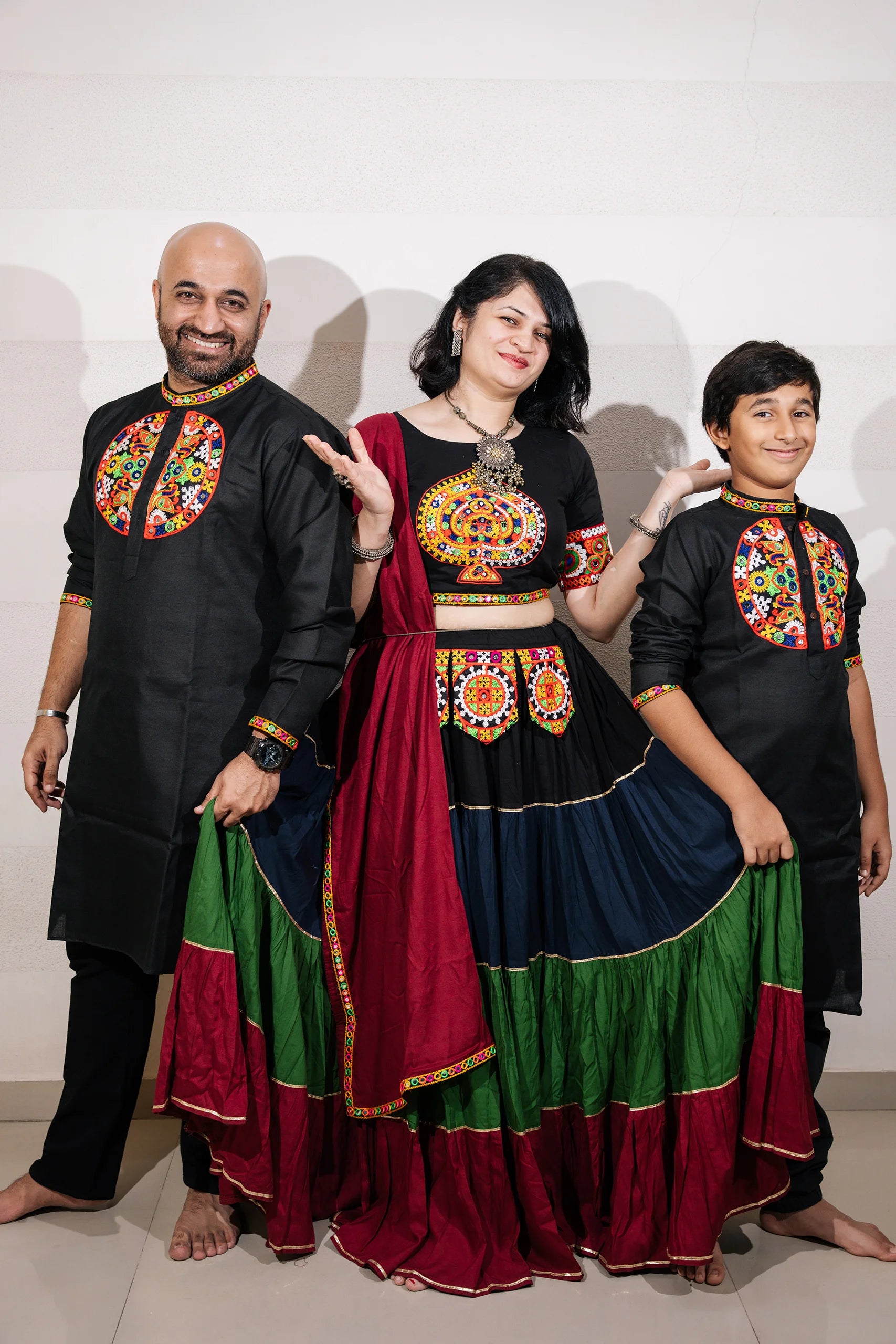 Ethnic Hand Embroidered Black And Multi Color Lehenga Choli With Matching Kurta Pyjama Family Twin Set