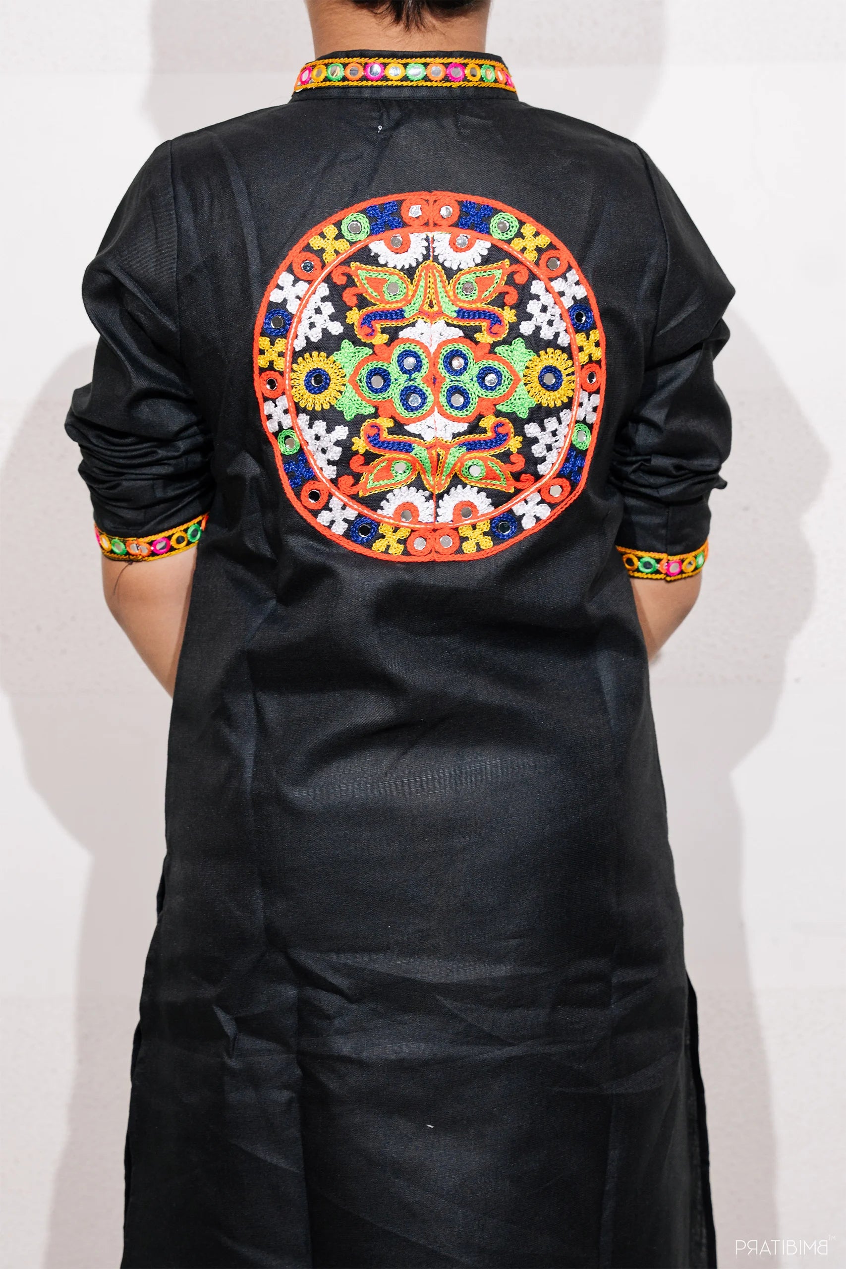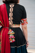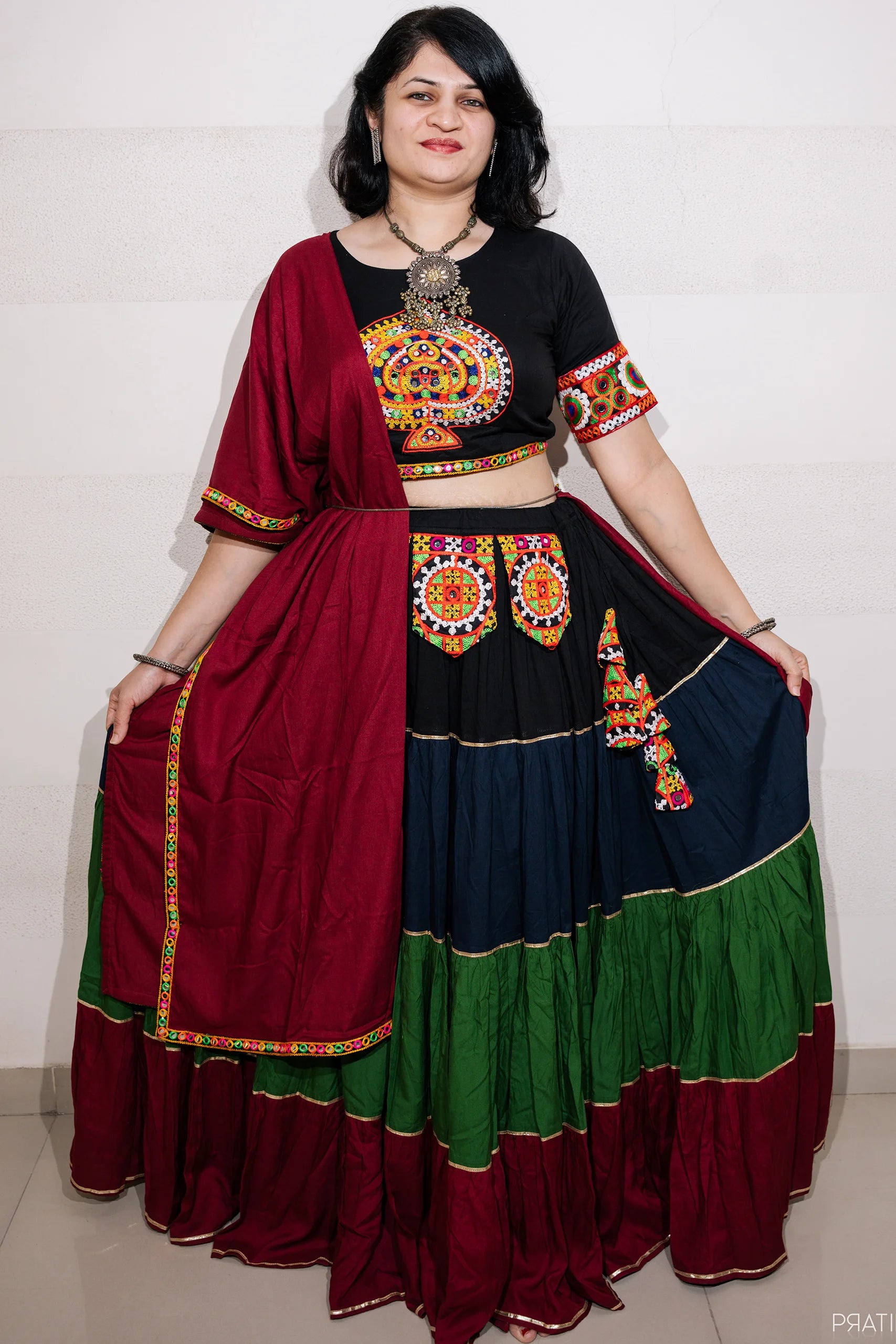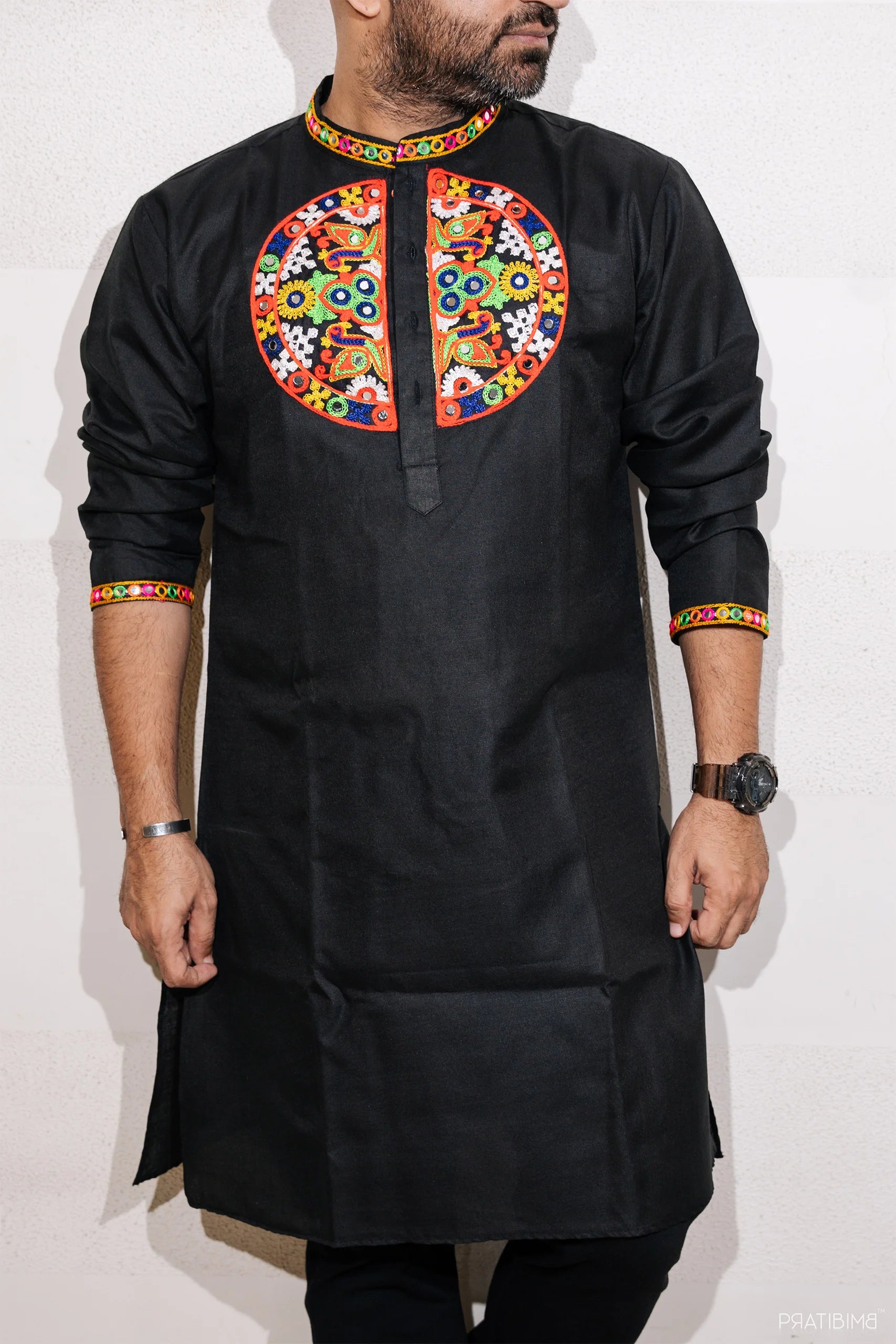 Ethnic Hand Embroidered Black And Multi Color Lehenga Choli With Matching Kurta Pyjama Family Twin Set