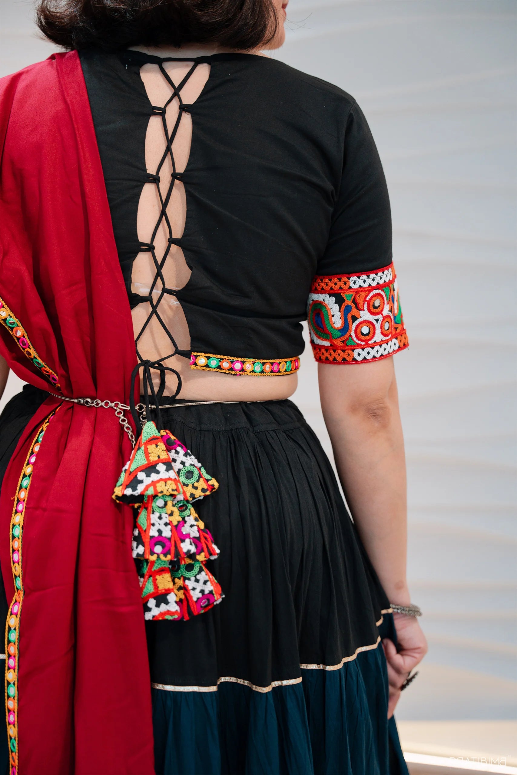 - Closure : Criss Cross Thread (Choli), Elasticated Waistband (Lehenga)