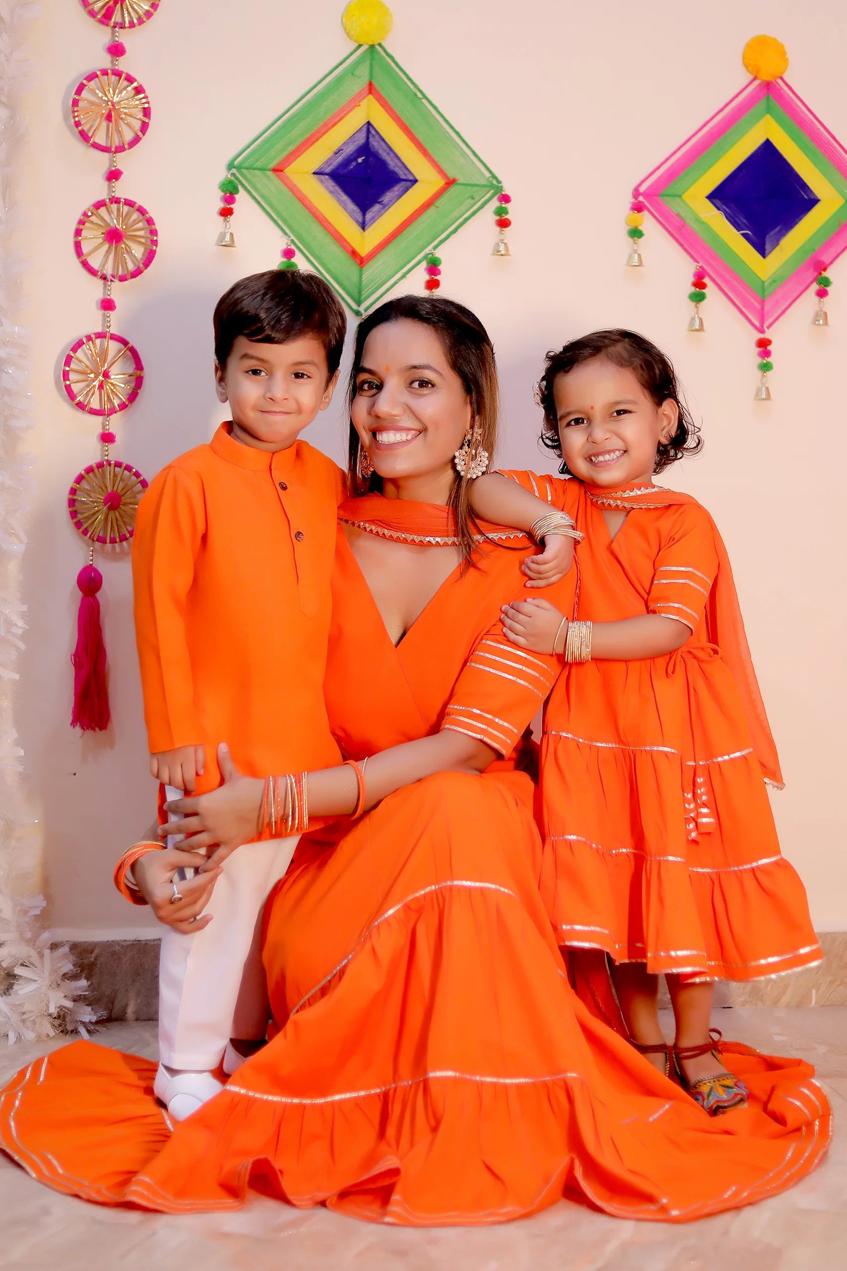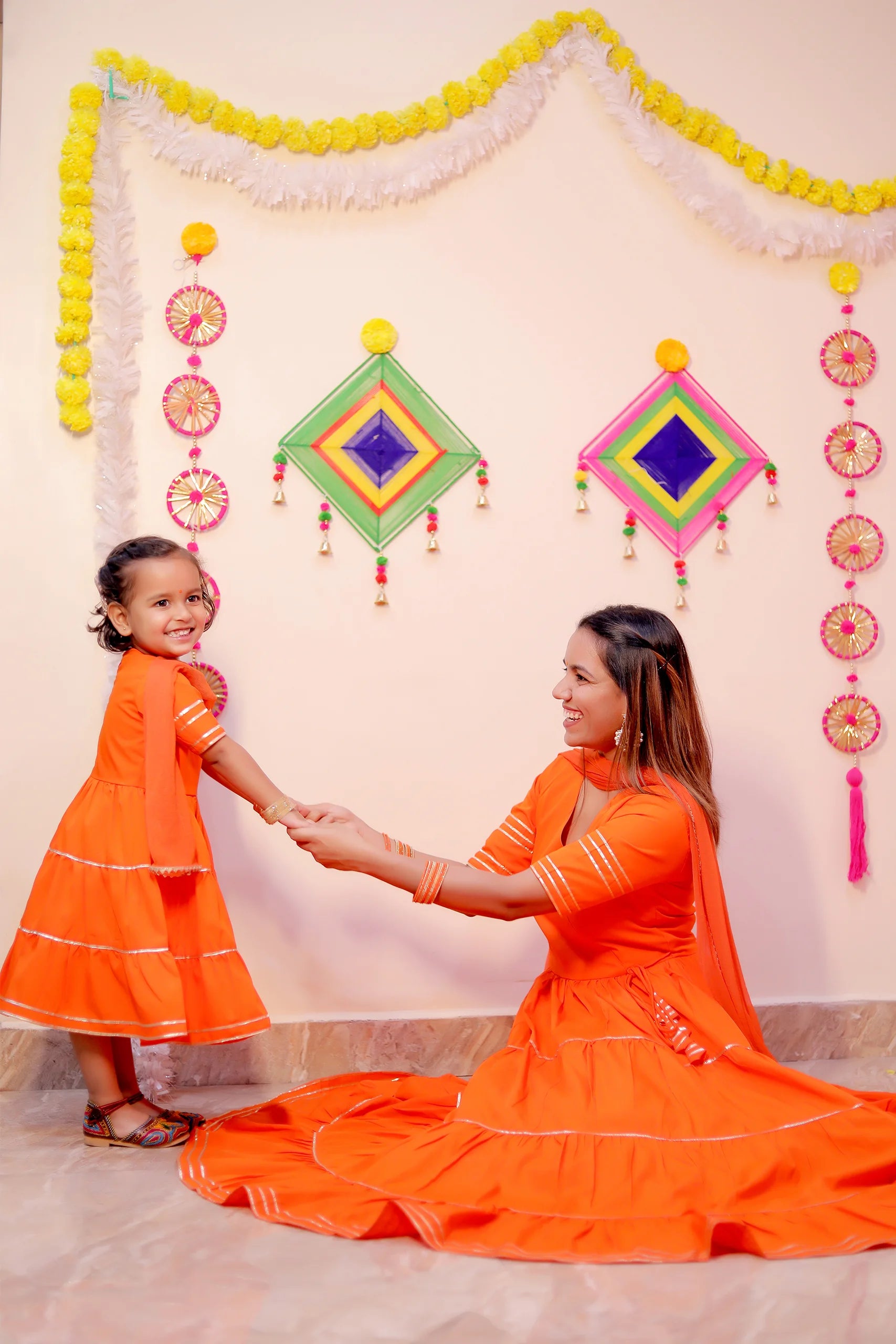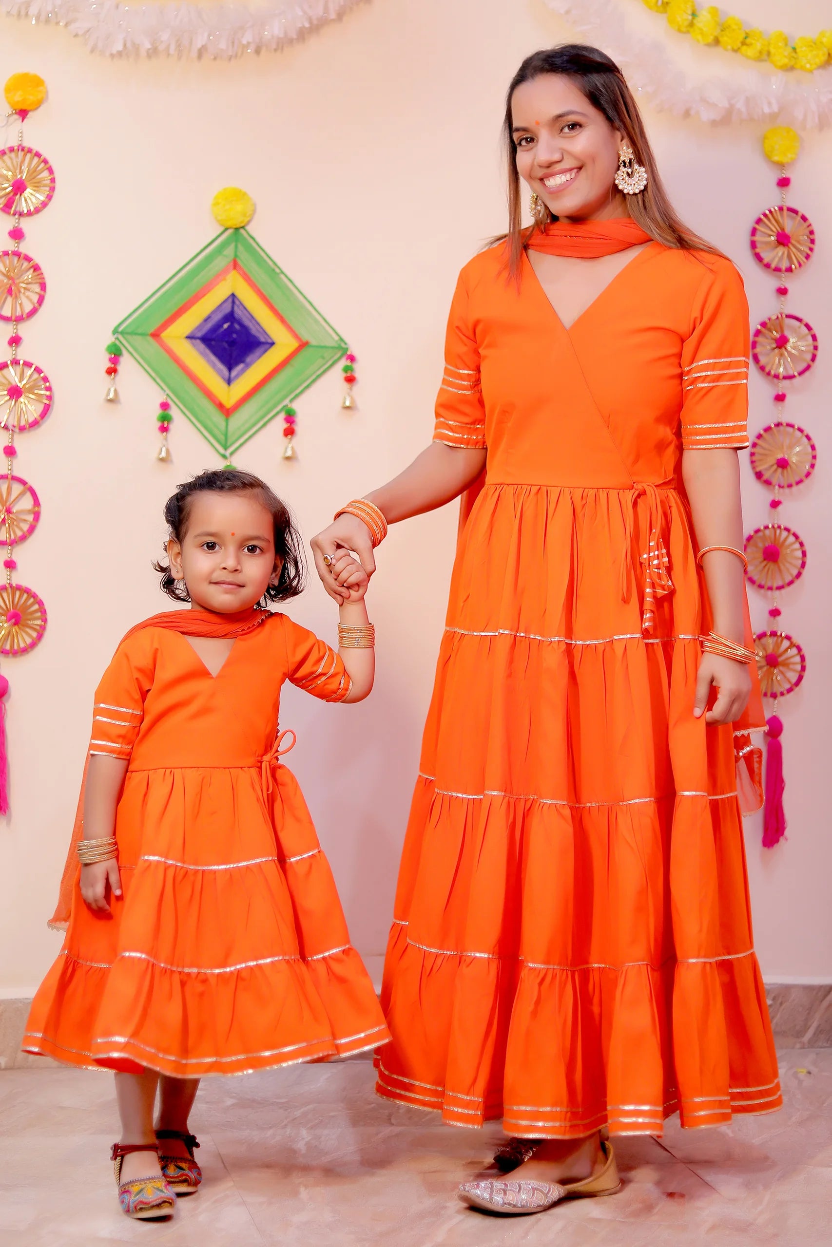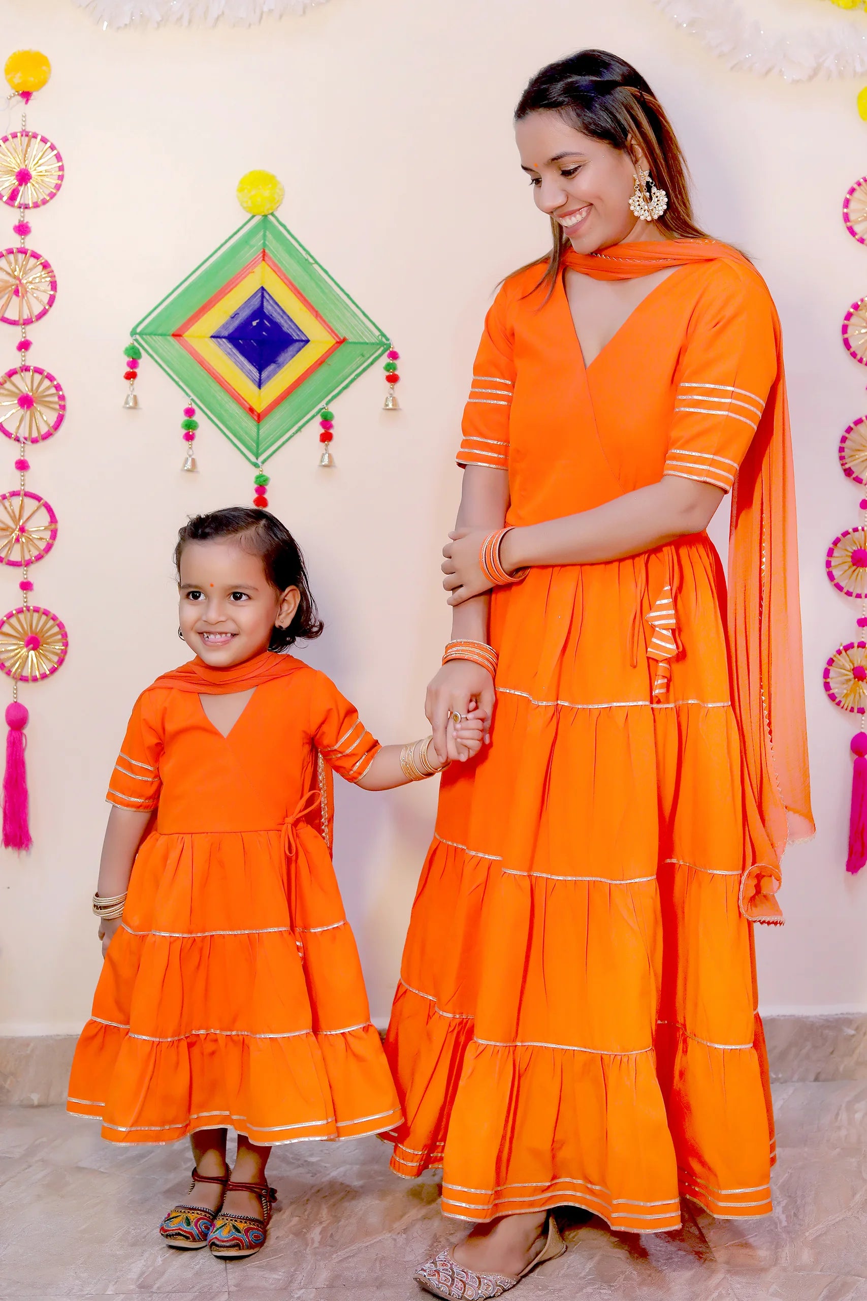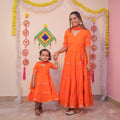 Orange Noor Angrakha Twin Set For Mom and Daughter