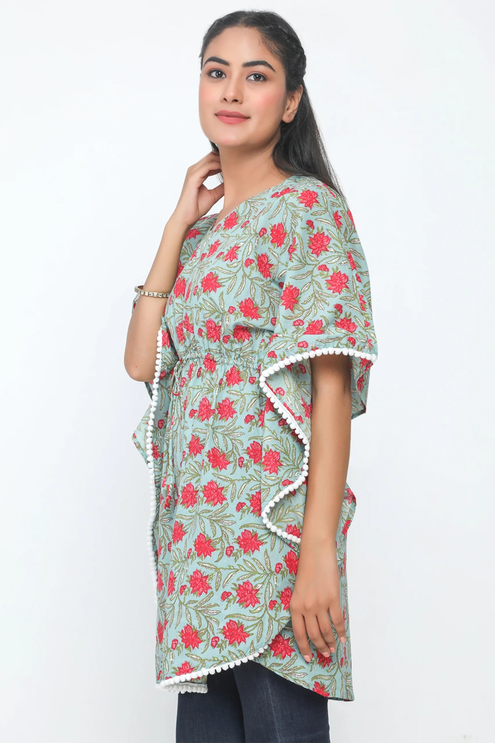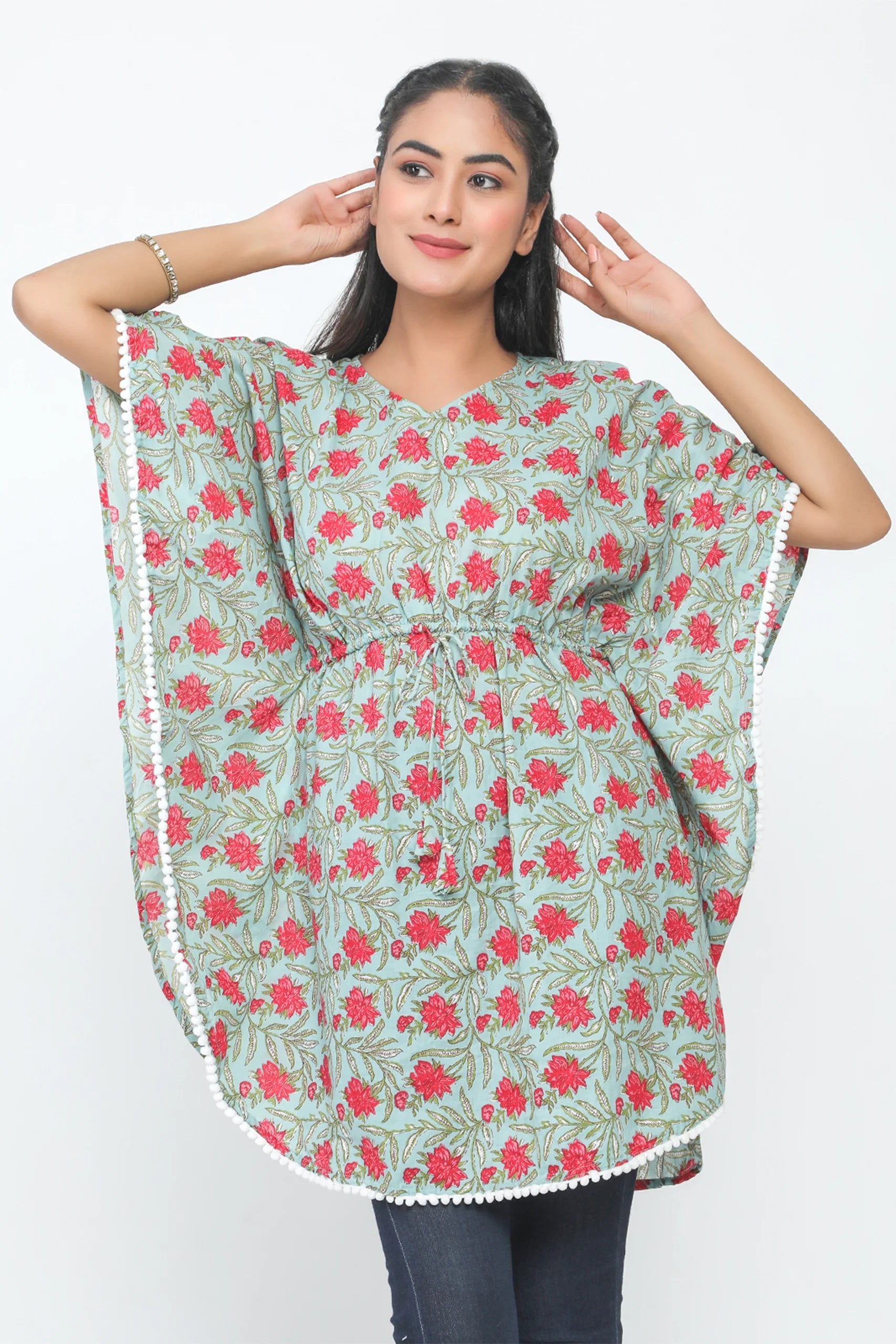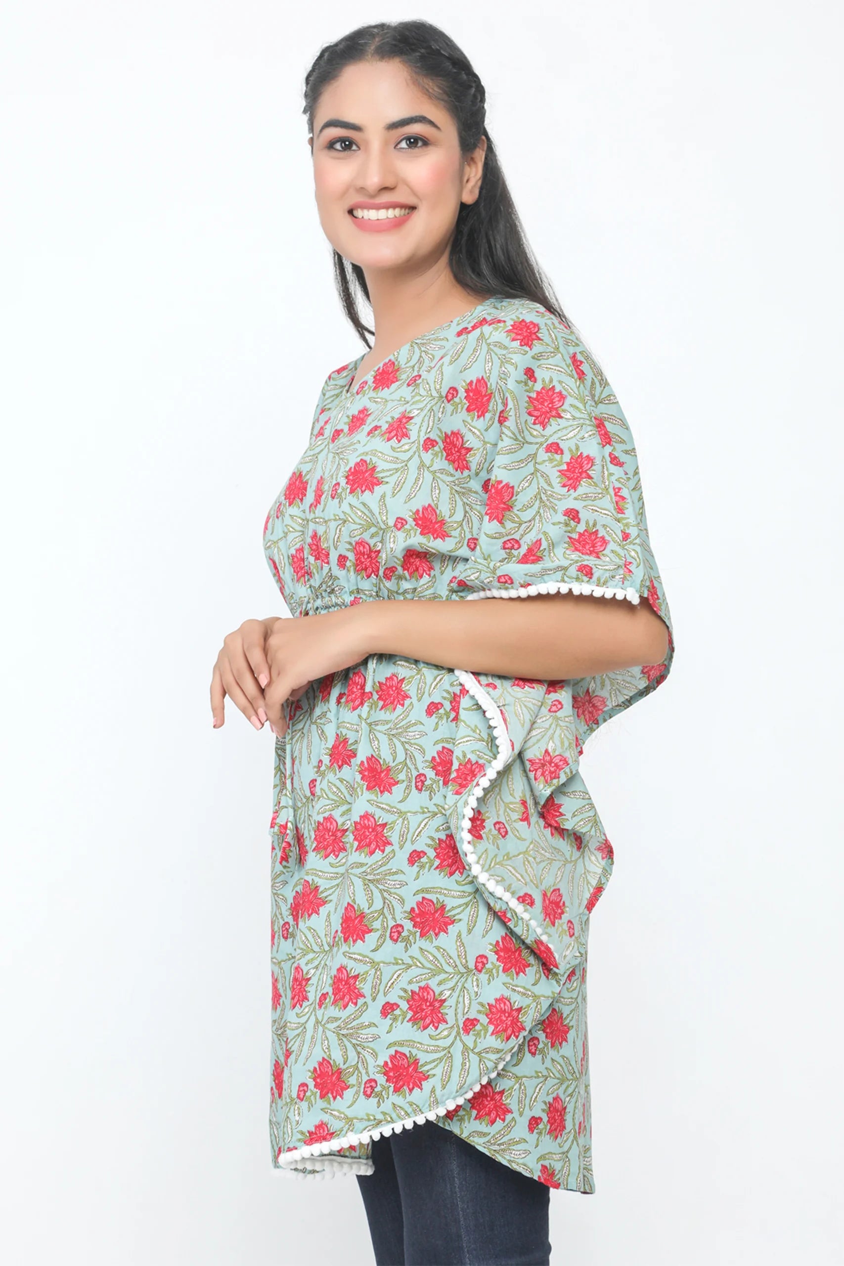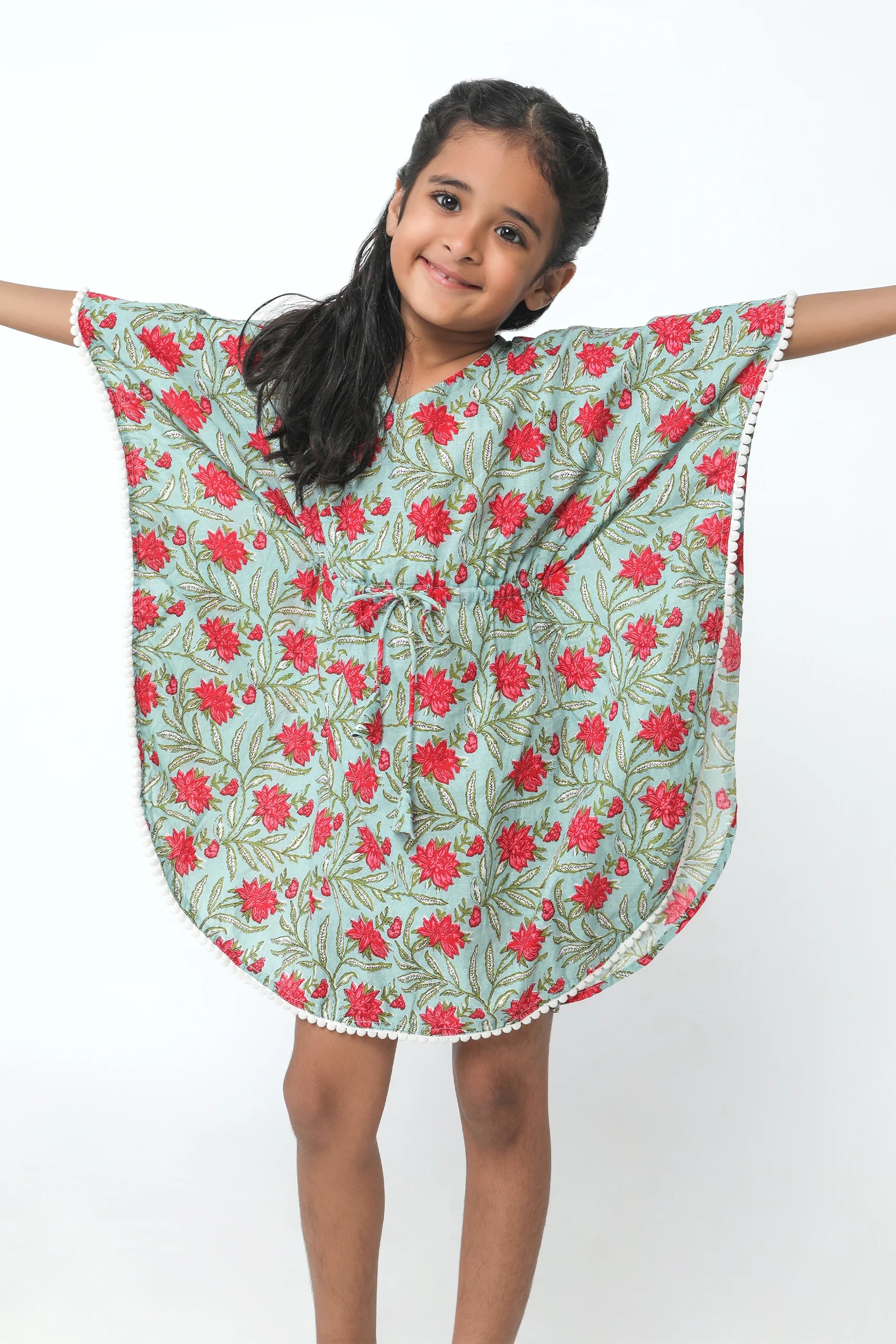 Mom and Daughter Green And Red Printed Matching Kaftan