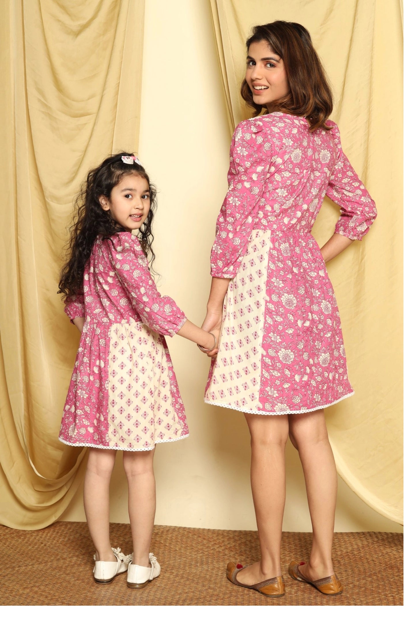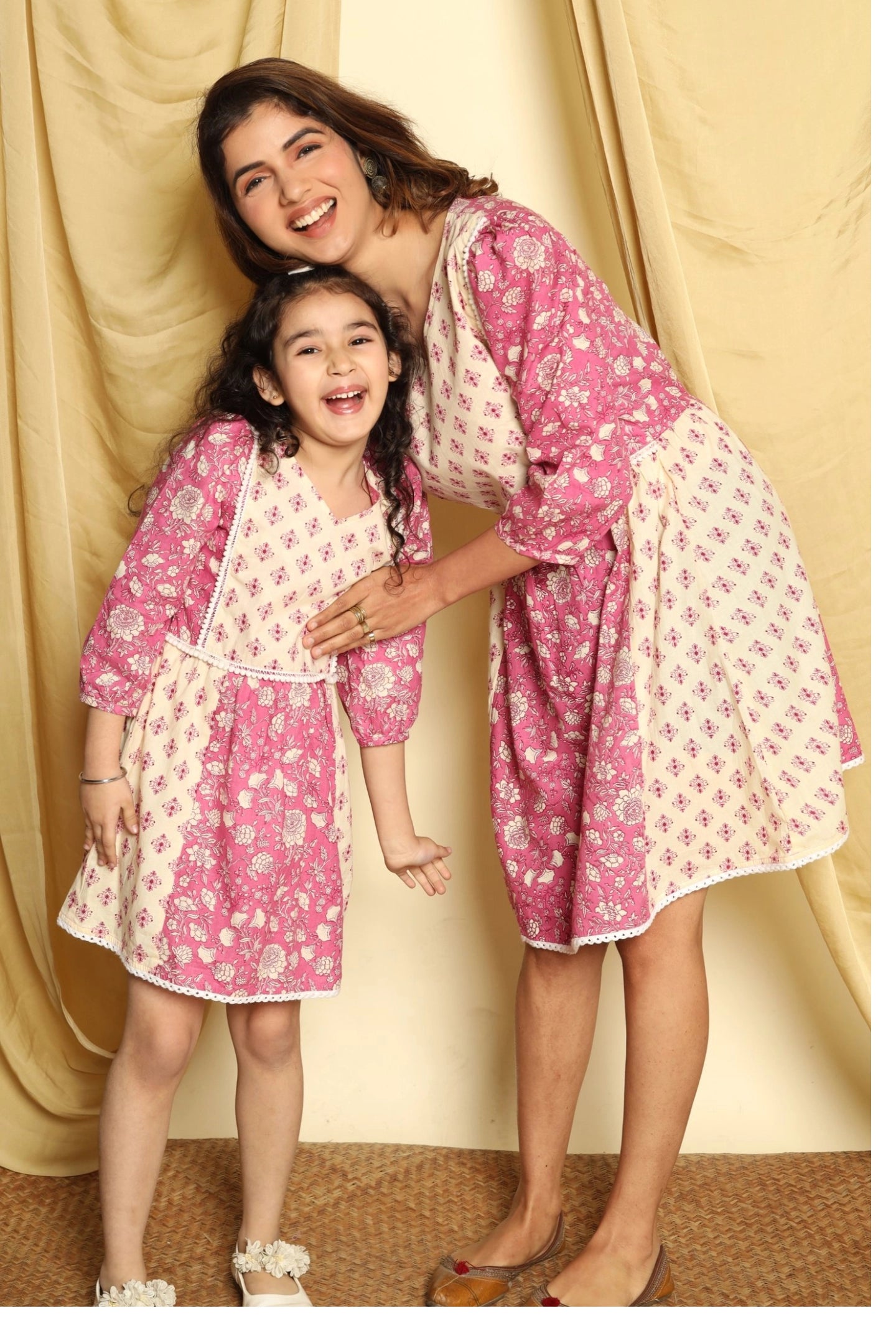 Mom Daughter Duo Rouge And Cream Printed Dress