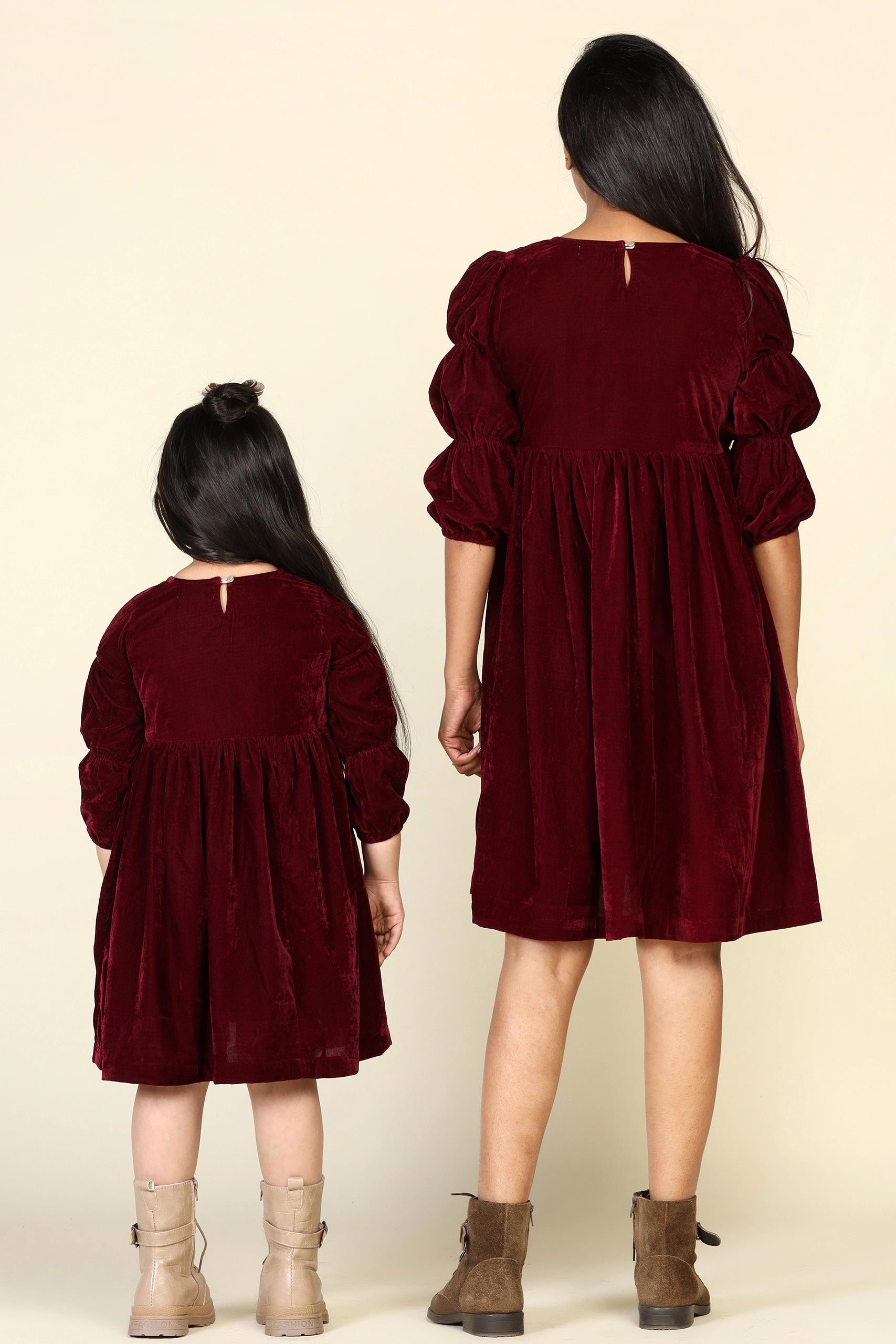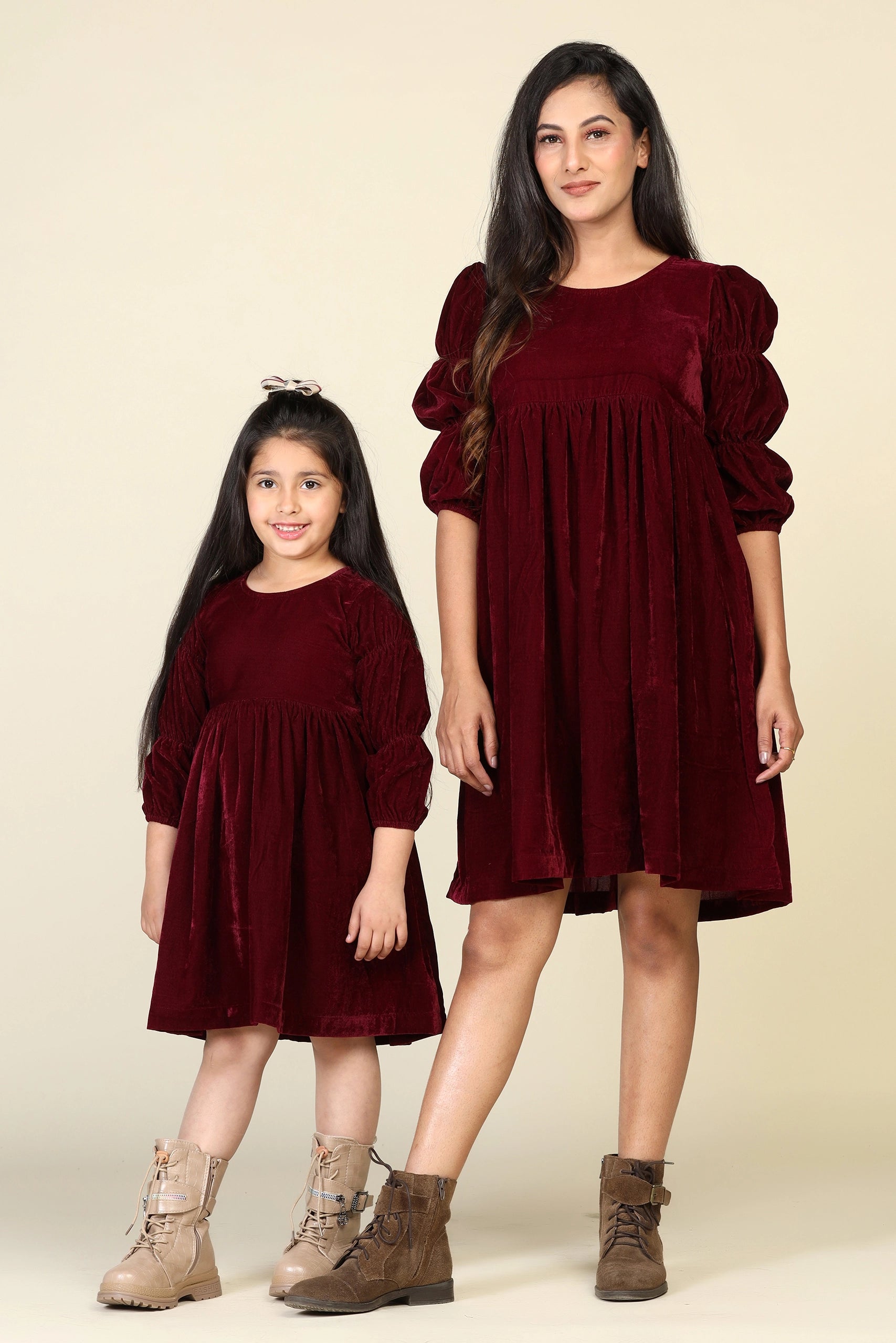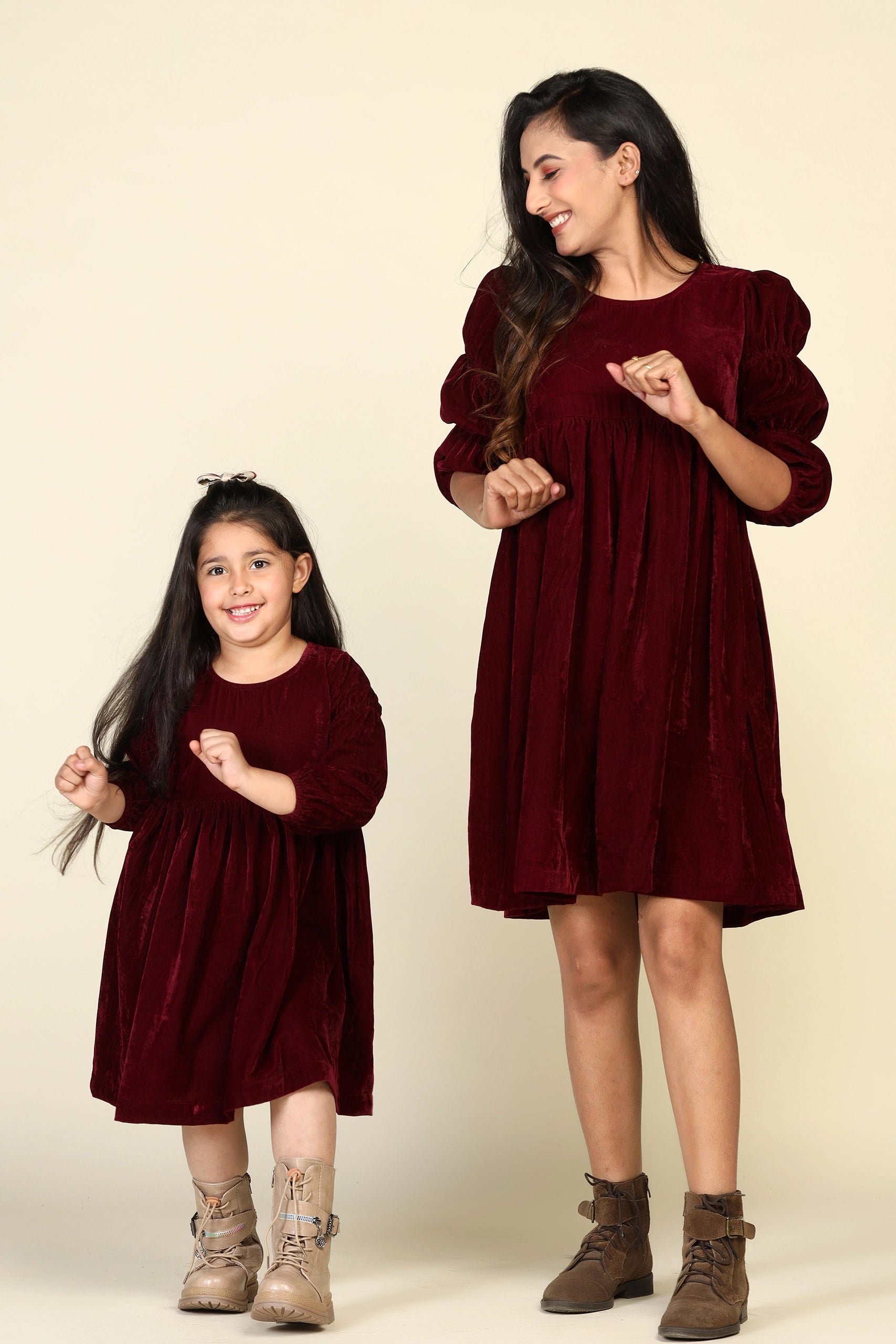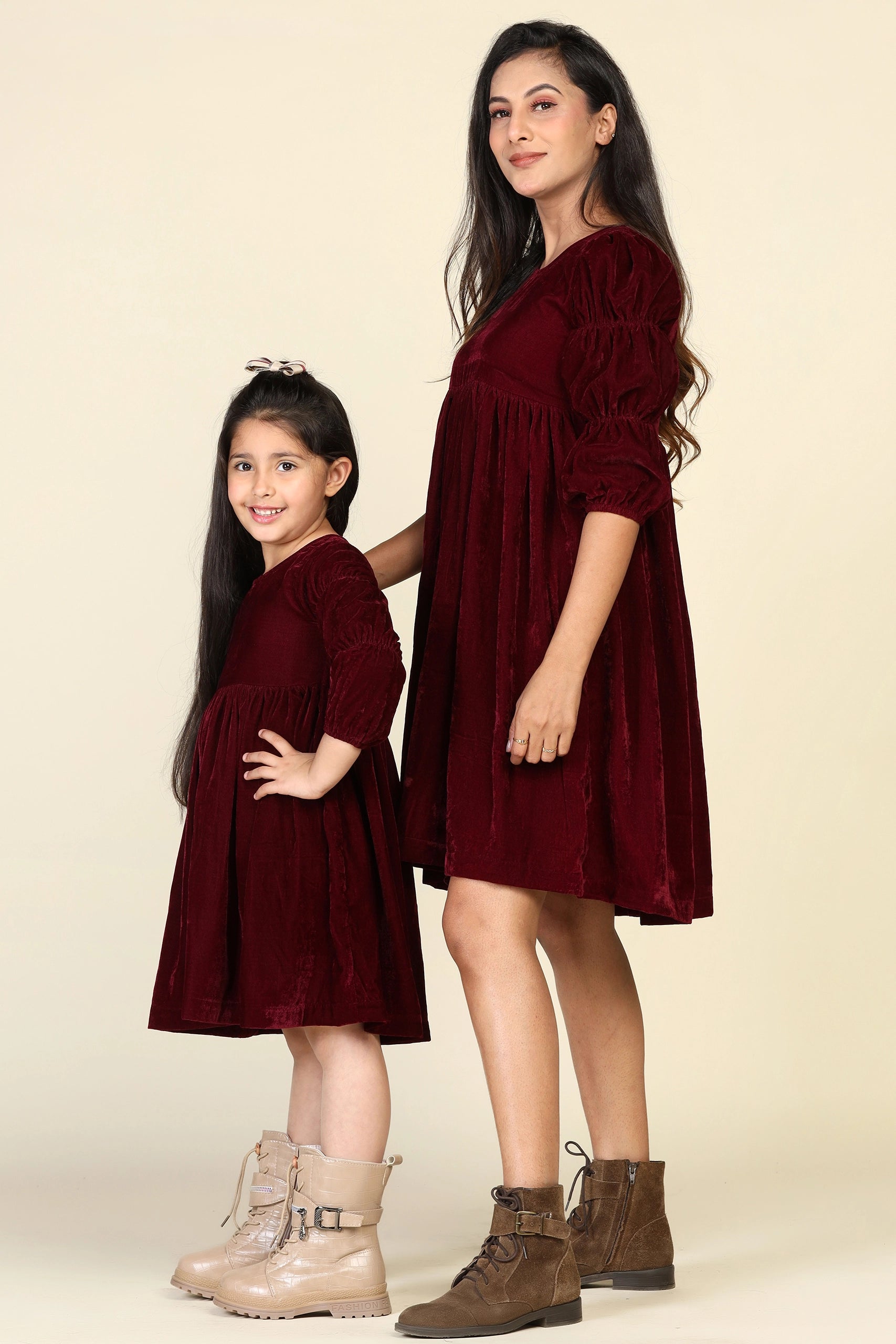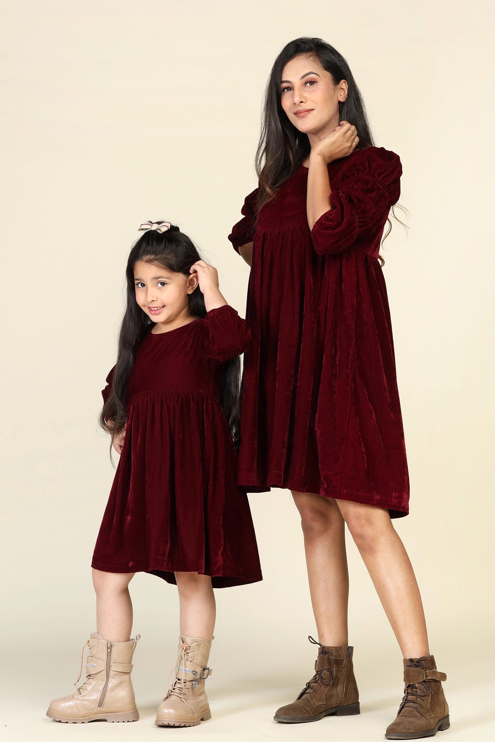 Mom & Daughter Duo: Stunning Maroon Velvet Samaira Dresses