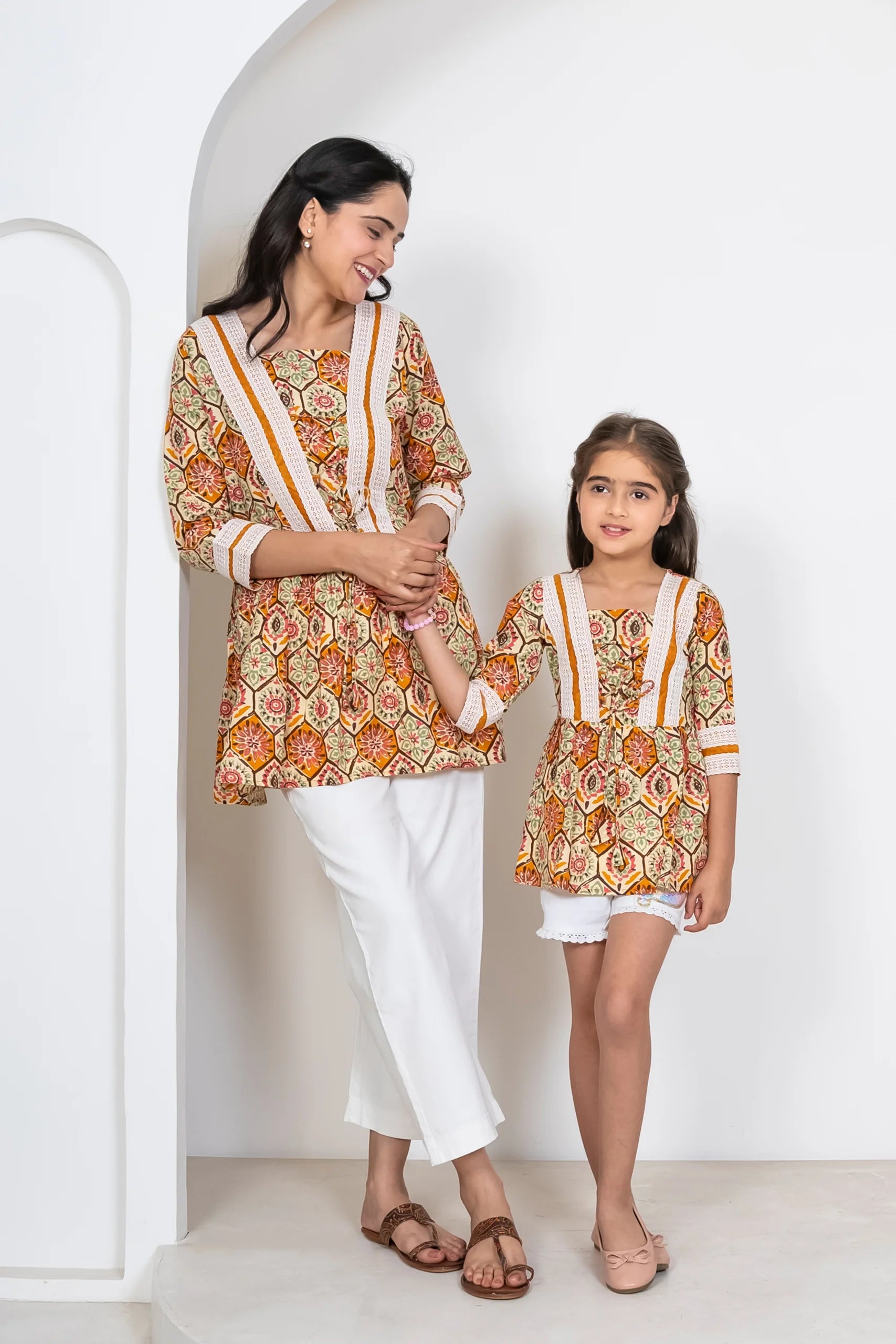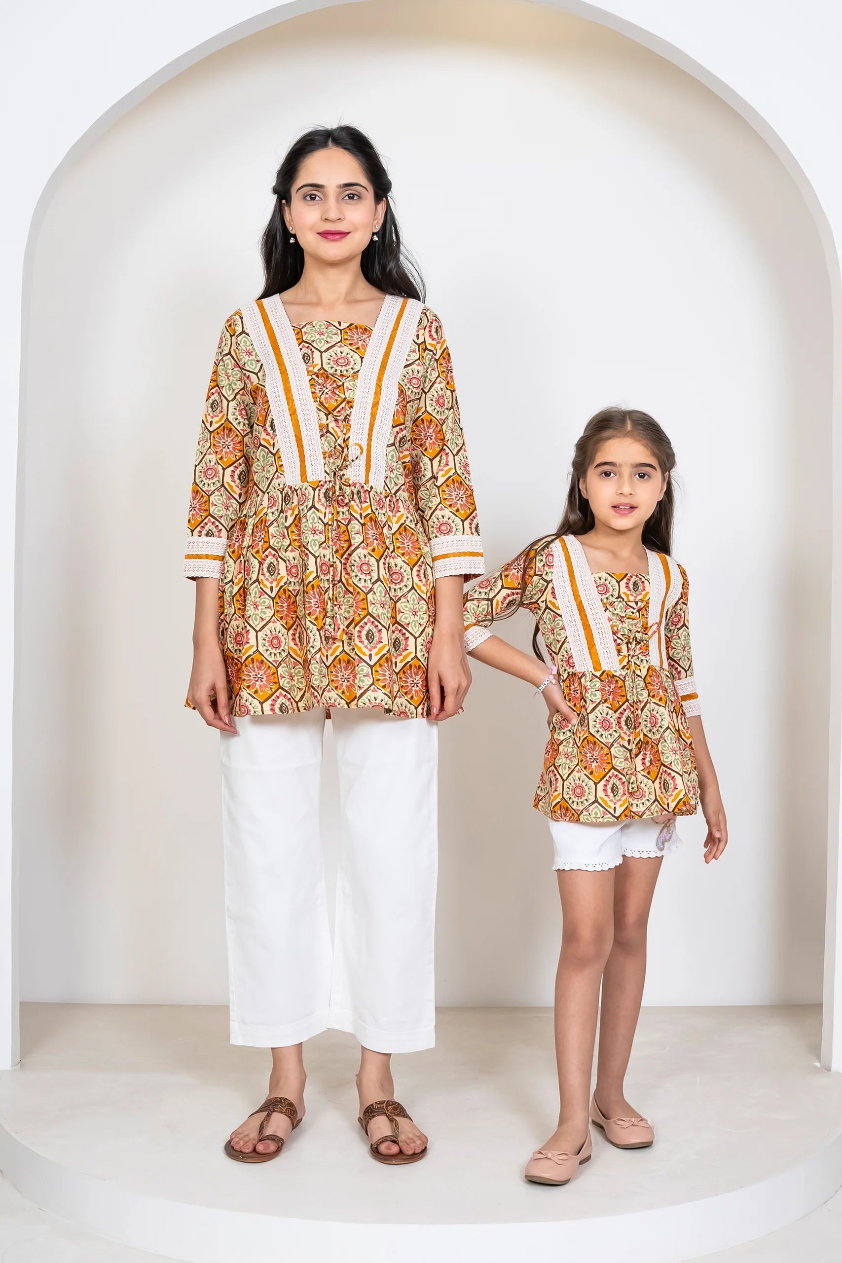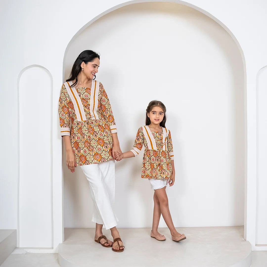Cotton Peplum Tops: Matching Outfits for Mom and Daughter, Ideal for Summer Holidays