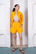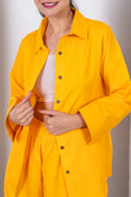Mustard Cotton Shorts and Shirt Co-Ord Set for Women