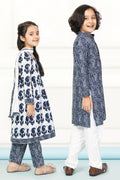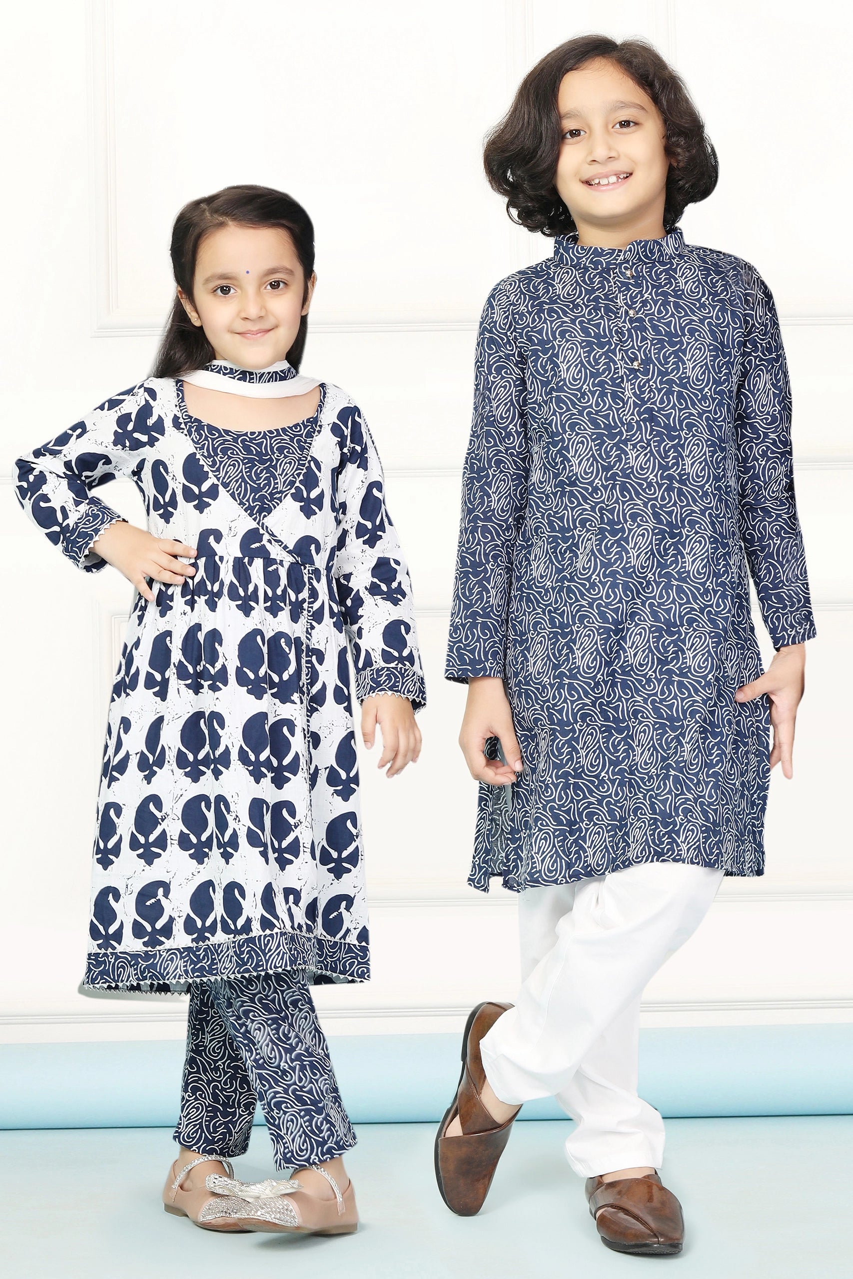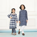 Navy and White Indigo Print Twin Suit Set with Coordinated Kurta Pyjamas - Perfect Sibling Outfits for Brothers and Sister
