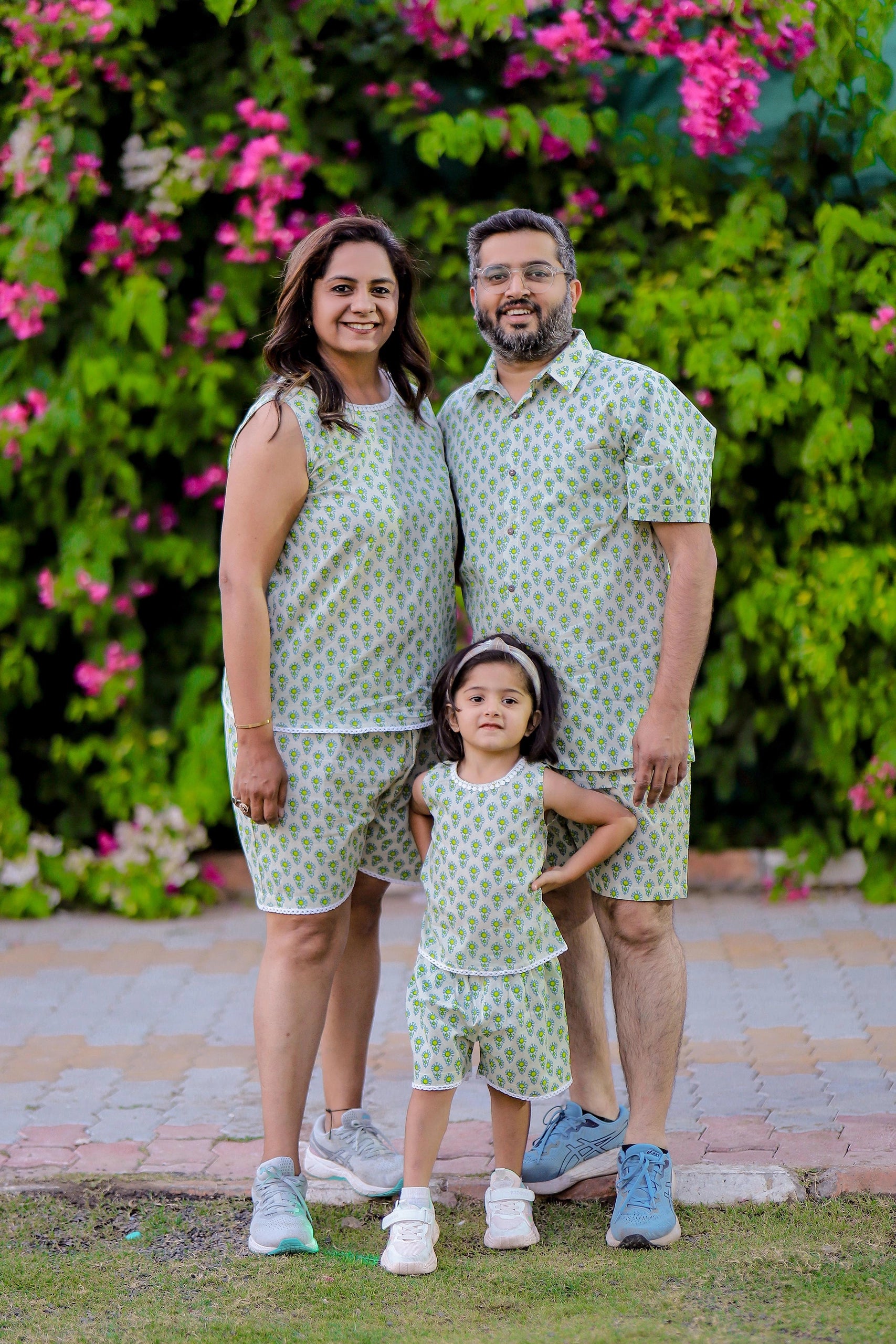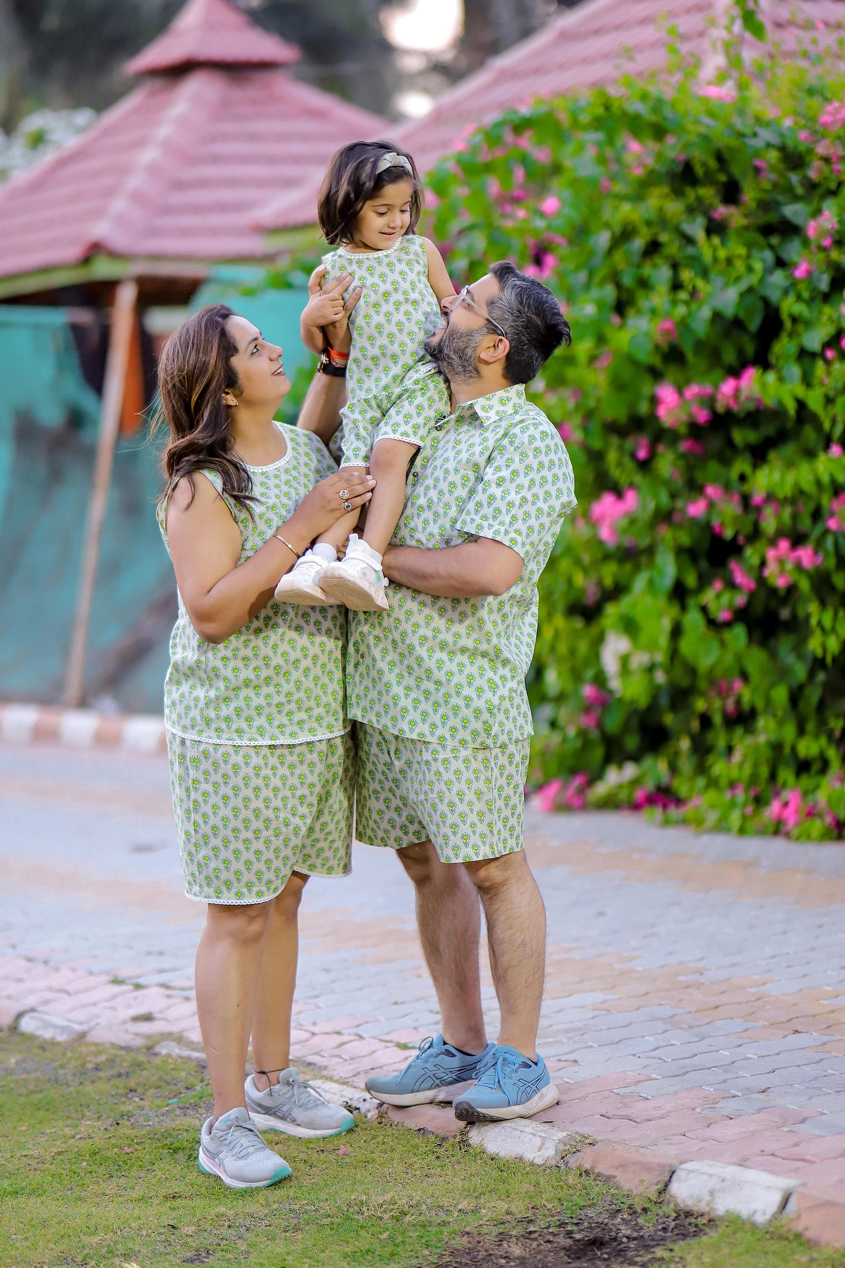 Vacation Ready Green Floral Printed Family Outfit – Holiday & Beachwear Matching Set