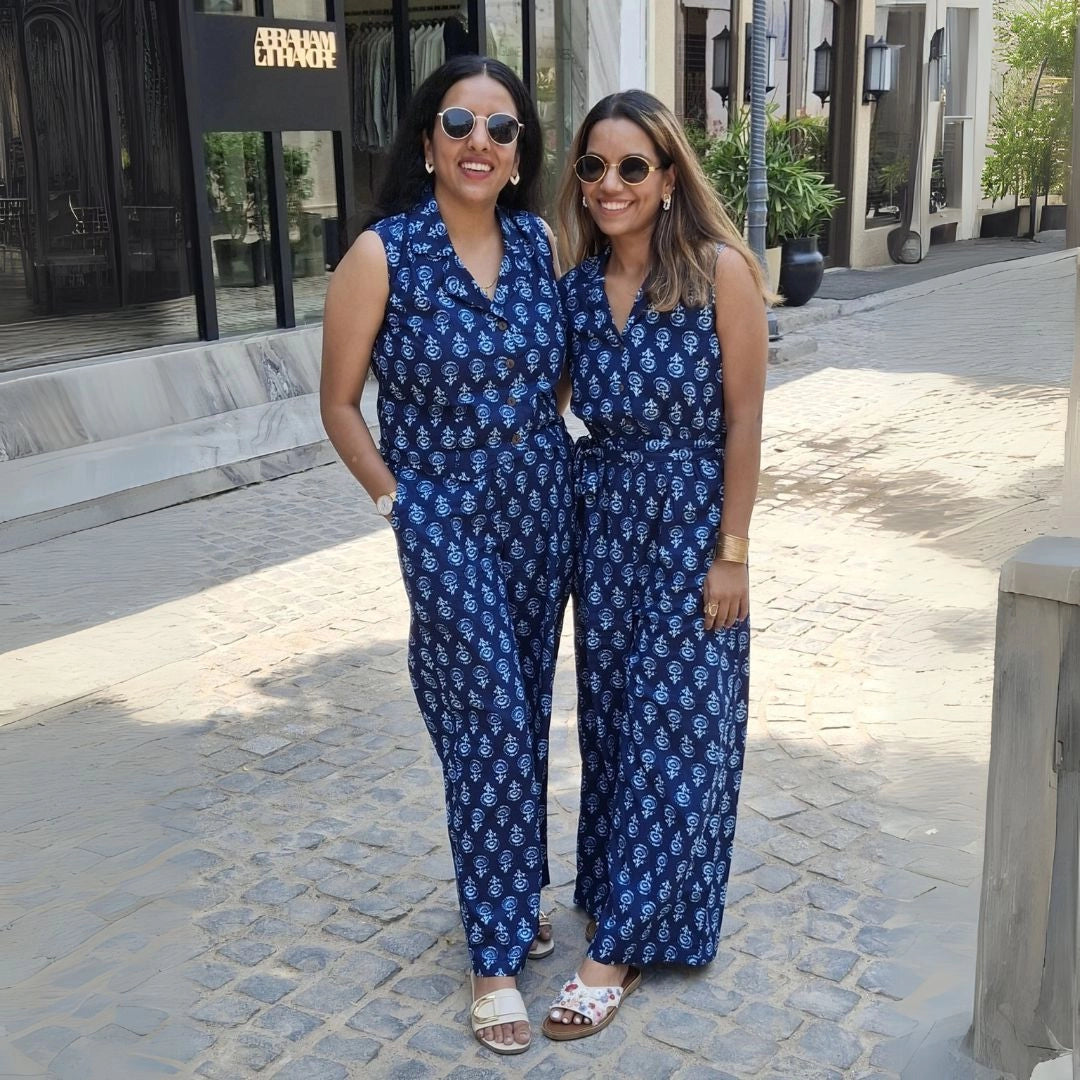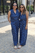 Navy Indigo Print Jumpsuit for Sister Duo