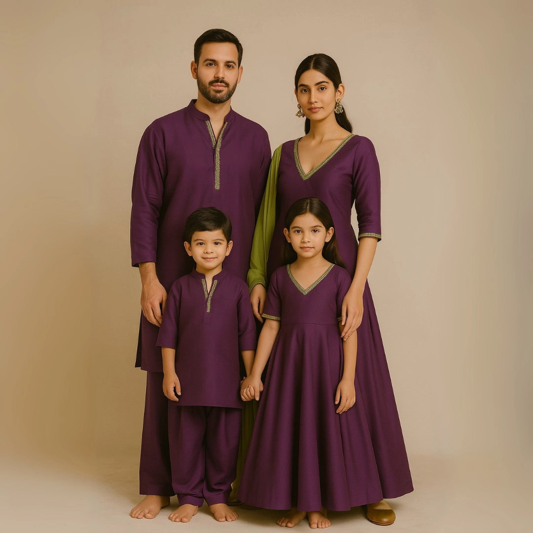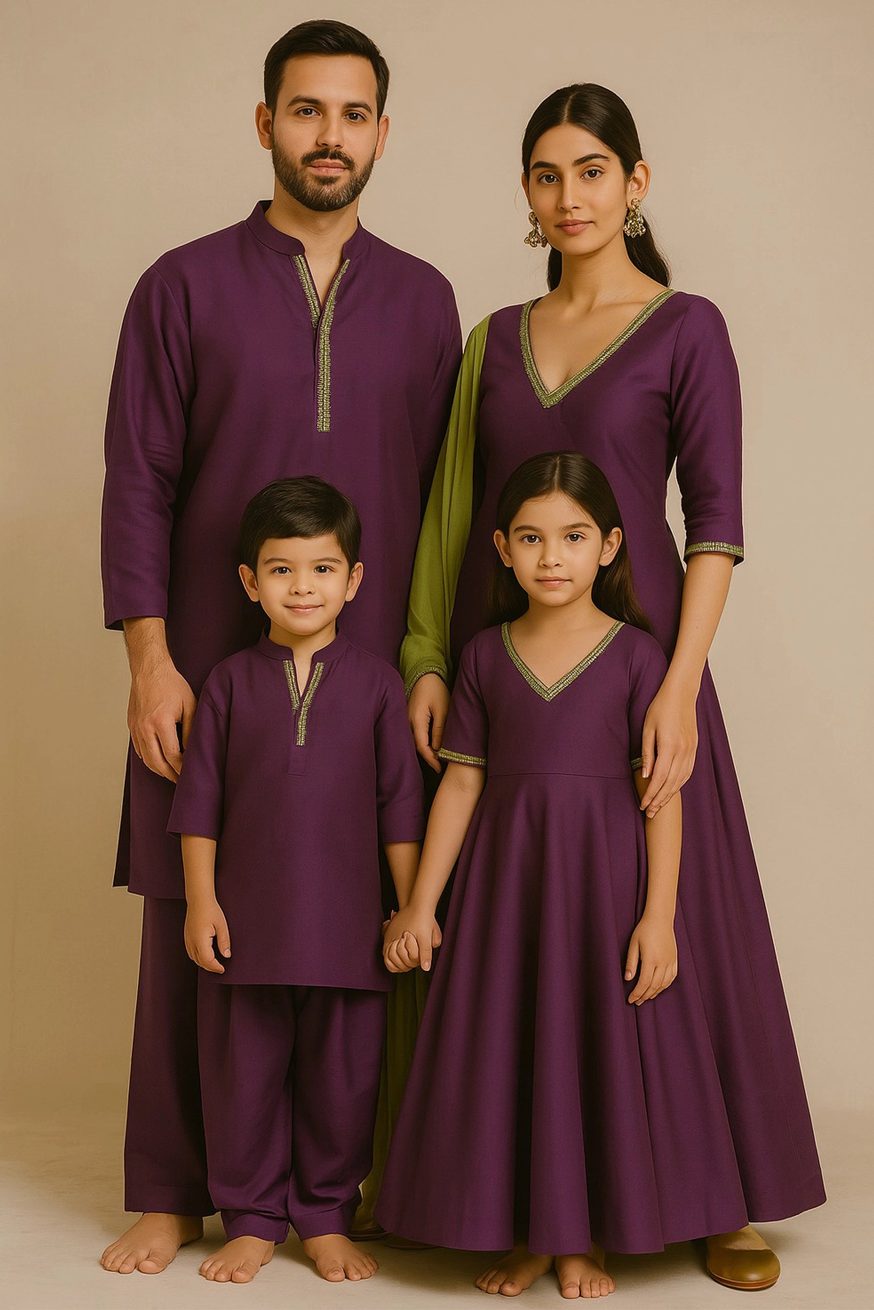 Purple Anarkha Suit Set With Matching Kurta Pajama For Family Set