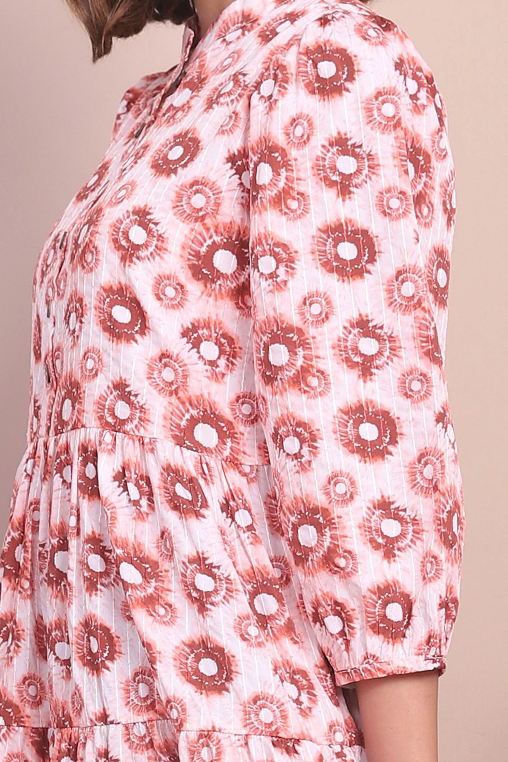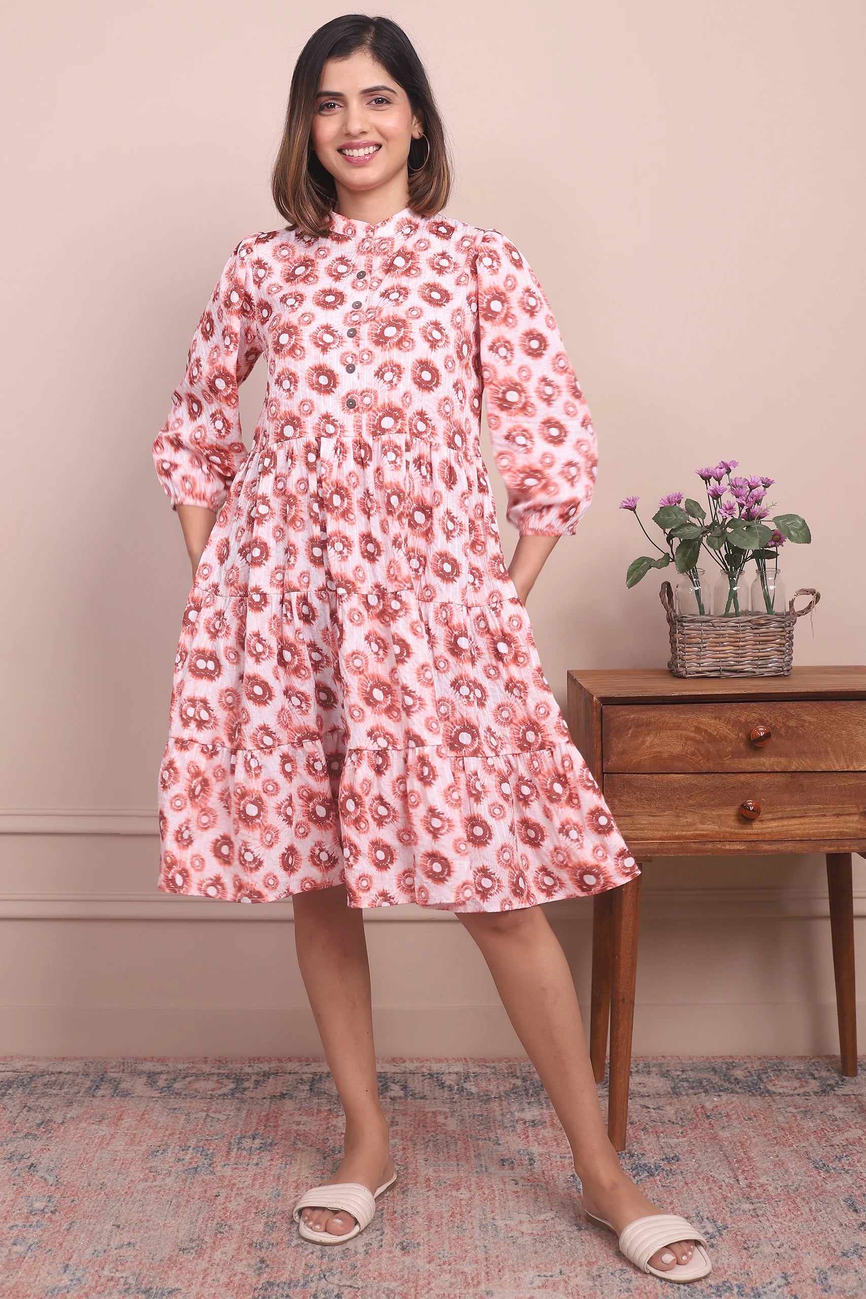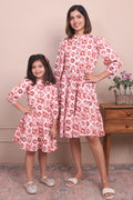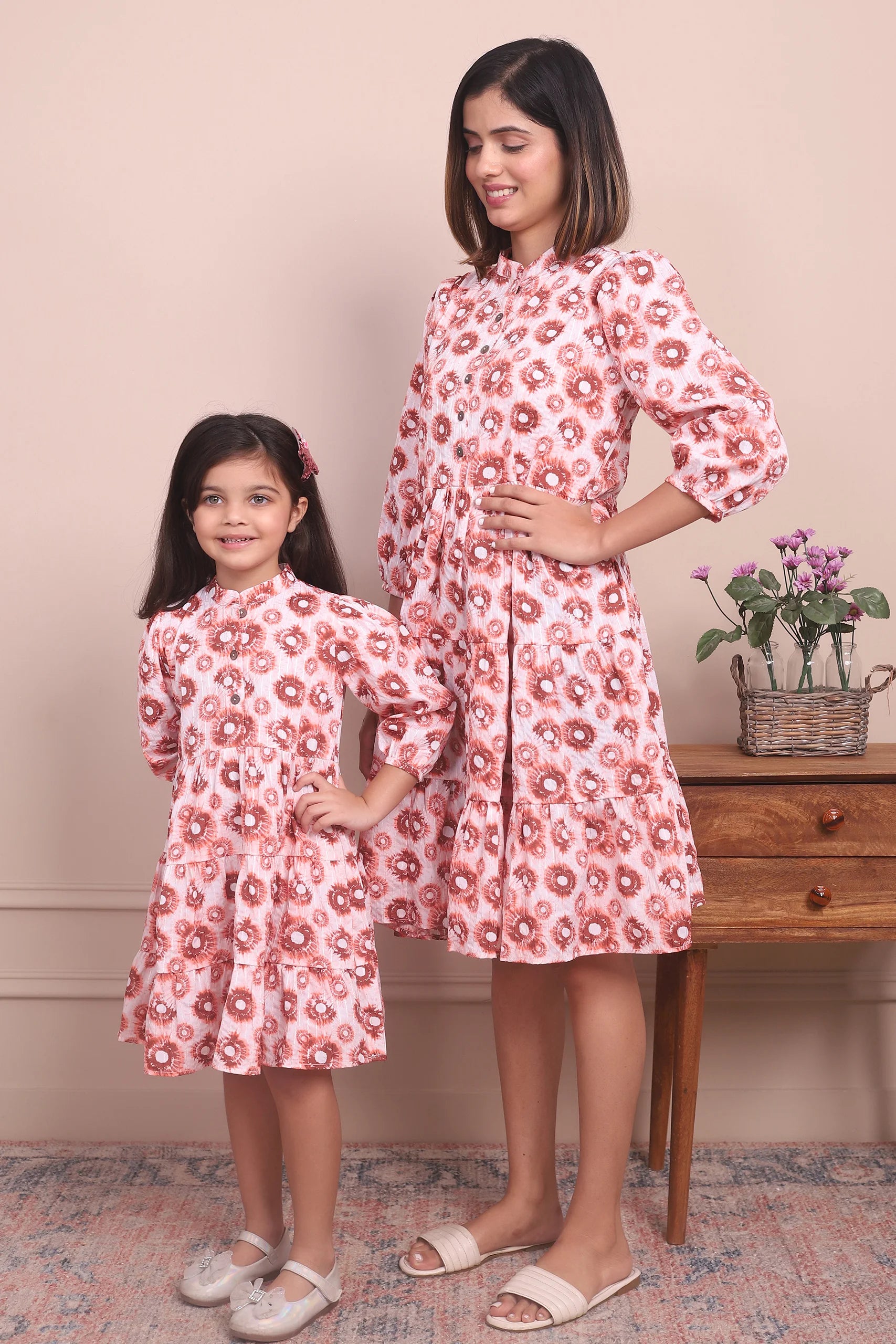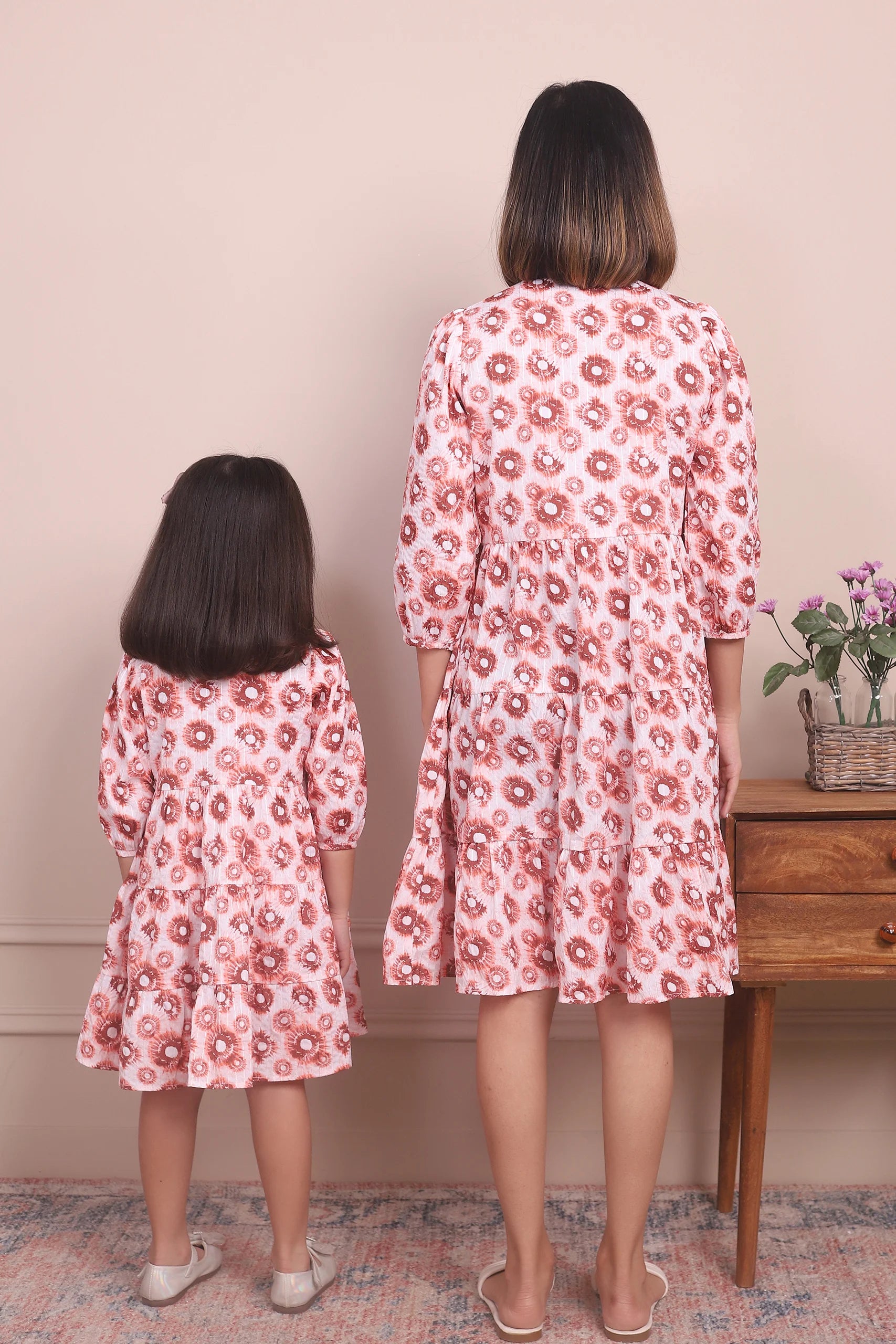Cute and Cozy: Matching Mommy and Me Orange Printed Tiered Dress Duo