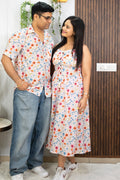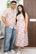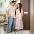 Peach Floral Printed Maxi Dress with Matching Shirt for ( Couple Twin Set )