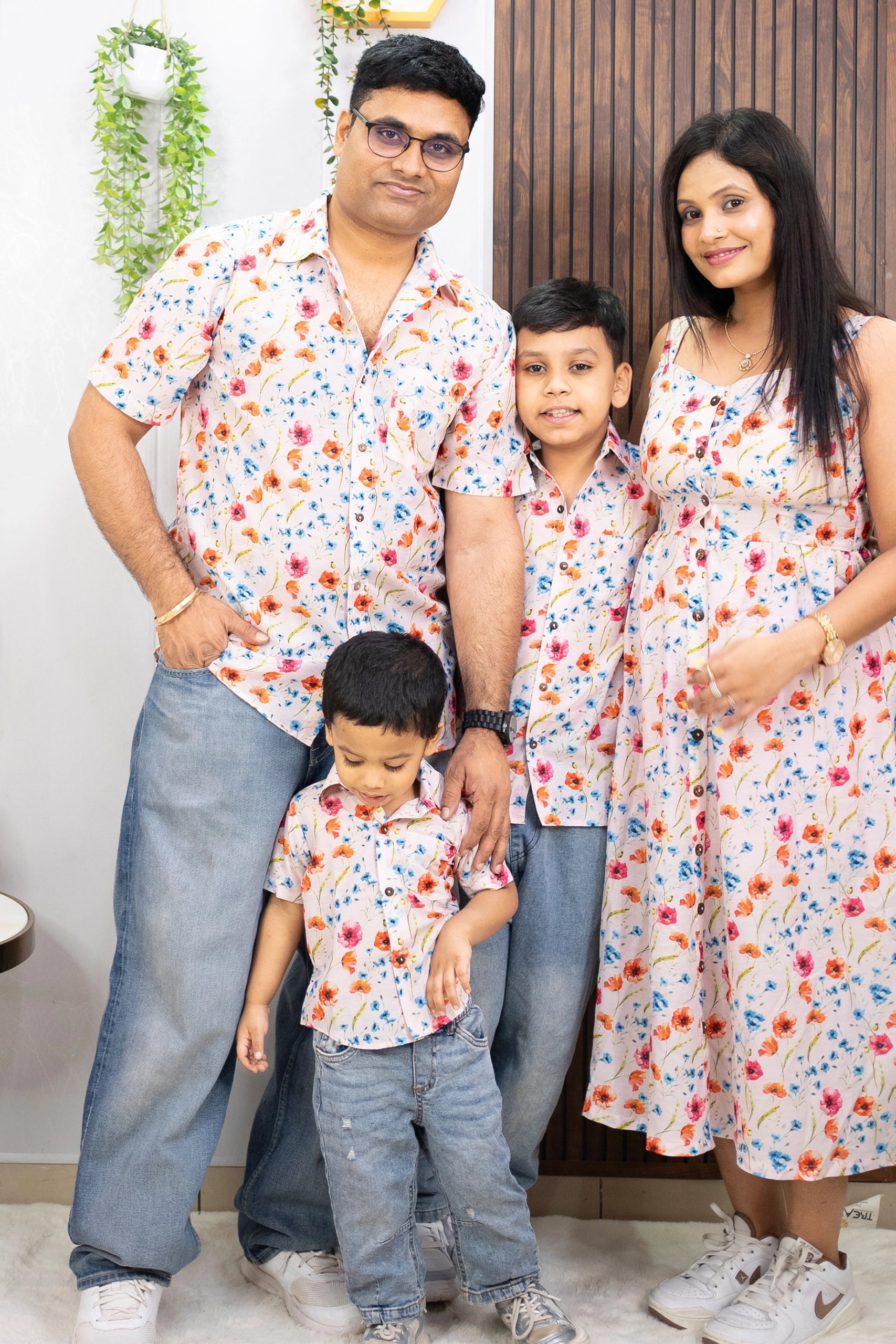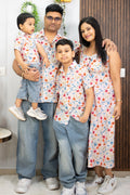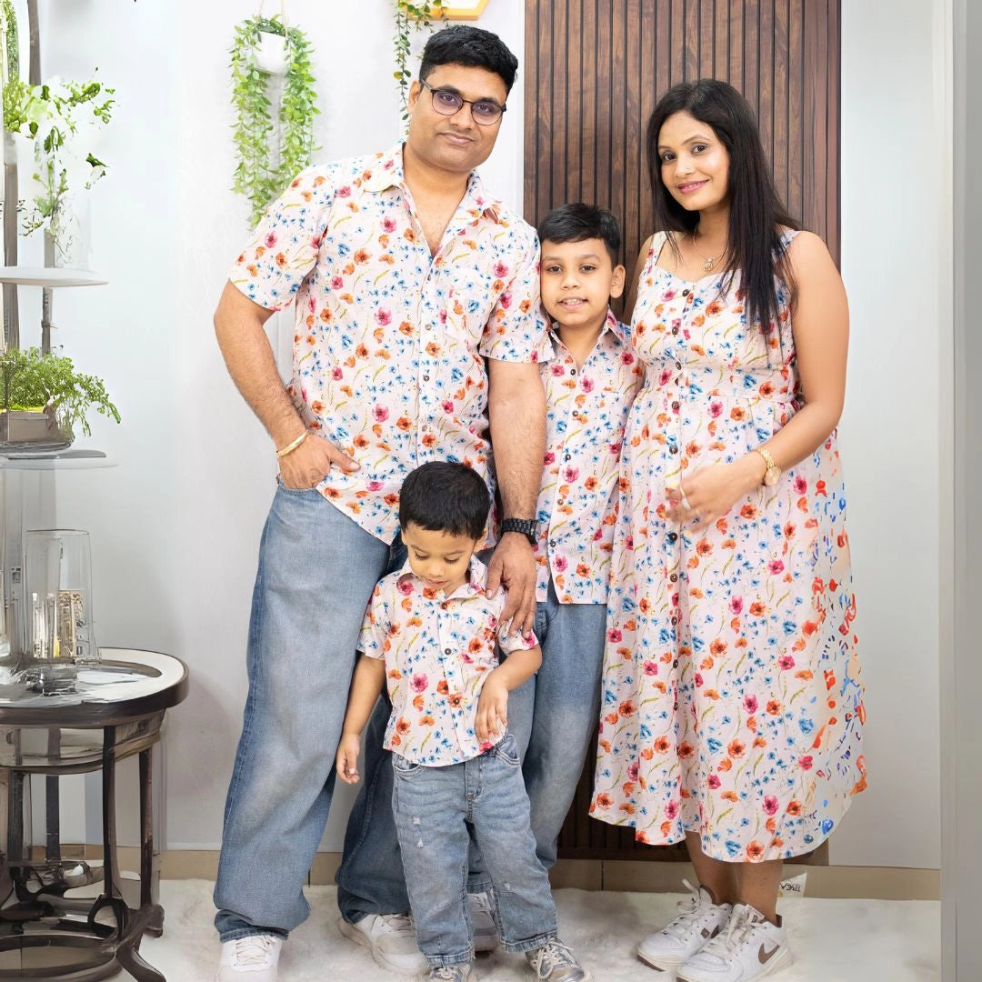 Peach Floral Printed Maxi Dress with Matching Shirt for Men ( Family Twin Set )