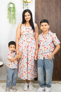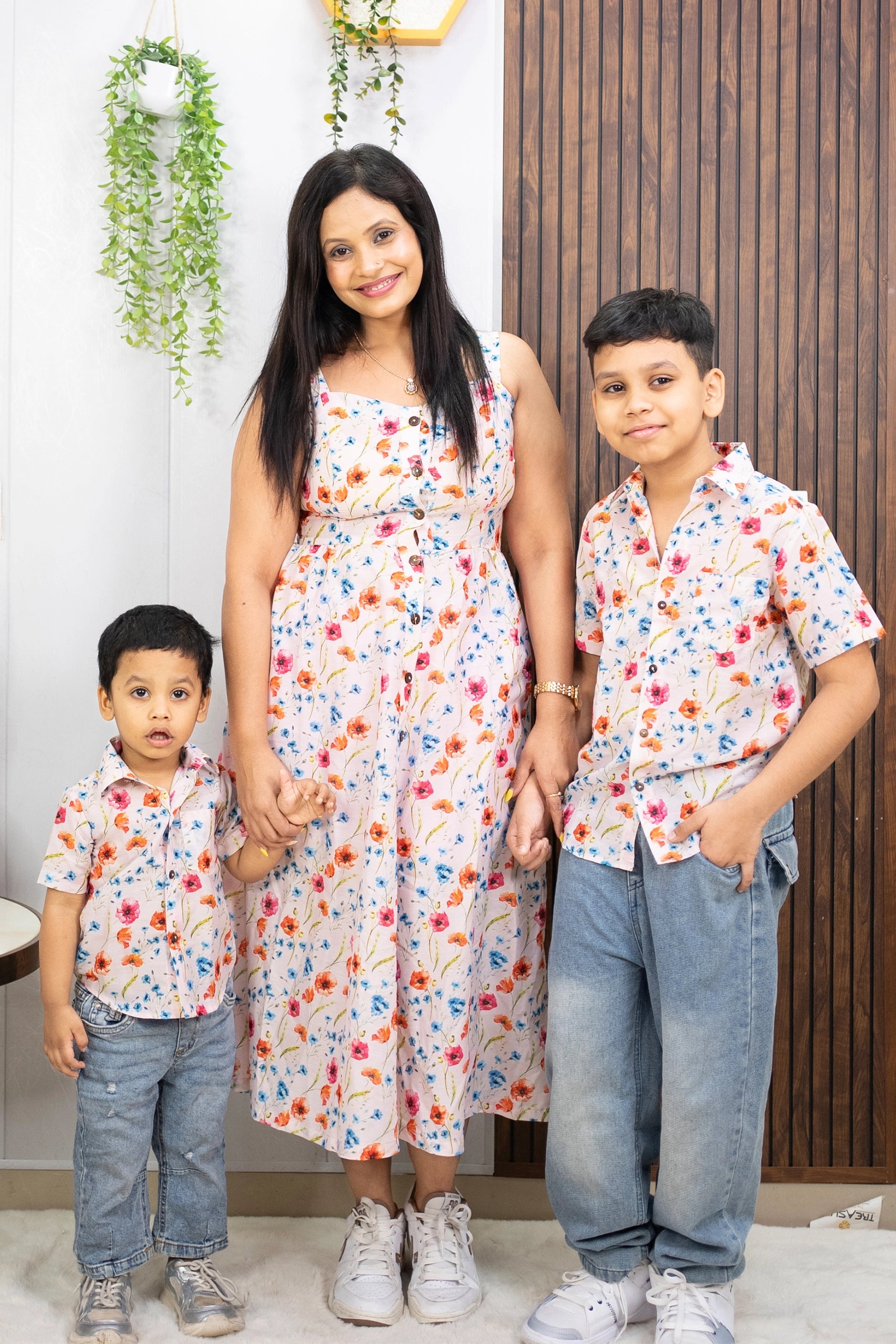 Peach Floral Printed Maxi Dress with Matching Shirt ( Mom and Son Twin Set )