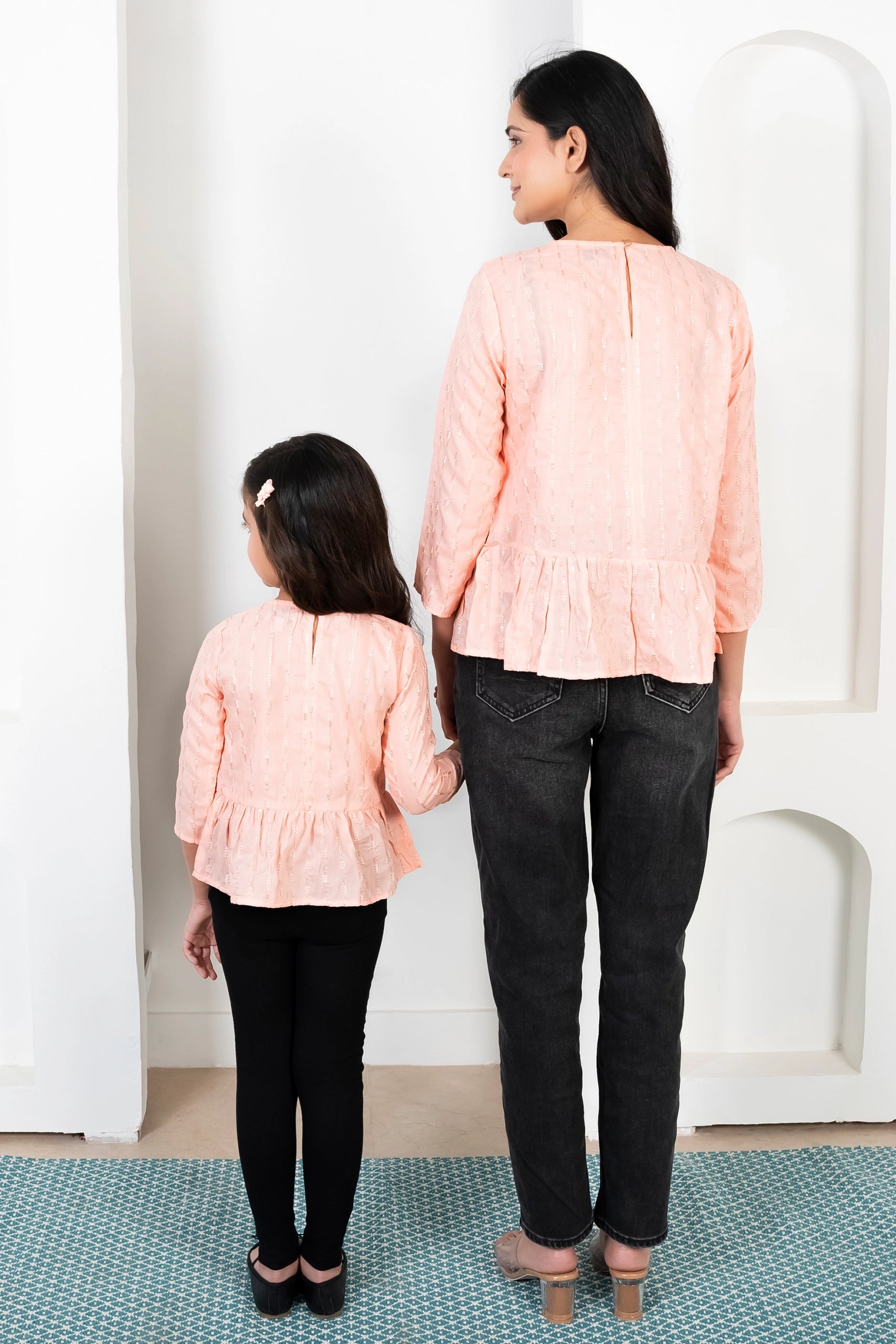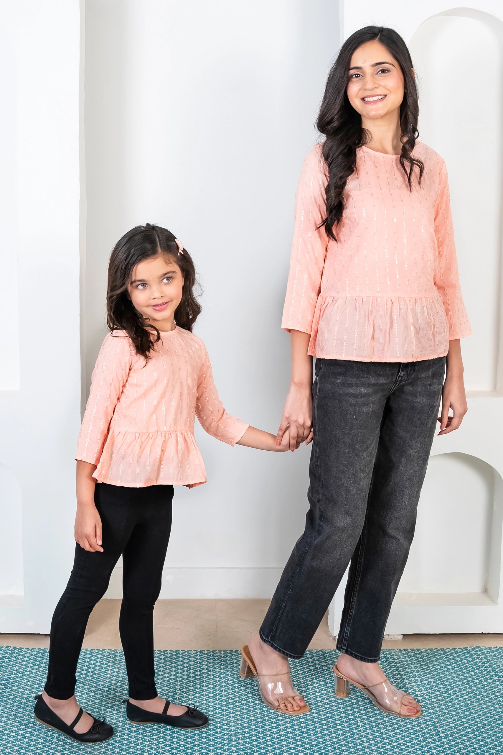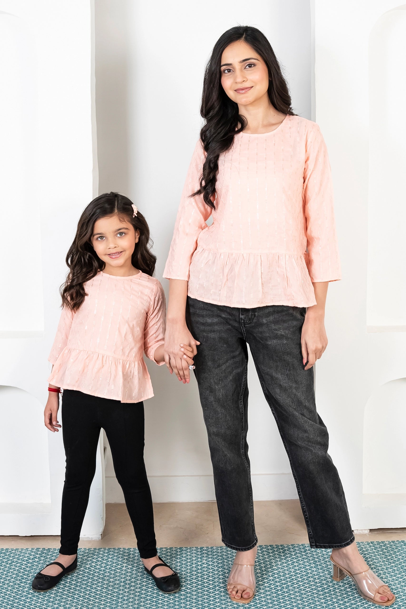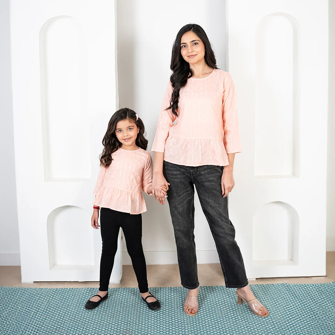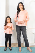Peach Peplum Top Mom and Daughter Twin Set