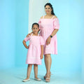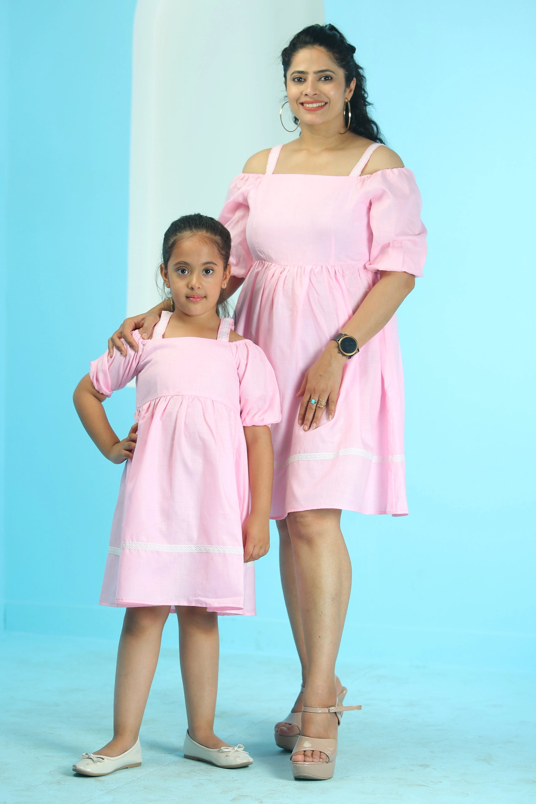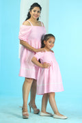 Powder Pink Ruby Cotton Olivia Off Shoulder Dress For Mom And Daughter Set