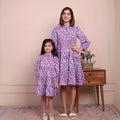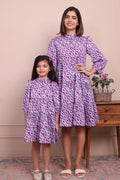 Twin Style Statements: Purple Cotton Collar Dresses for Mom and Daughter
