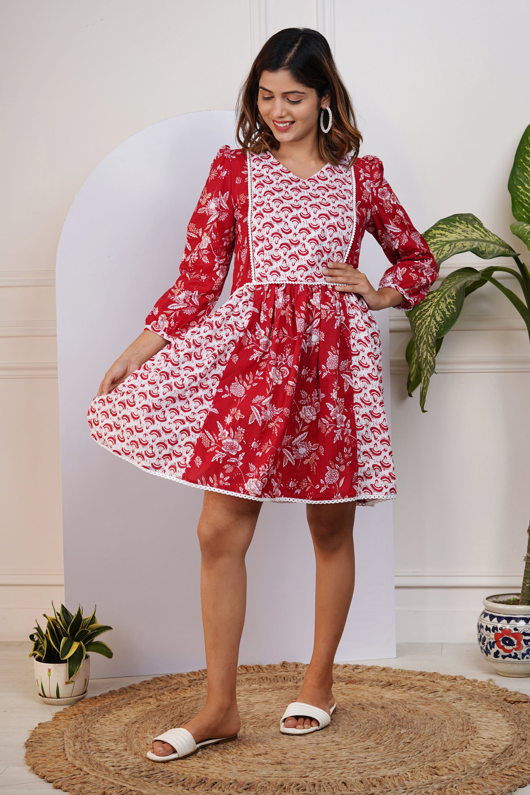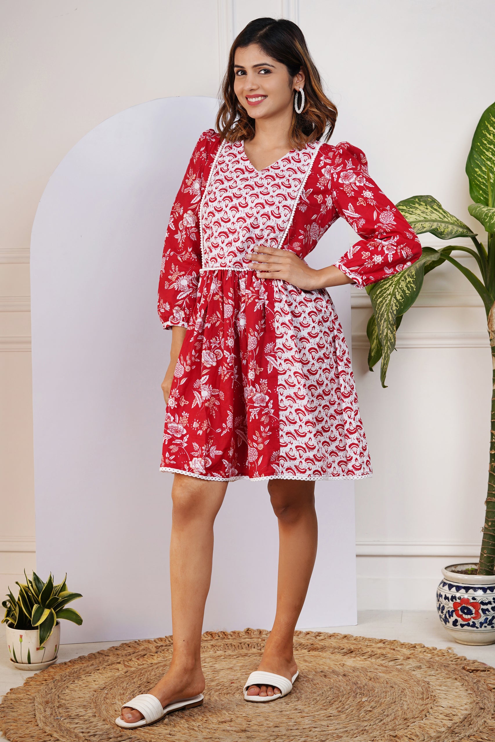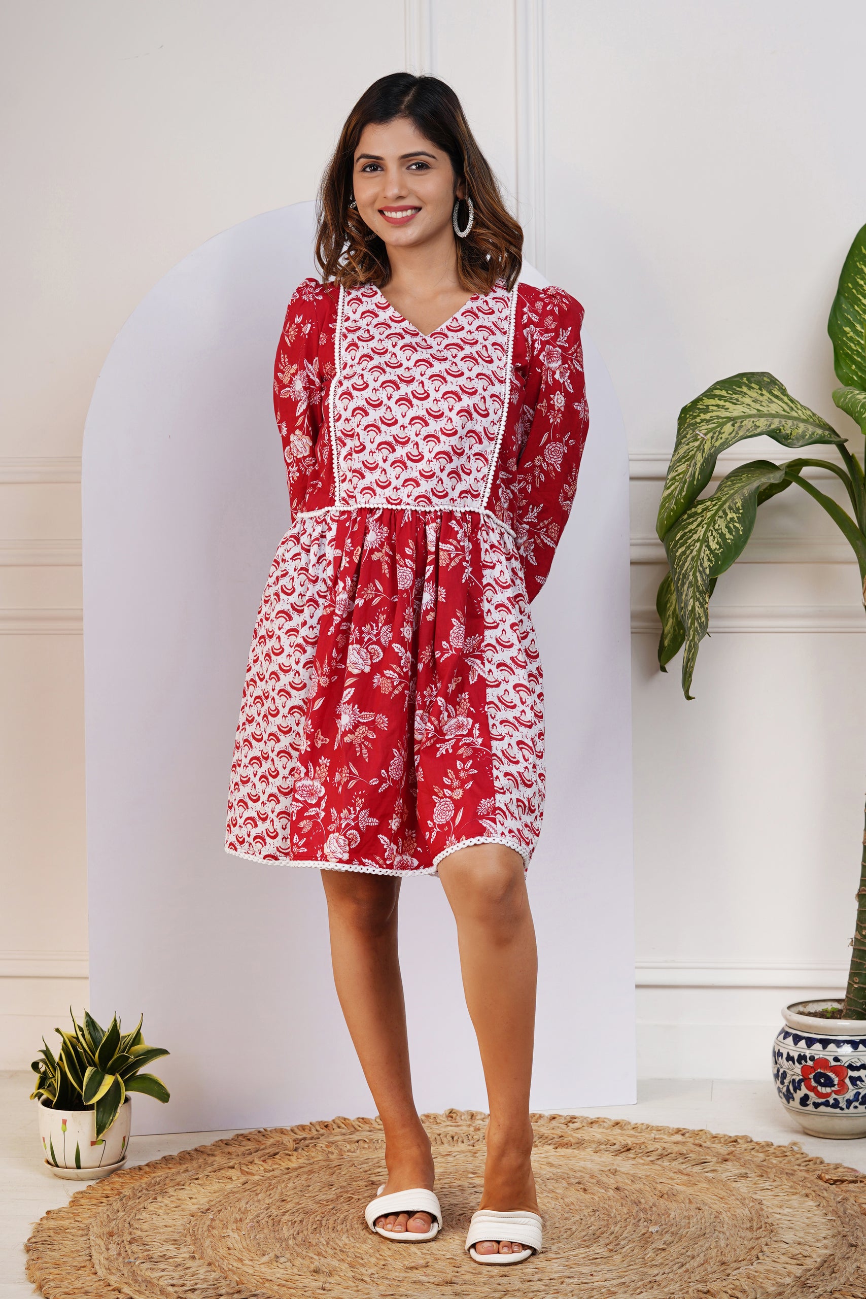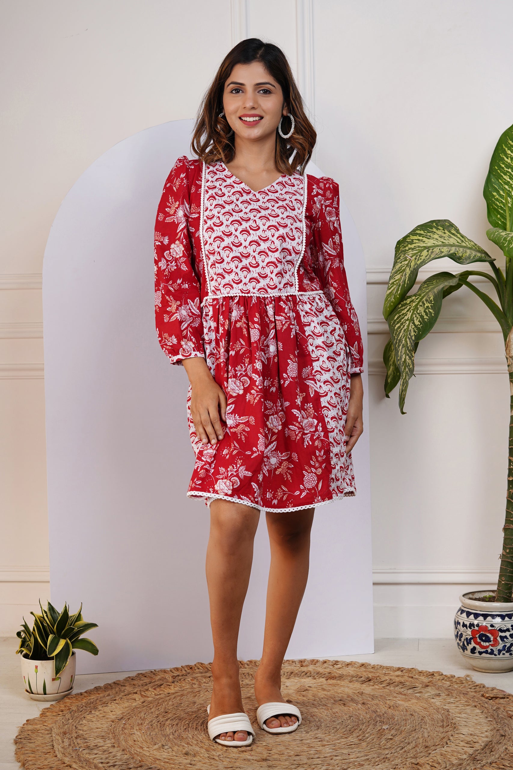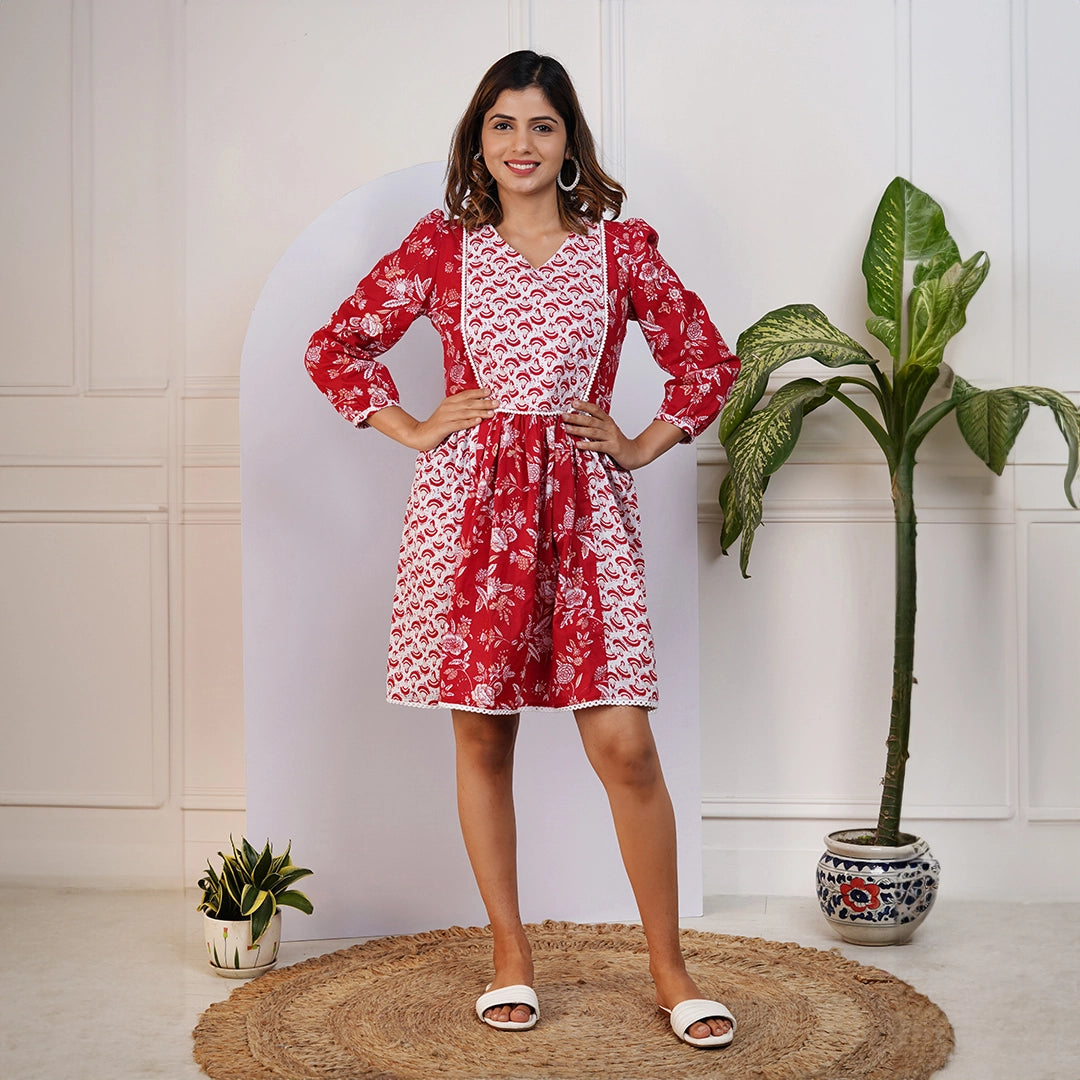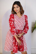 Red and White Printed Dress for Mom