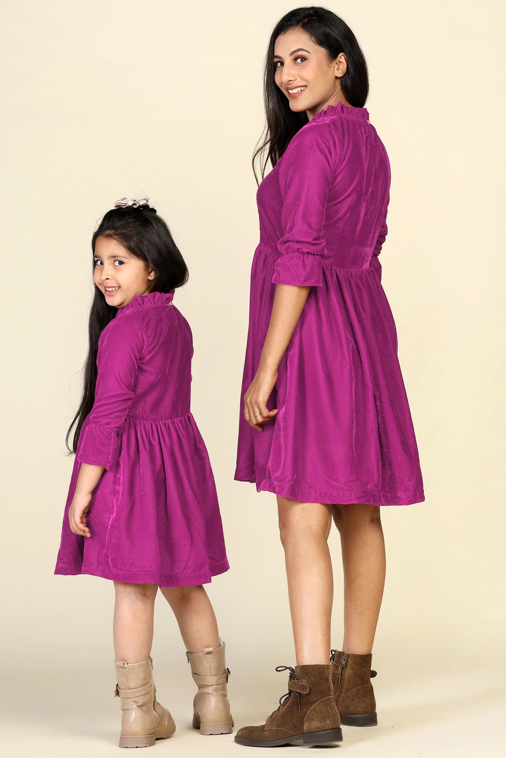 Fuchsia Samaira Velvet Dresses for Mom & Daughter