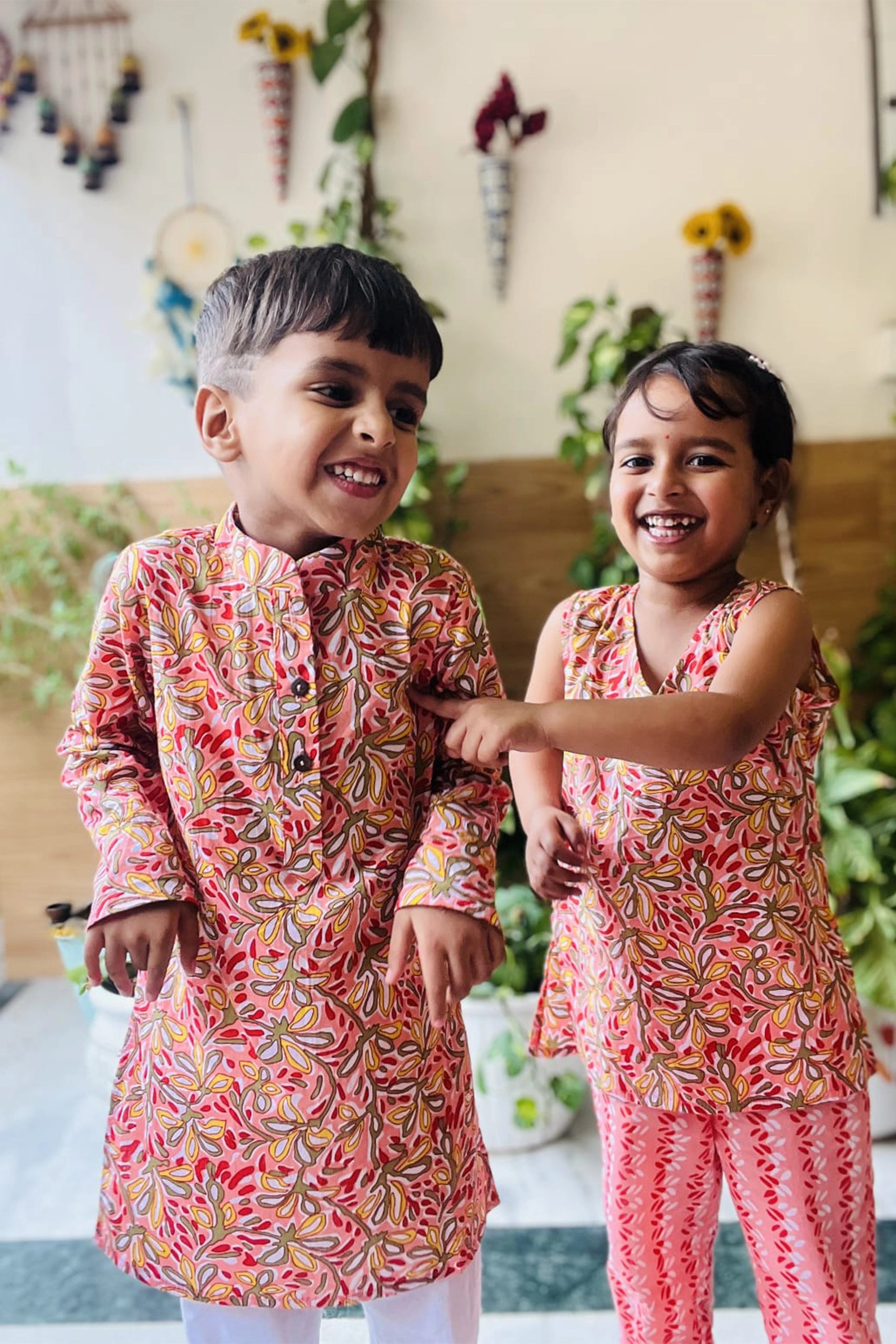 Rouge Kurta Set For Brother And Sister