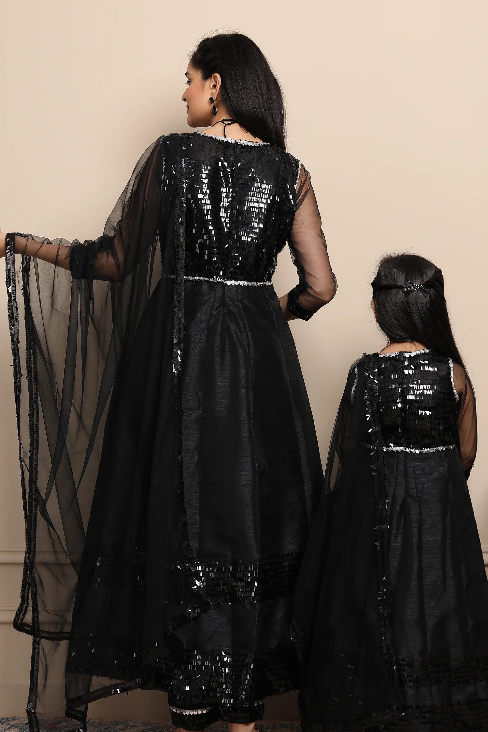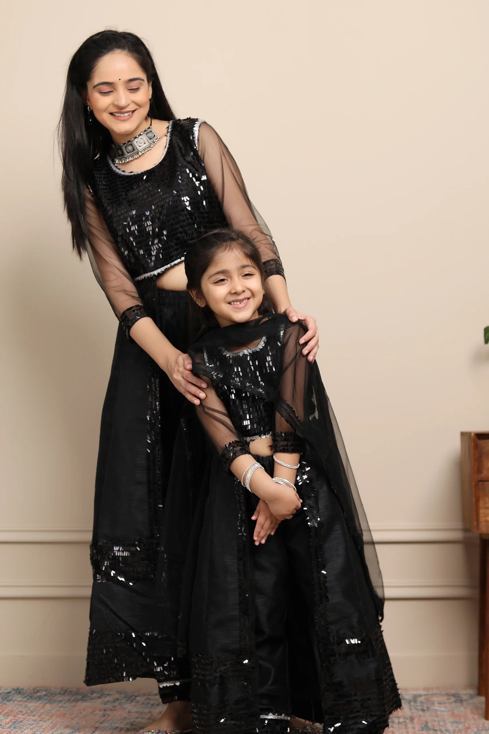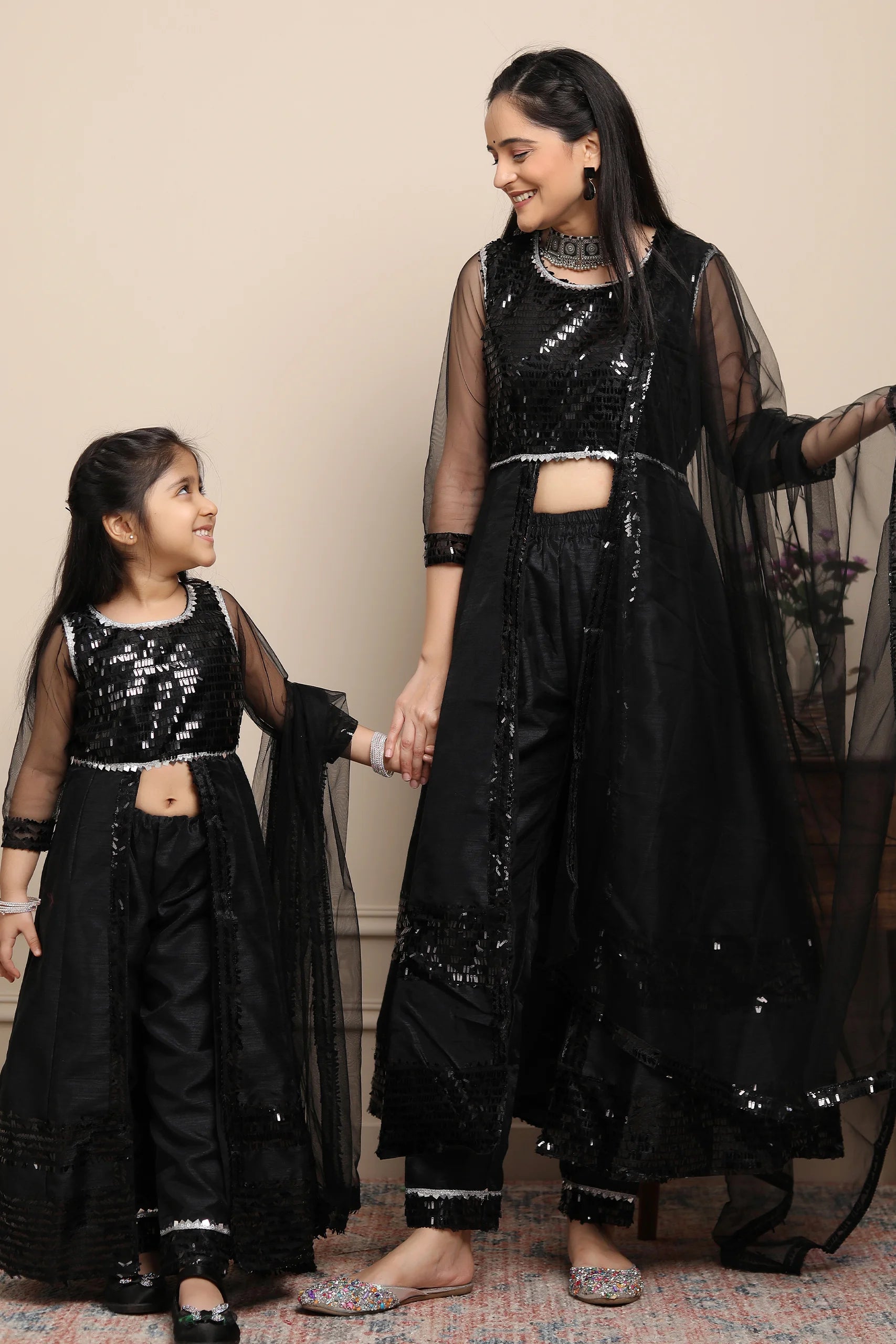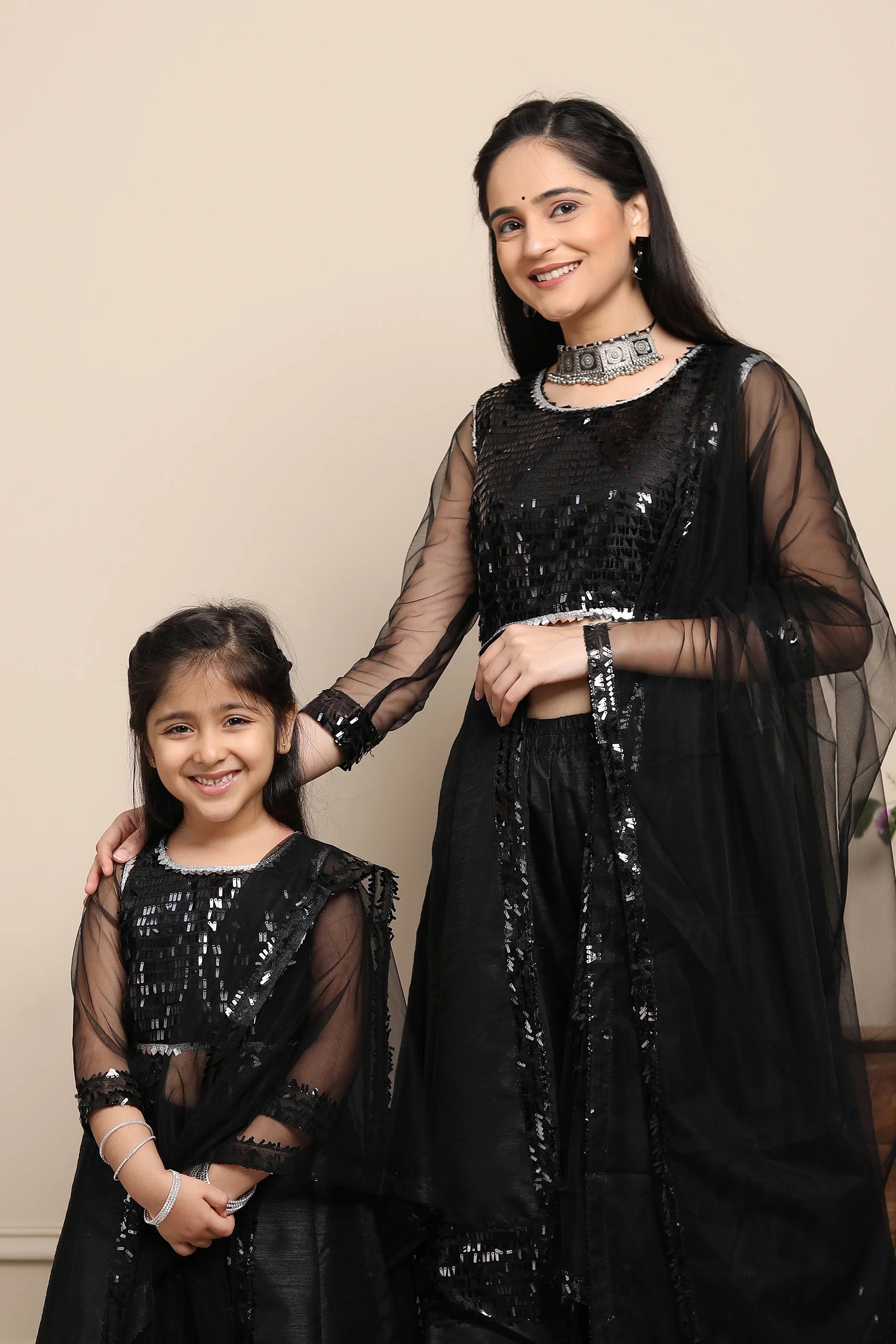 Sparkling Shining Black Sequin Aline Gown Set for Mom and Daughter