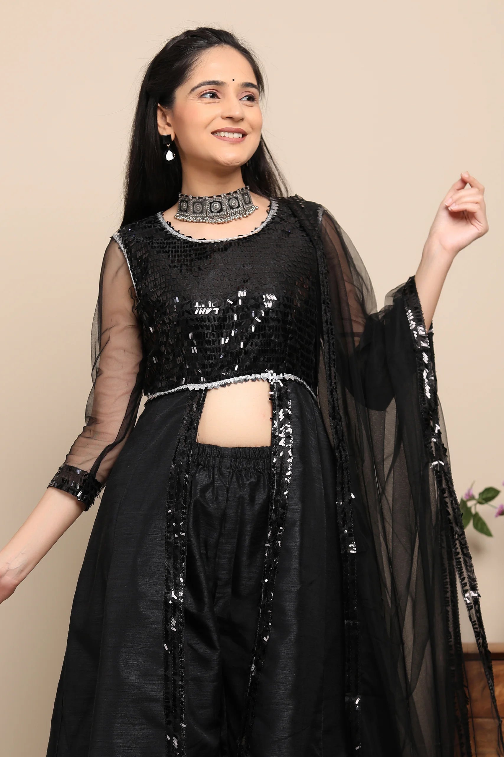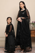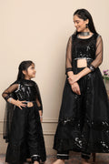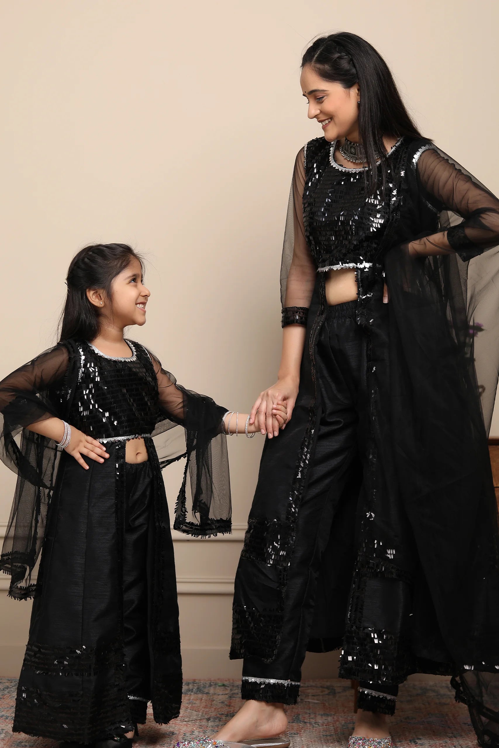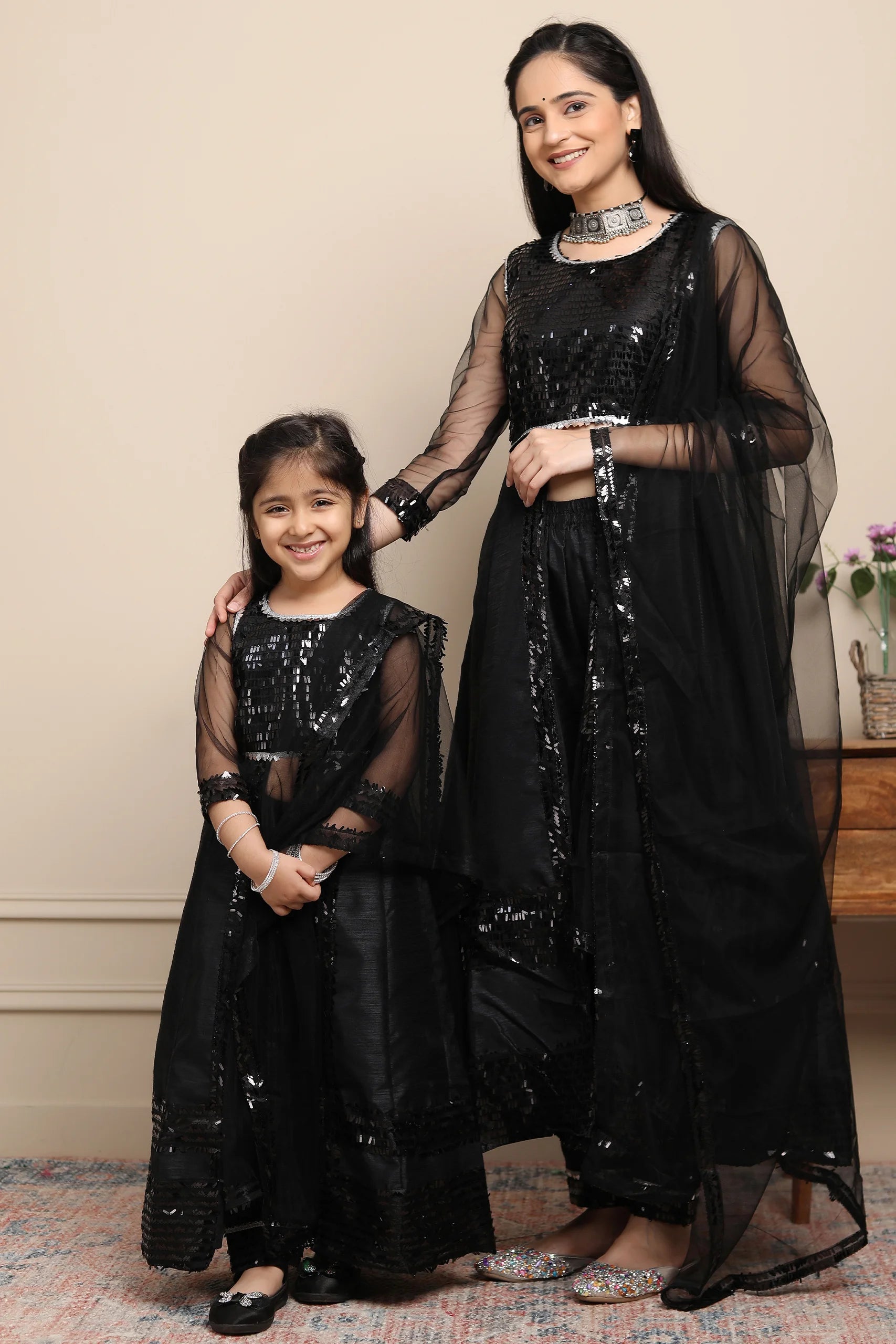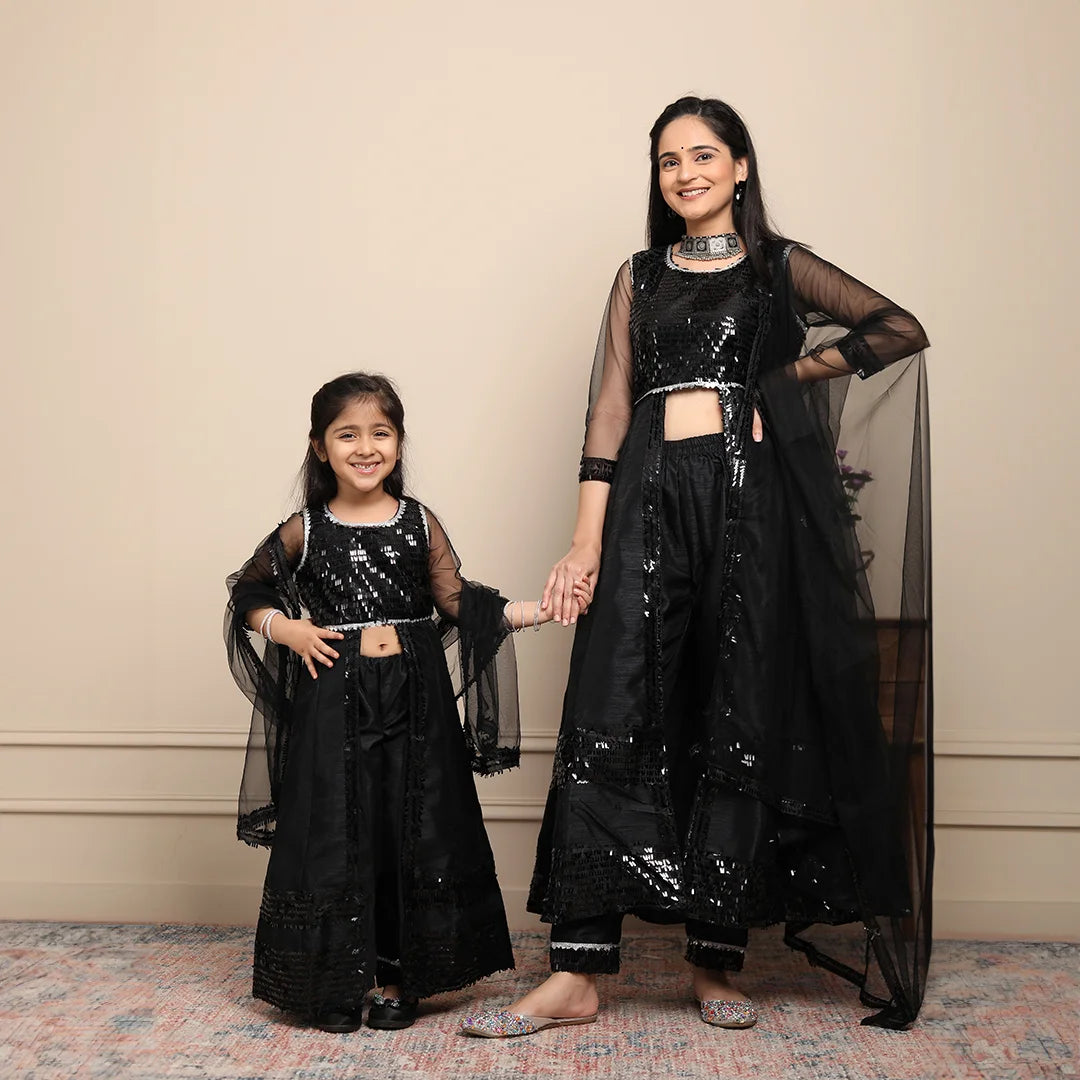 Sparkling Shining Black Sequin Aline Gown Set for Mom and Daughter
