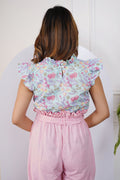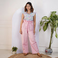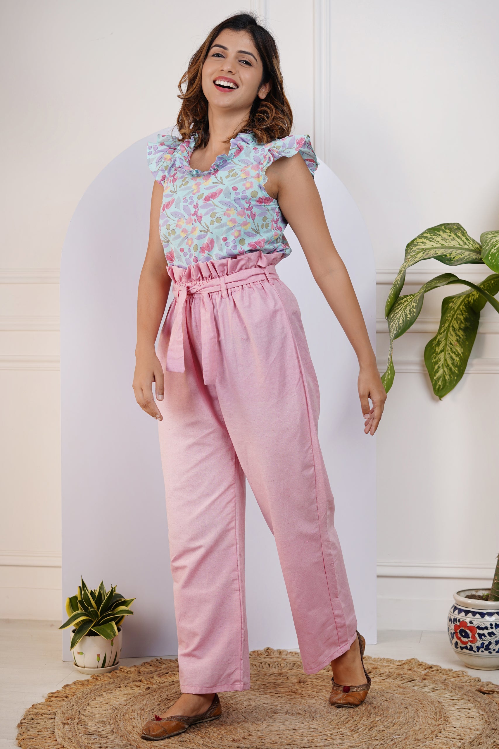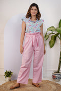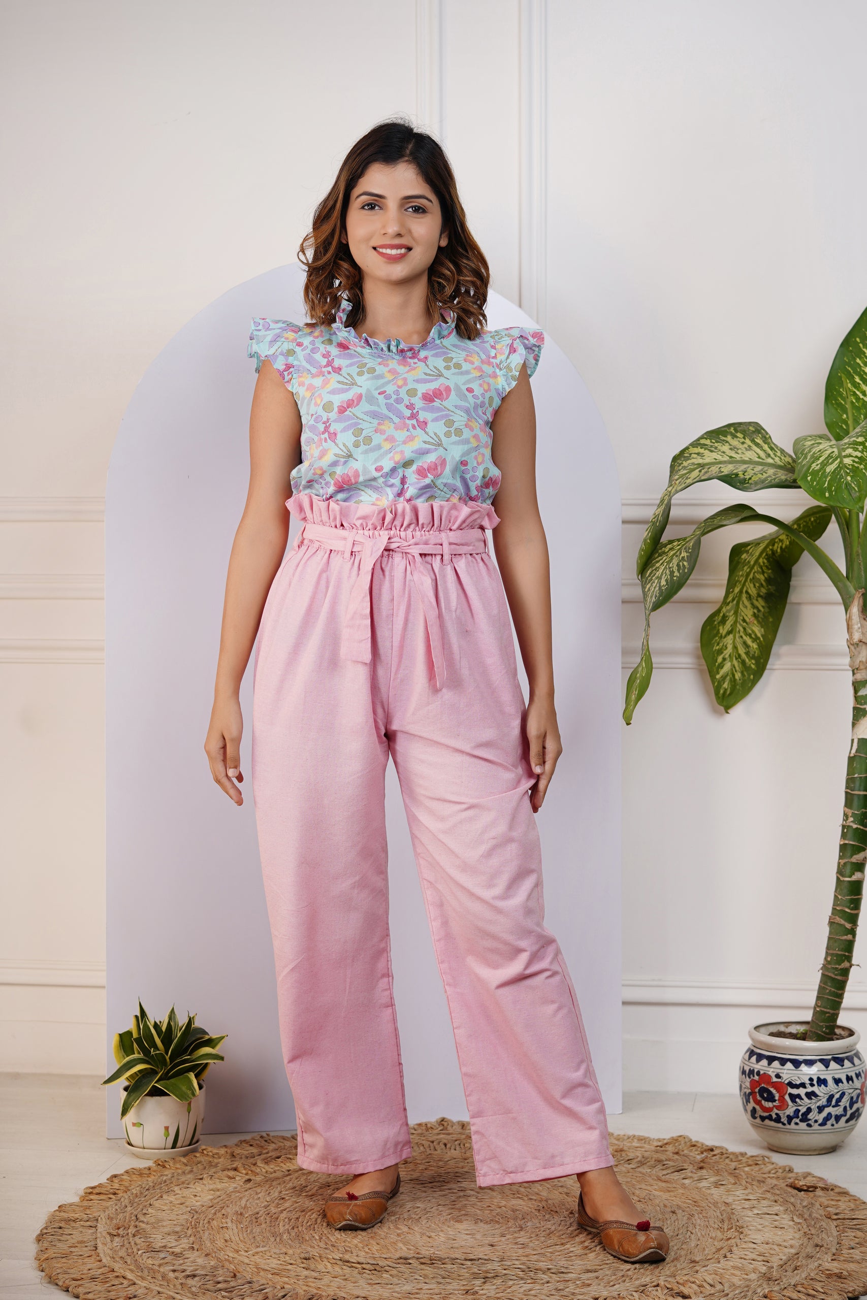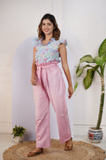 Sky Blue Floral Printed Top with Pink Pants for Mom