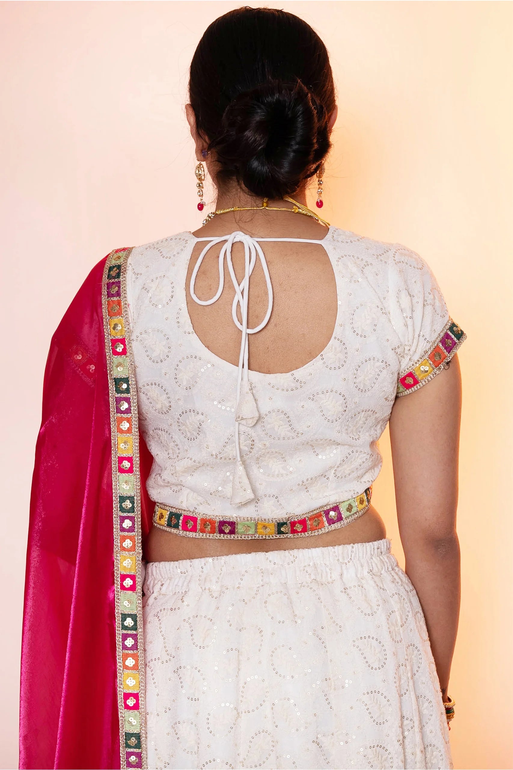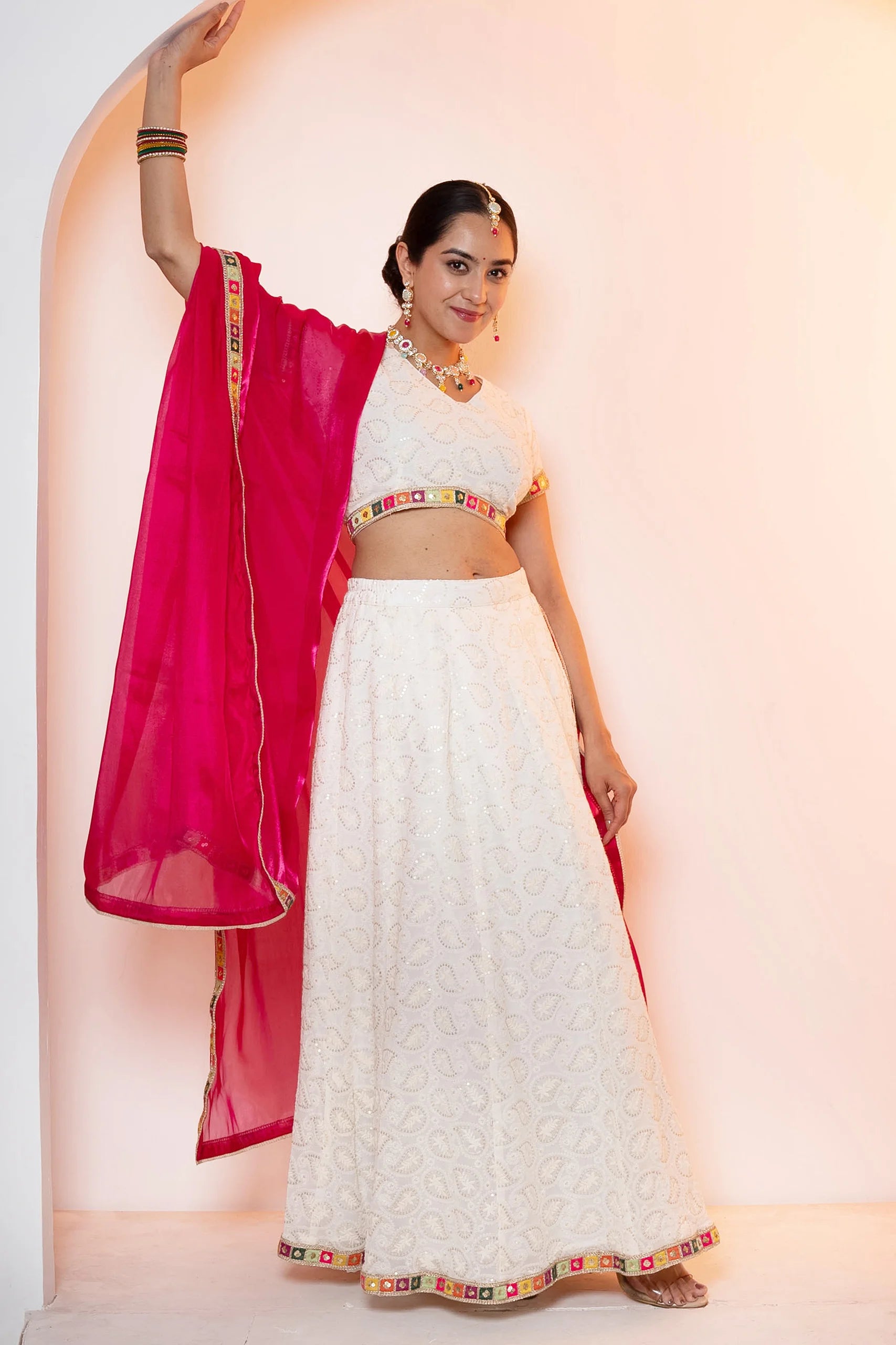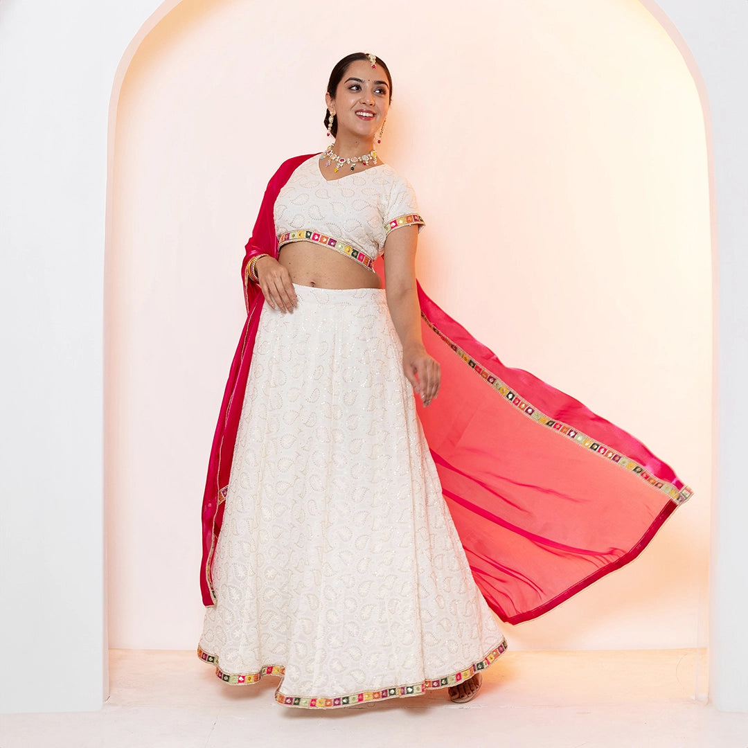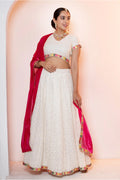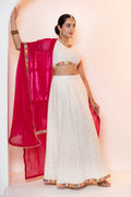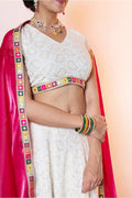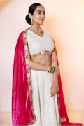 Sparkling White Emroidered Lehenga Choli with Pink Dupatta