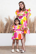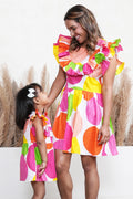 Summer Splash Ruffle Dress For Mom And Daughter