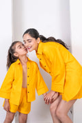Matching Outfits for Mother and Daughter: Mustard Cotton Shorts and Shirt Co-Ord Set, Perfect for Summer