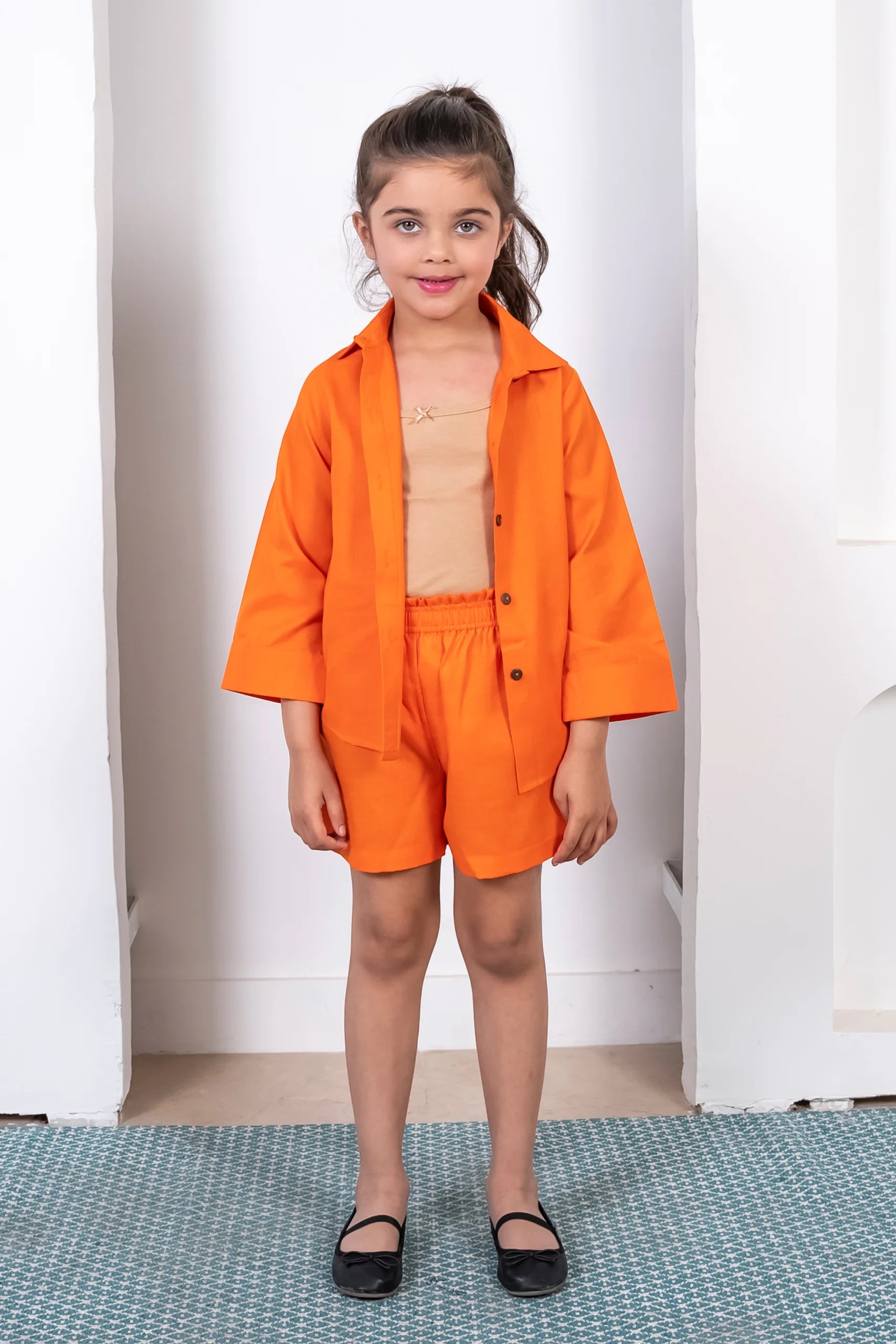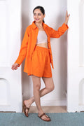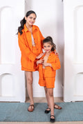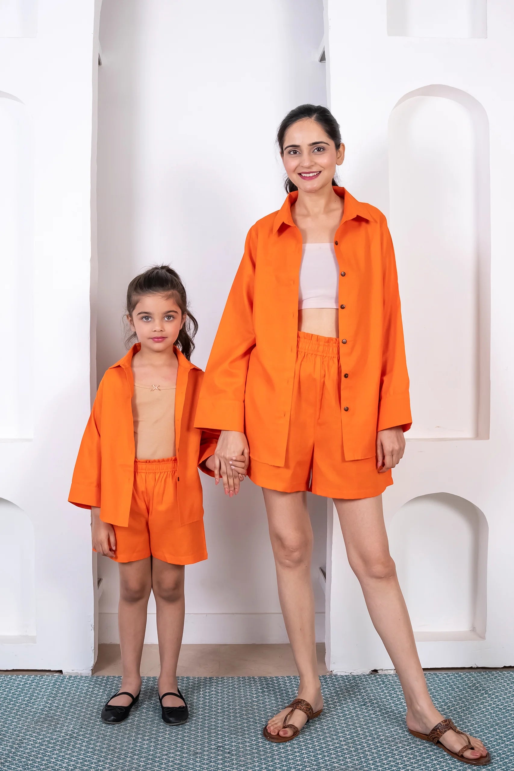 Vacation-Ready Matching Outfits: Mom and Daughter Orange Cotton Co-Ord Set