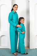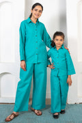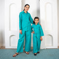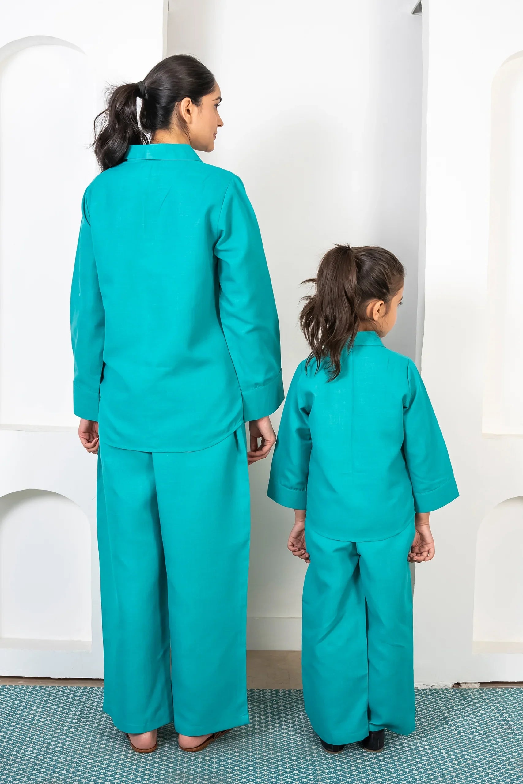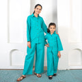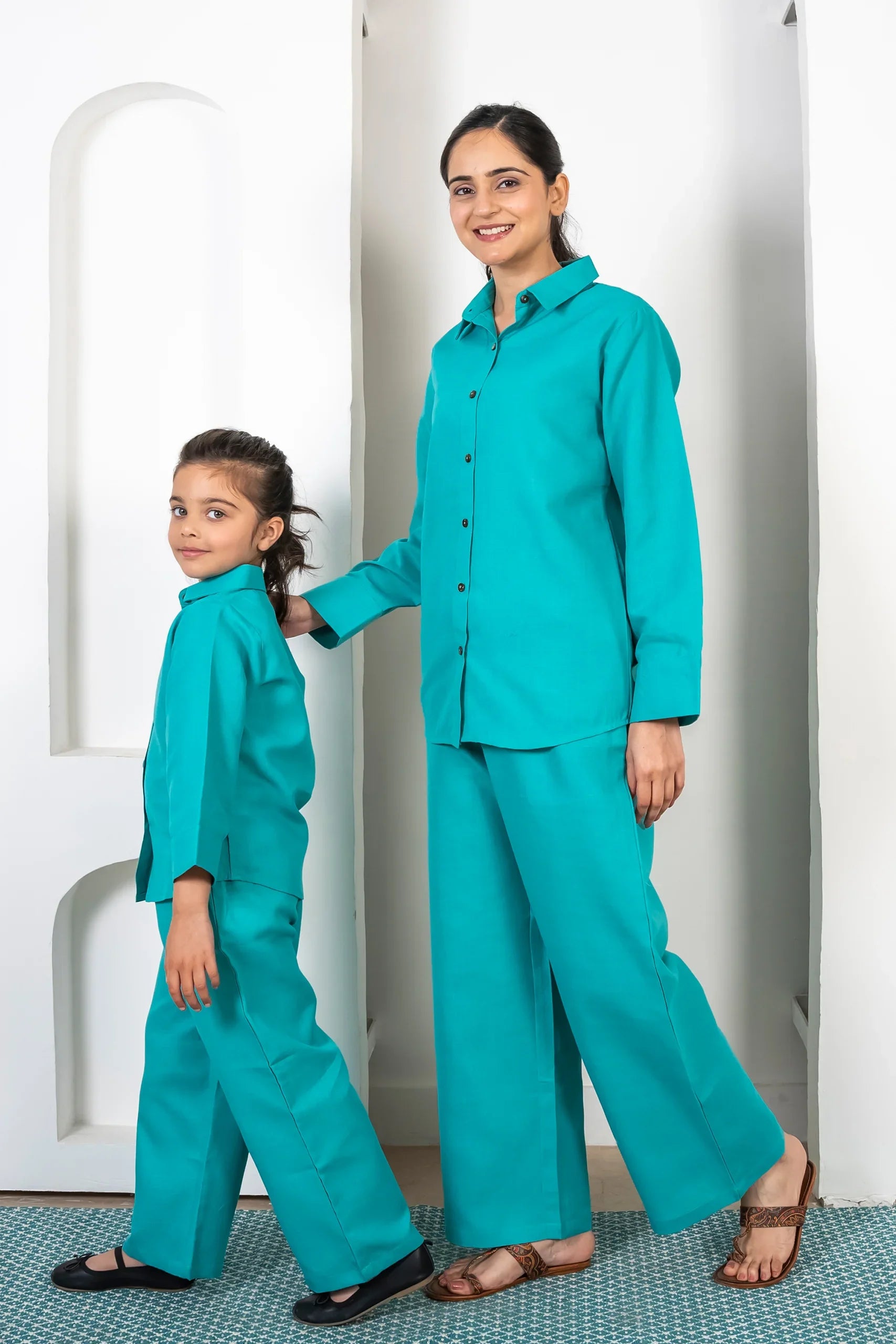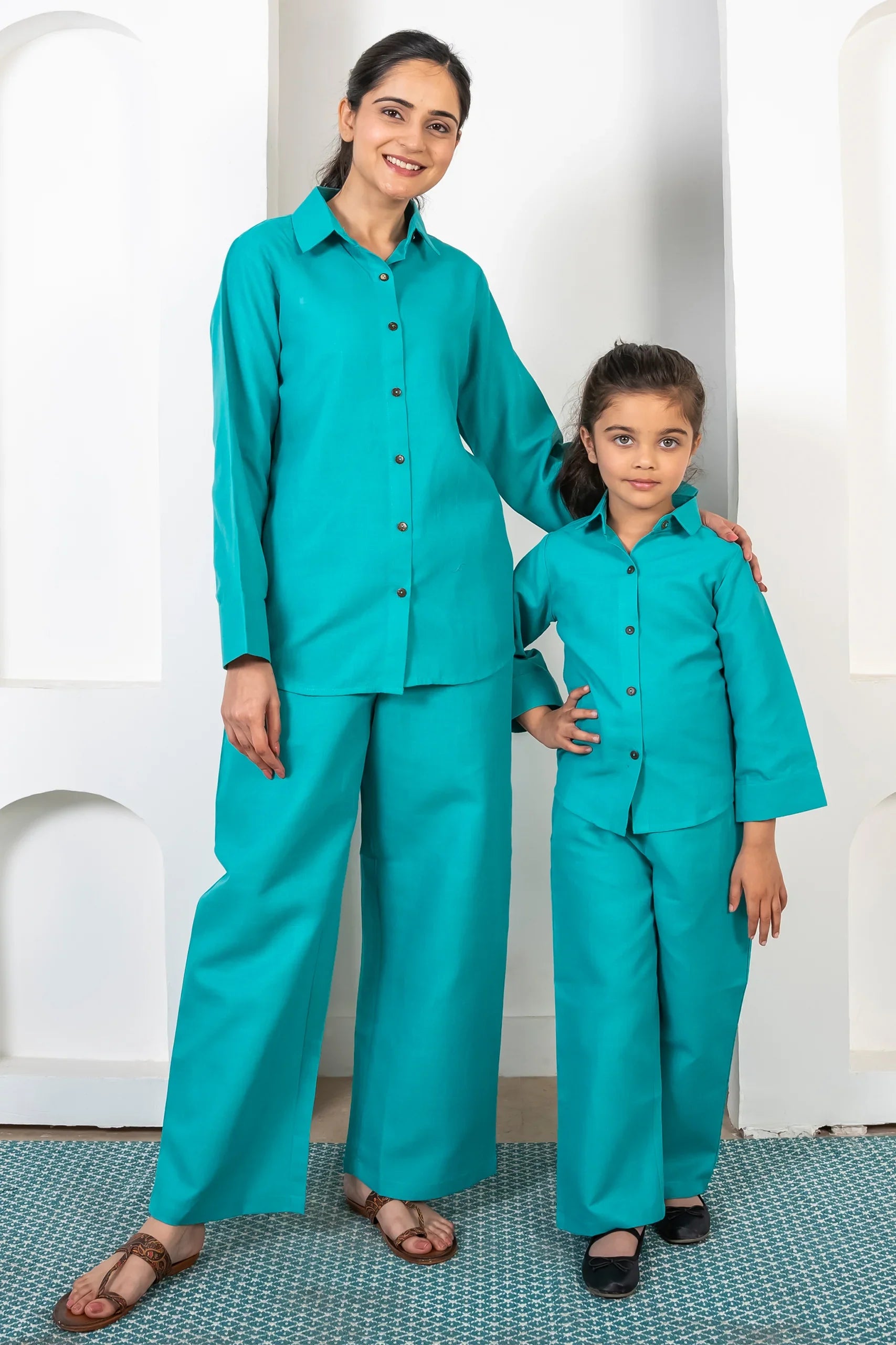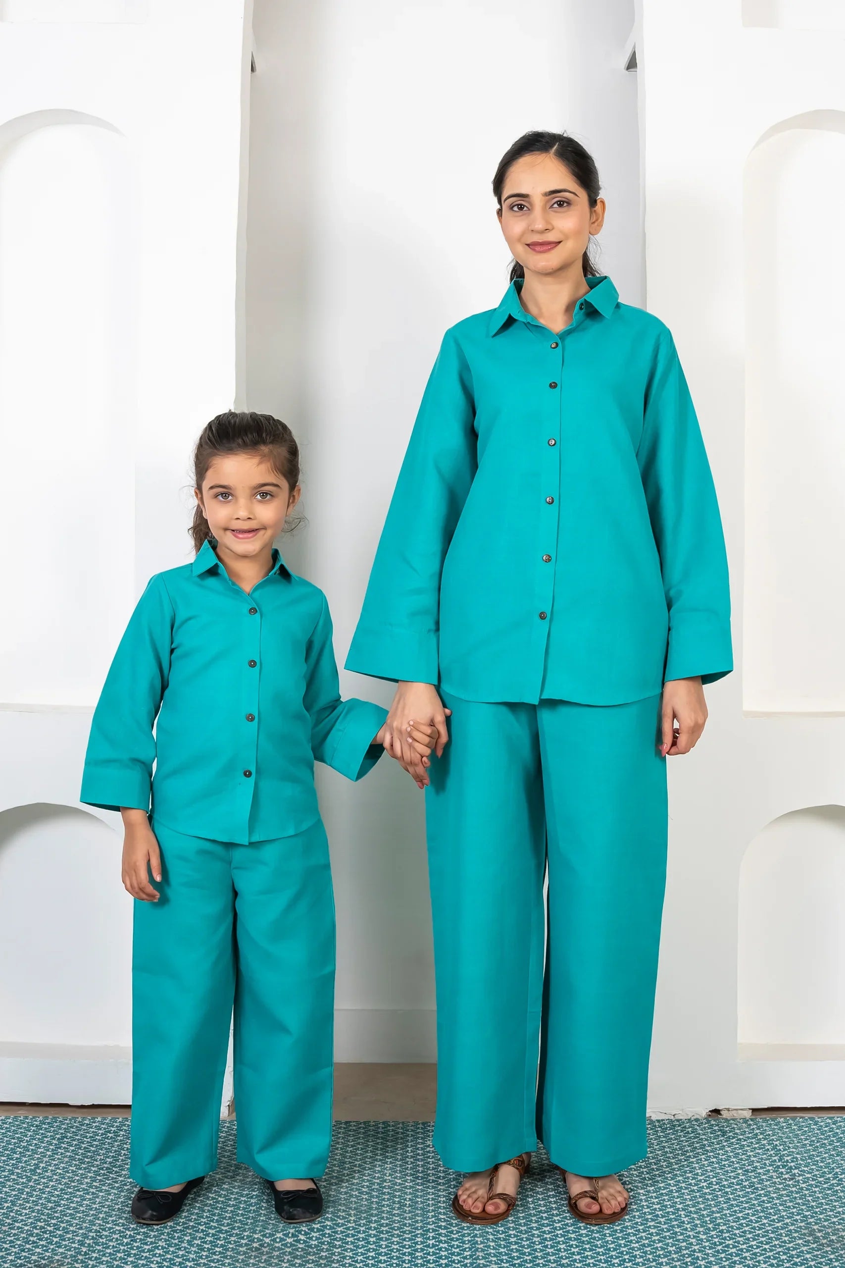 Comfy Cotton Matching Outfits - Mom & Daughter Teal Blue Co-Ord Set