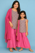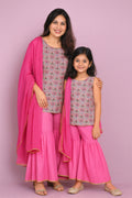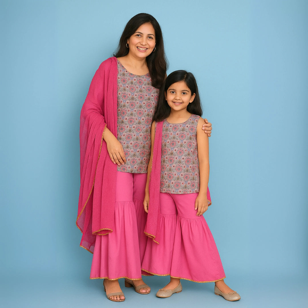 Traditional Printed Kurti & Sharara Set For Mom And Daughter Set
