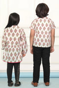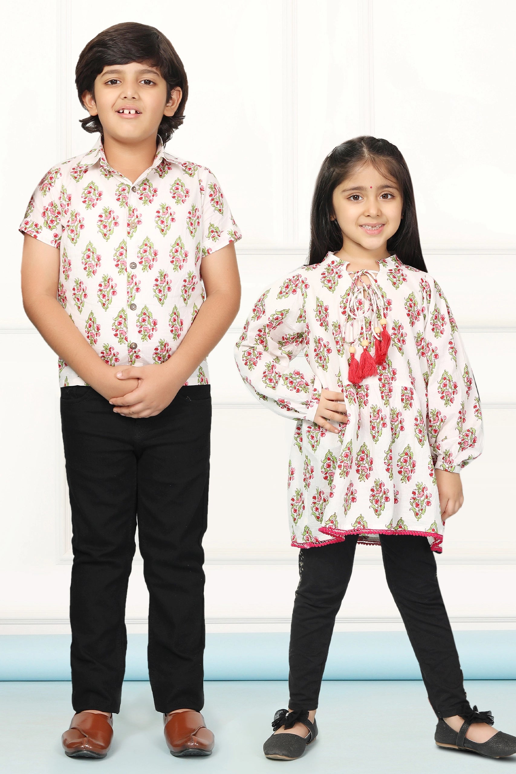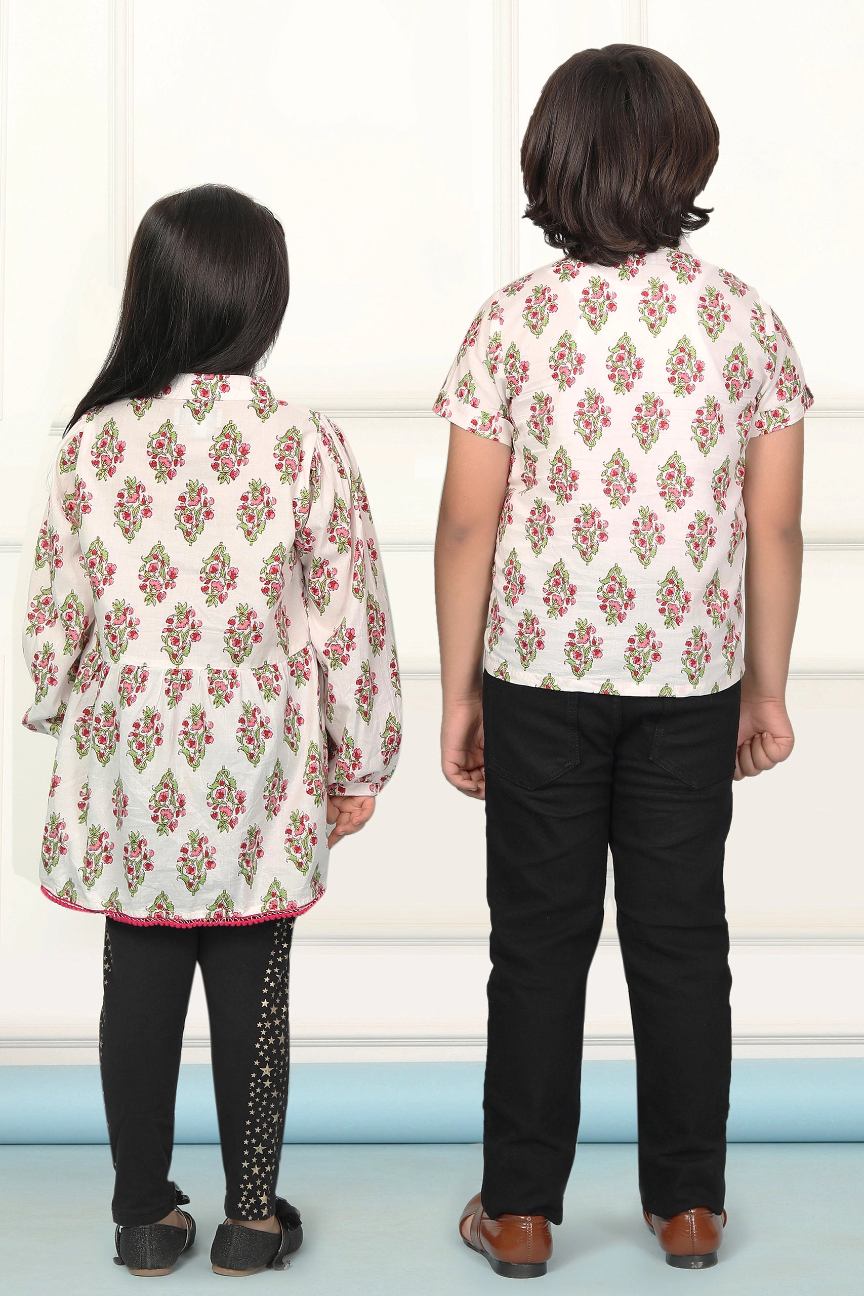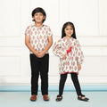 White and Red Block Printed Tunic with Matching Shirt Brother and Sister Twin Set
