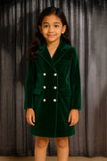 Green Velvet Double-Breasted Blazer Mini Dress For Kid