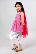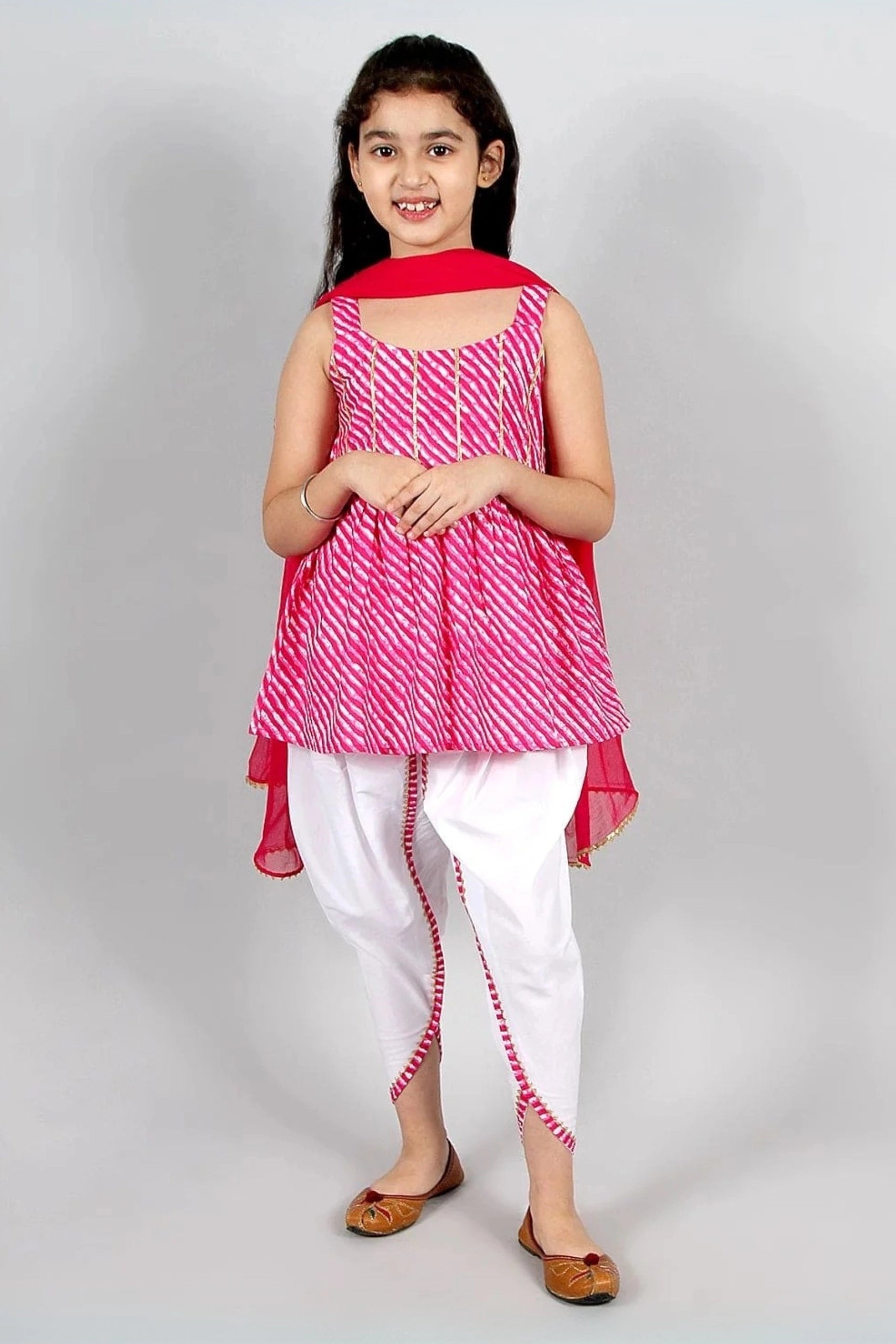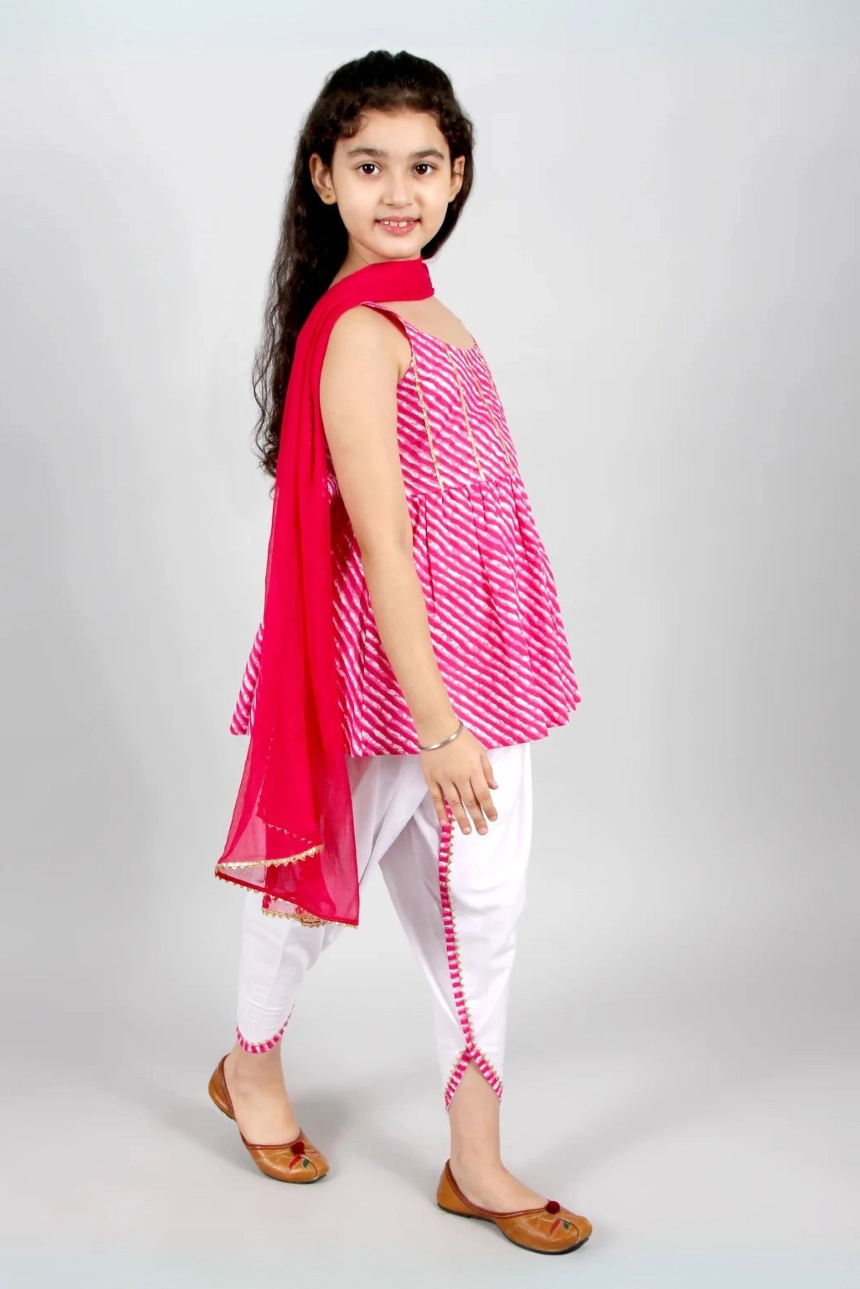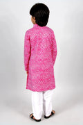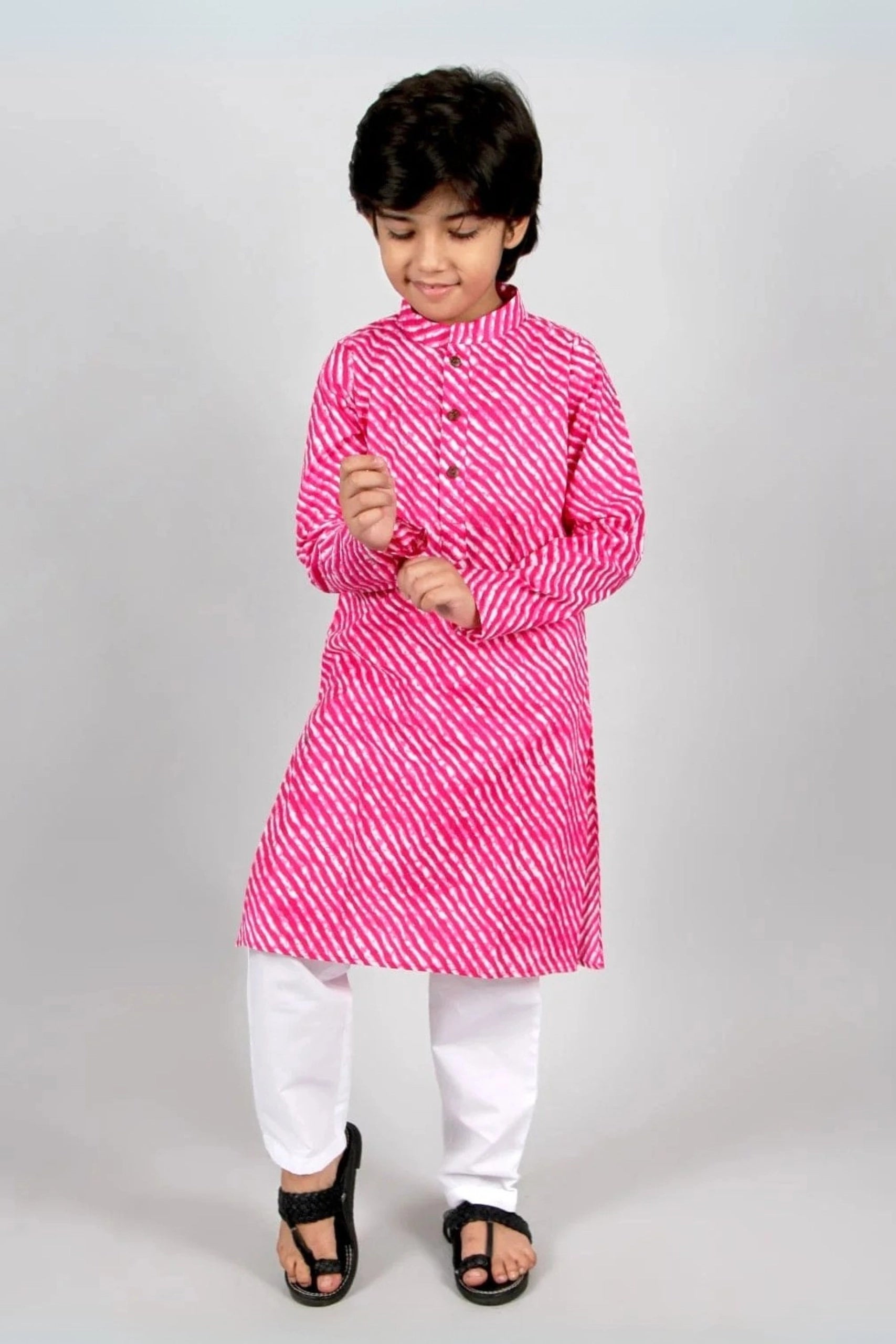 Fuchsia Leheriya Kurta-Pyjama With Kurta - Dhoti For Brother& Sister Set