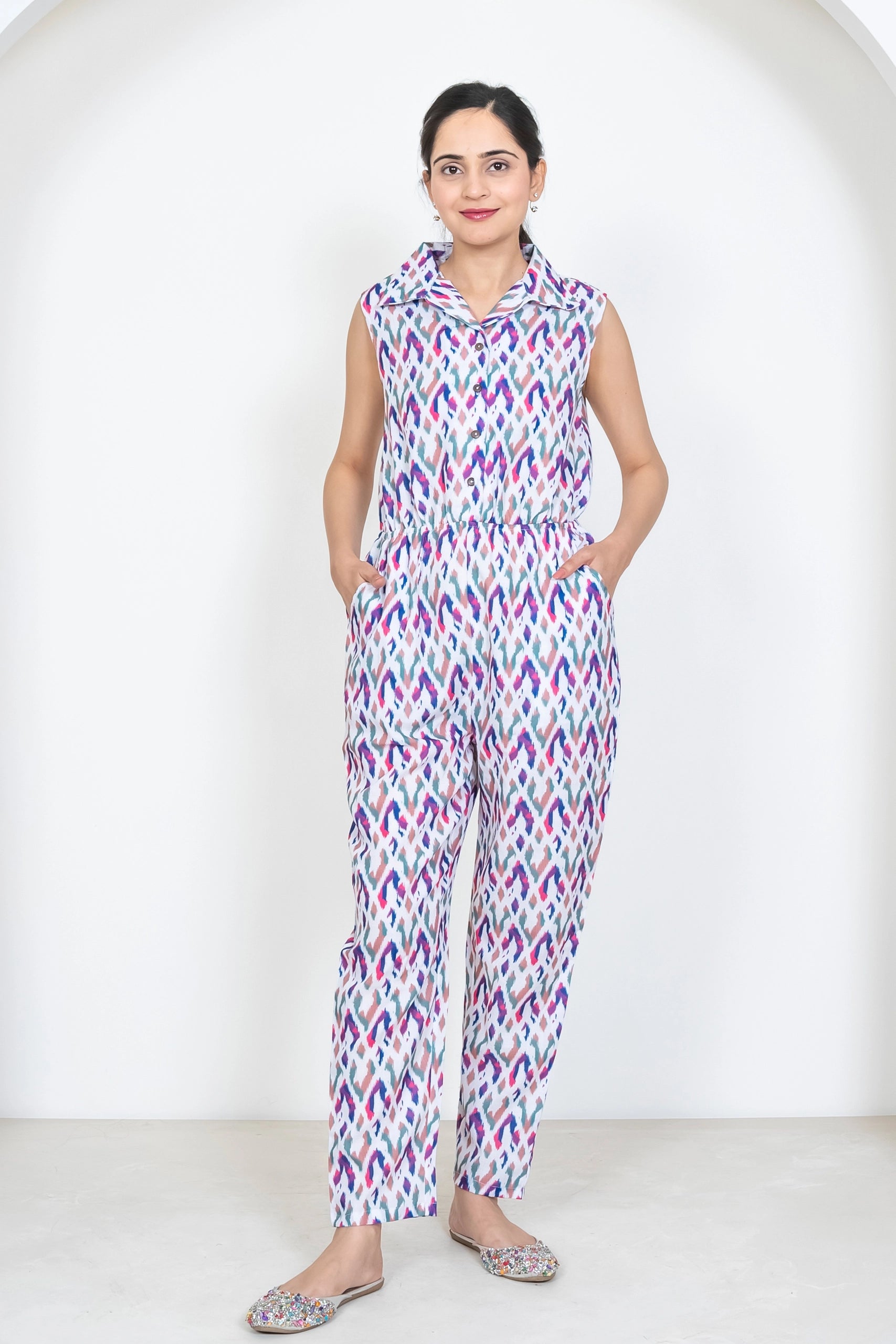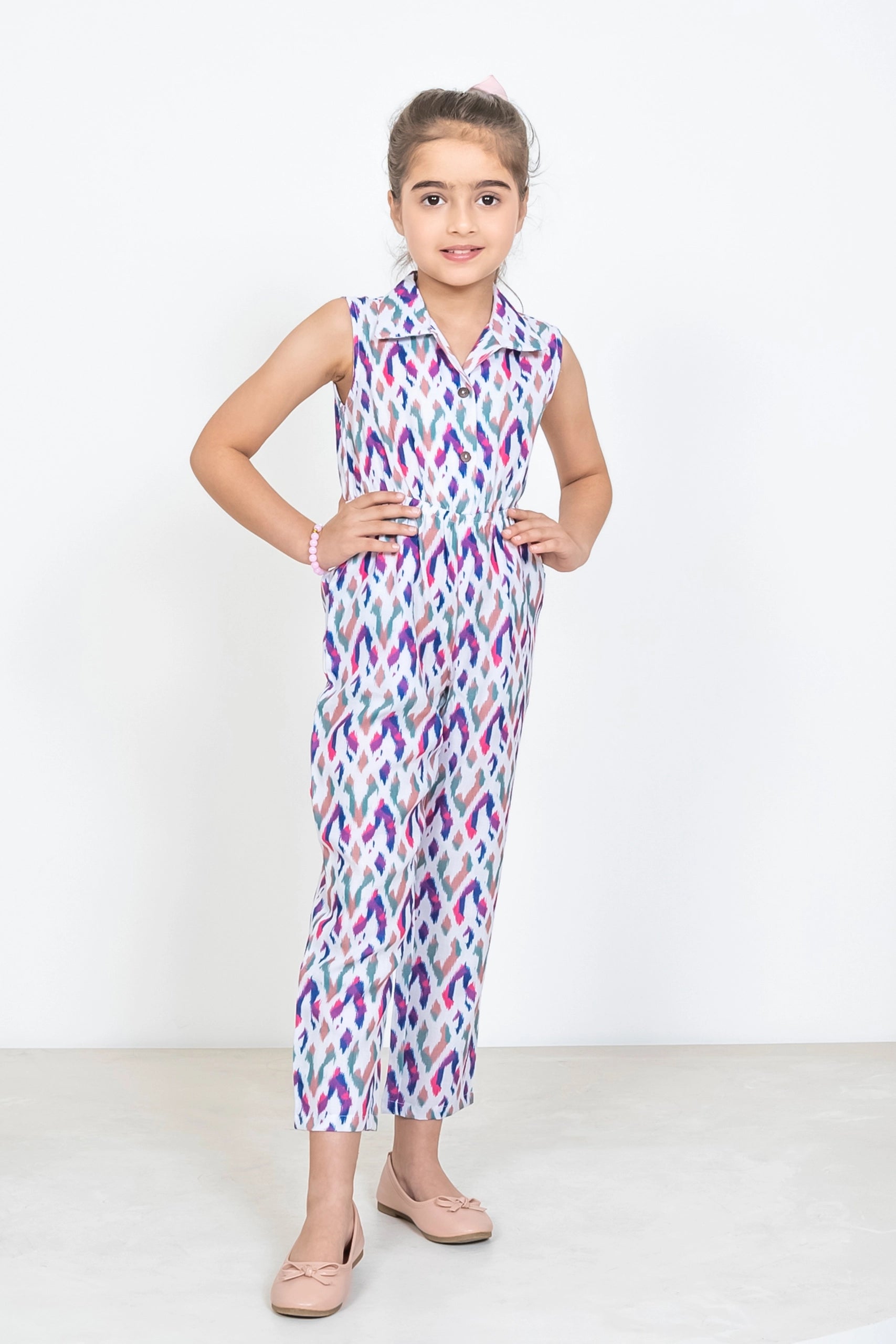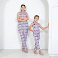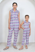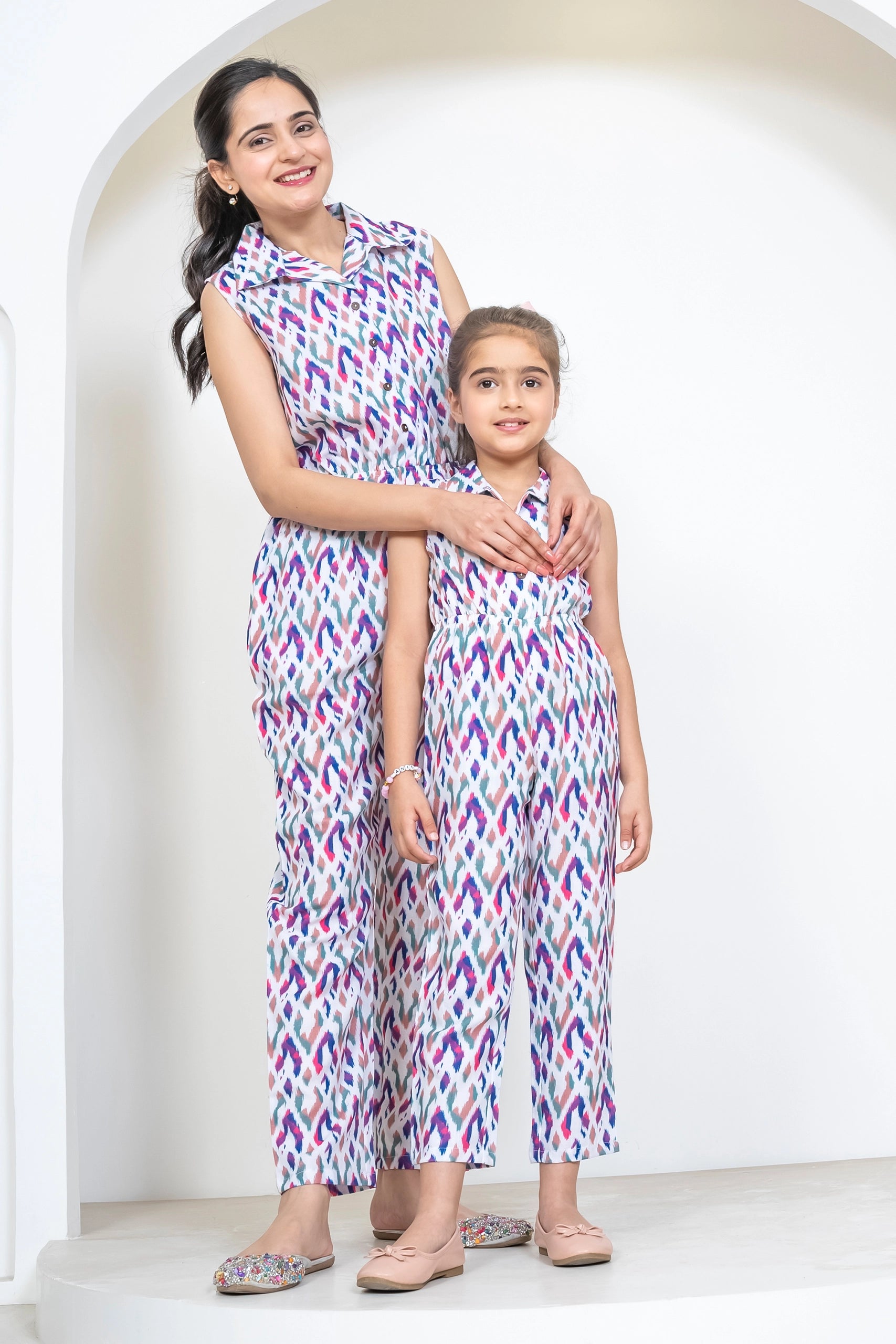 Ikkat Multicolored Jumpsuit Duo: Matching Outfits for Mom and Daughter, Perfect for Vacation