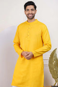 Elevate your ethnic wardrobe with this stunning Sunshine Yellow Kurta and Crisp White Pyjama Set for Men. Crafted from 100% cotton fabric, this outfit is designed to keep you comfortable and stylish all day long. The kurta features full sleeves, adding a touch of sophistication to the overall design.