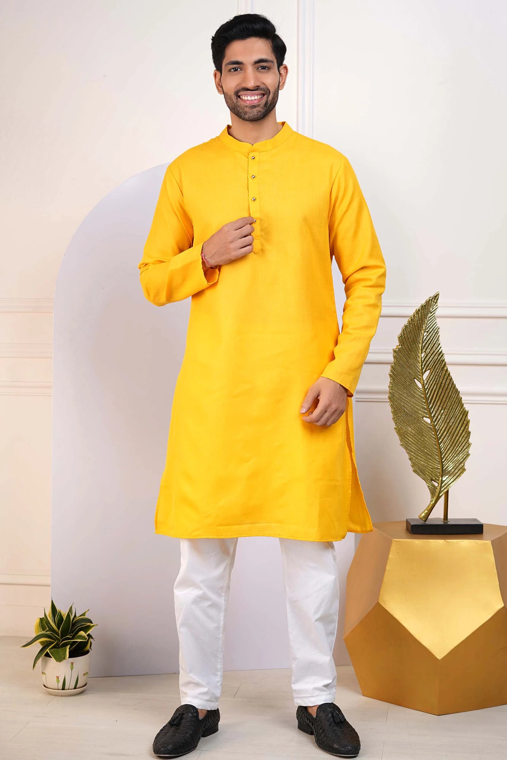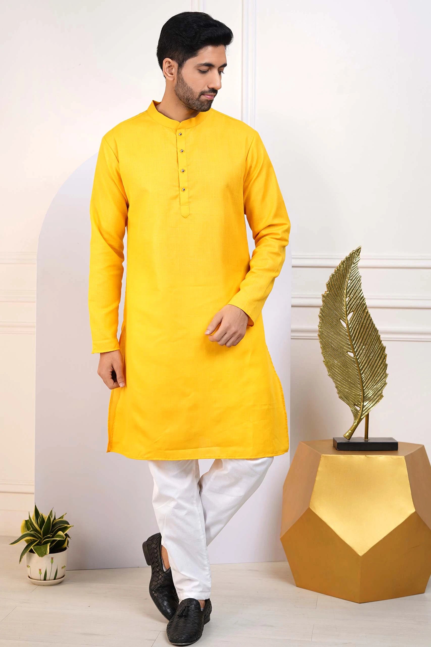 Sunshine Yellow Kurta and Crisp White Pyjama Set for Men